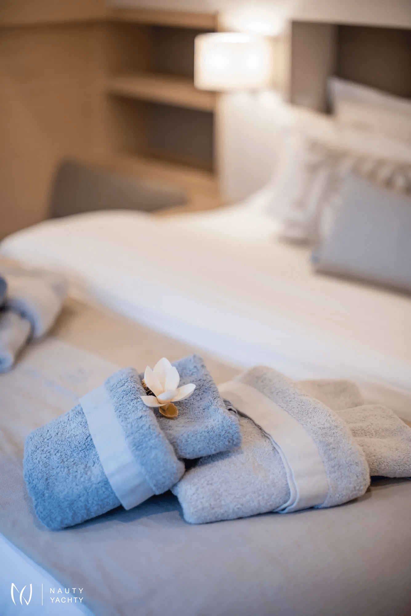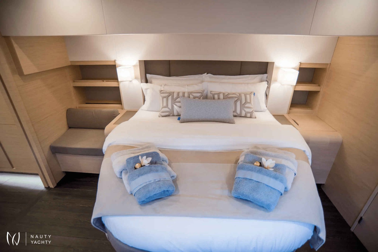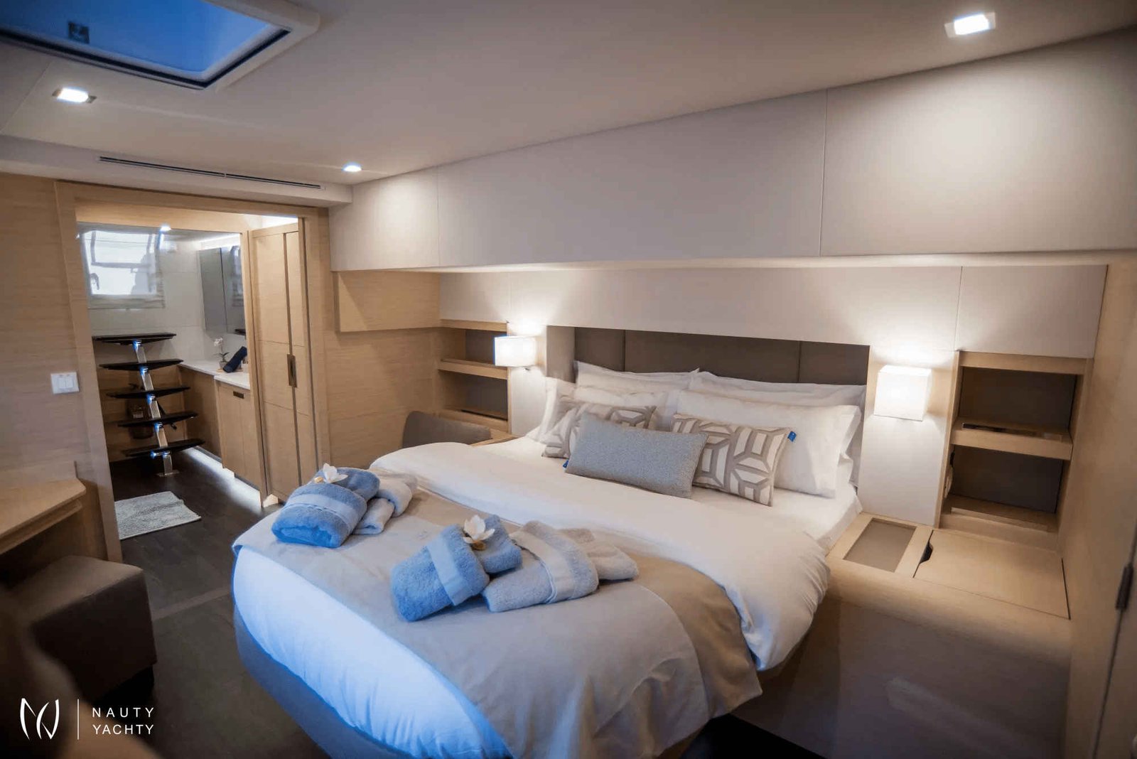 7th Heaven is a stunning Samana 59 catamaran ideal for exploring the waters and hidden gems of Greece. With four luxurious cabins, it can comfortably accommodate up to eight guests in style and comfort.The yacht's beautifully designed interior is characterized by light and airy spaces, an elegant lounge, and a well-appointed kitchen area that is perfect for preparing gourmet meals. The large windows and sunroof offer panoramic views of the Greece's turquoise waters, creating an unforgettable sailing experience.On the exterior, the spacious deck offers ample room for guests to lounge and relax, soak in the sun and take in the beautiful surroundings. The yacht's impressive flybridge is a popular feature, providing unbeatable views and comfortable seating perfect for enjoying the warm sunsets.7th Heaven is fully crewed by two professional and experienced crew members who are devoted to delivering exceptional customer service, ensuring that guests have an unforgettable sailing experience. The crew is committed to providing a personalized service that caters to each guest's specific preferences, making sure that everyone's needs and desires are taken into account.Overall, 7th Heaven is a magnificent choice for families, couples, or groups of friends who want to experience the ultimate adventure. The yacht guarantees a comfortable, safe, and memorable trip, making it an excellent choice for any sailing vacation.
