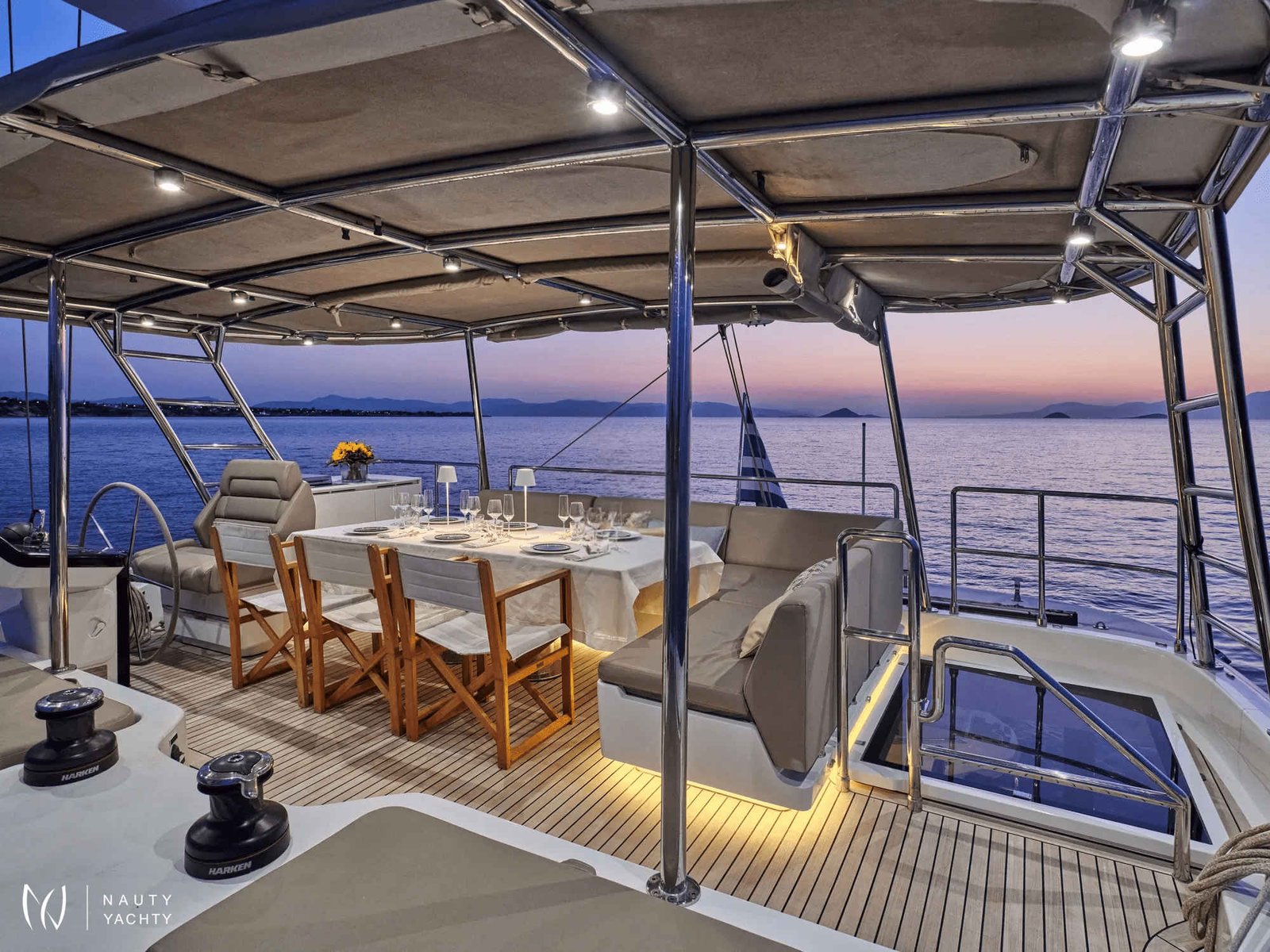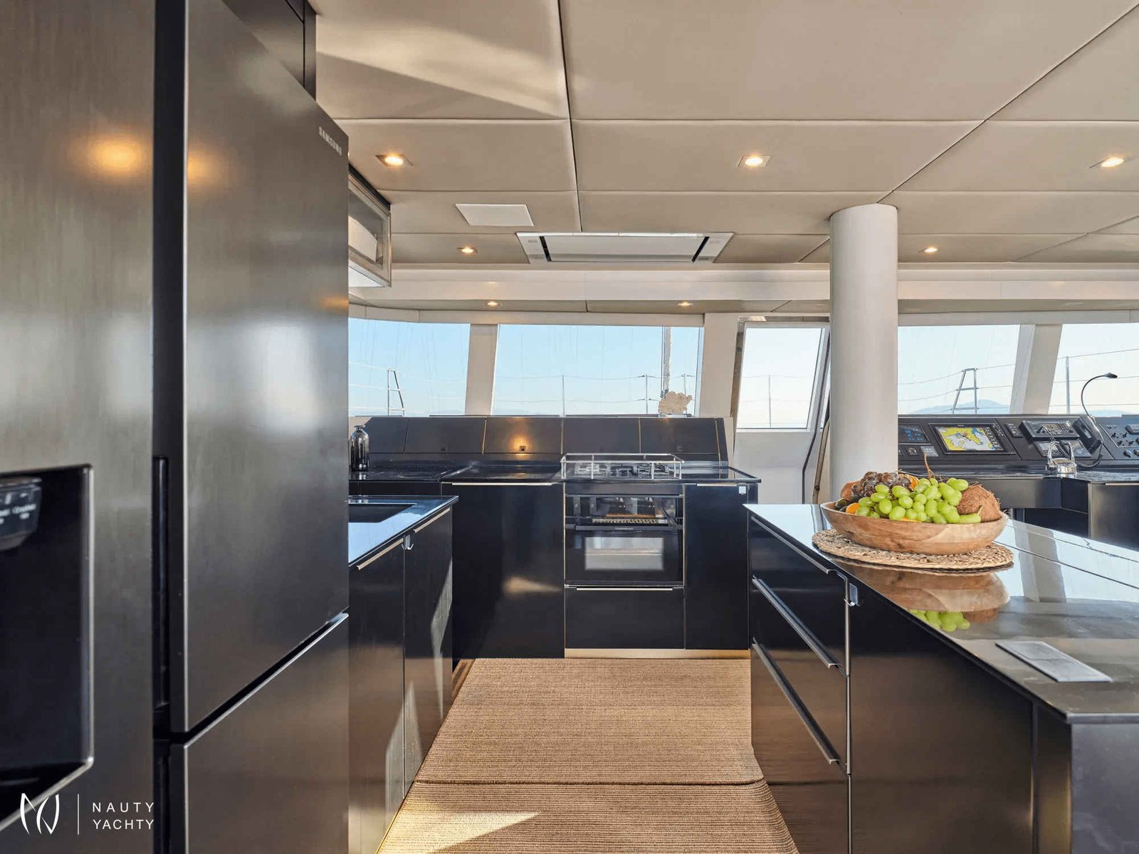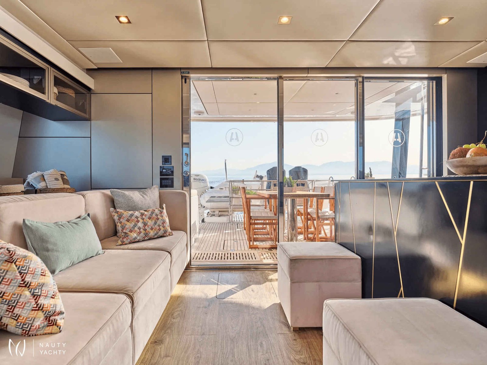 with a length of 50ft and a beam of over 27ft, the Sunreef 50 catamaran provides plenty of living space for passengers to relax and enjoy the journey