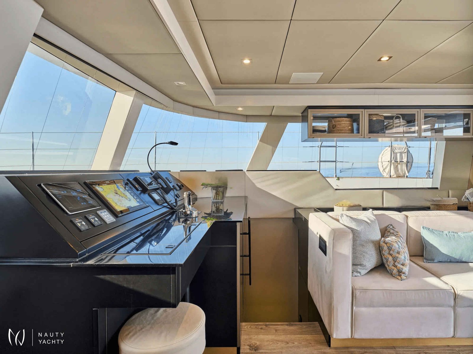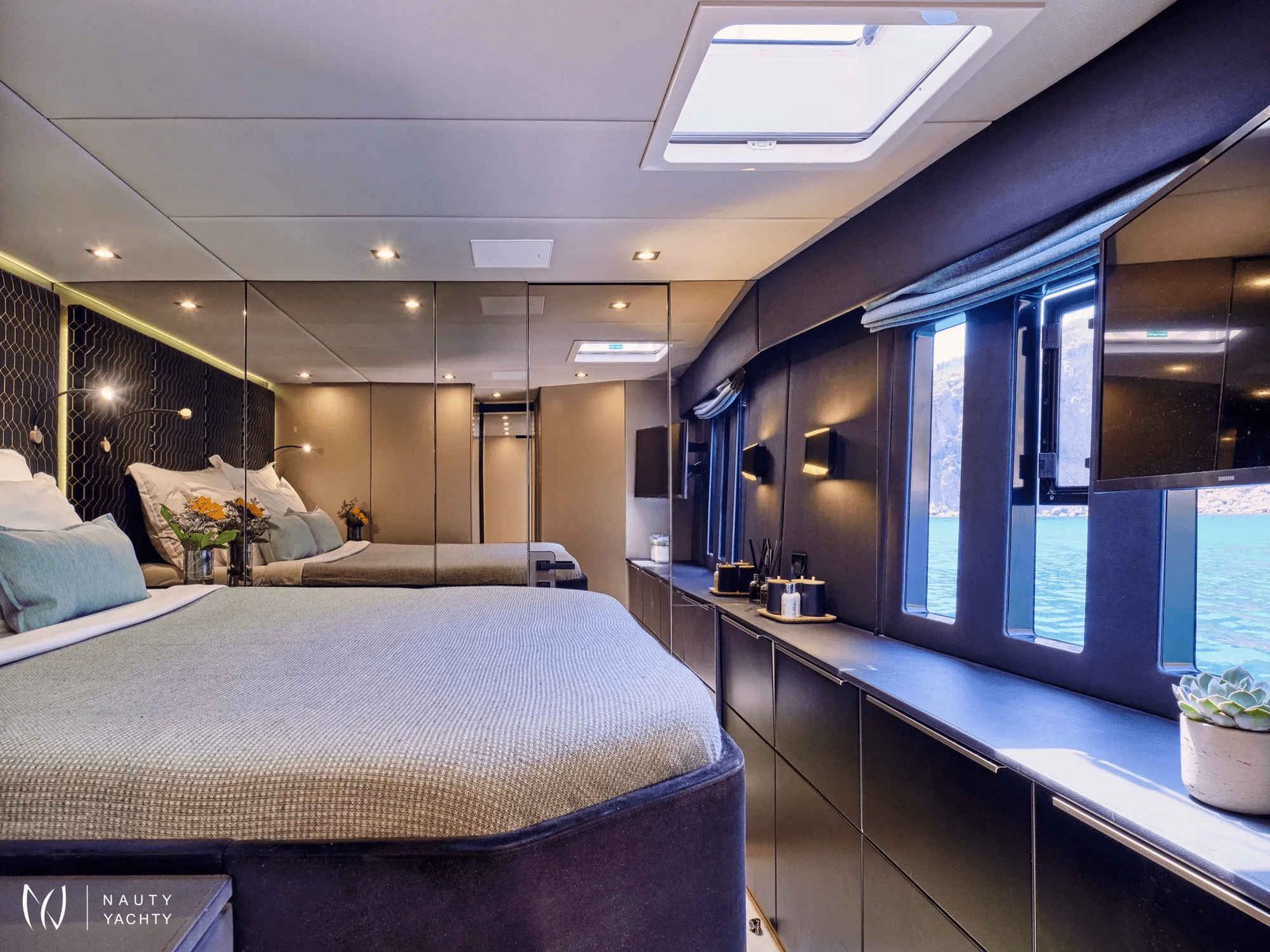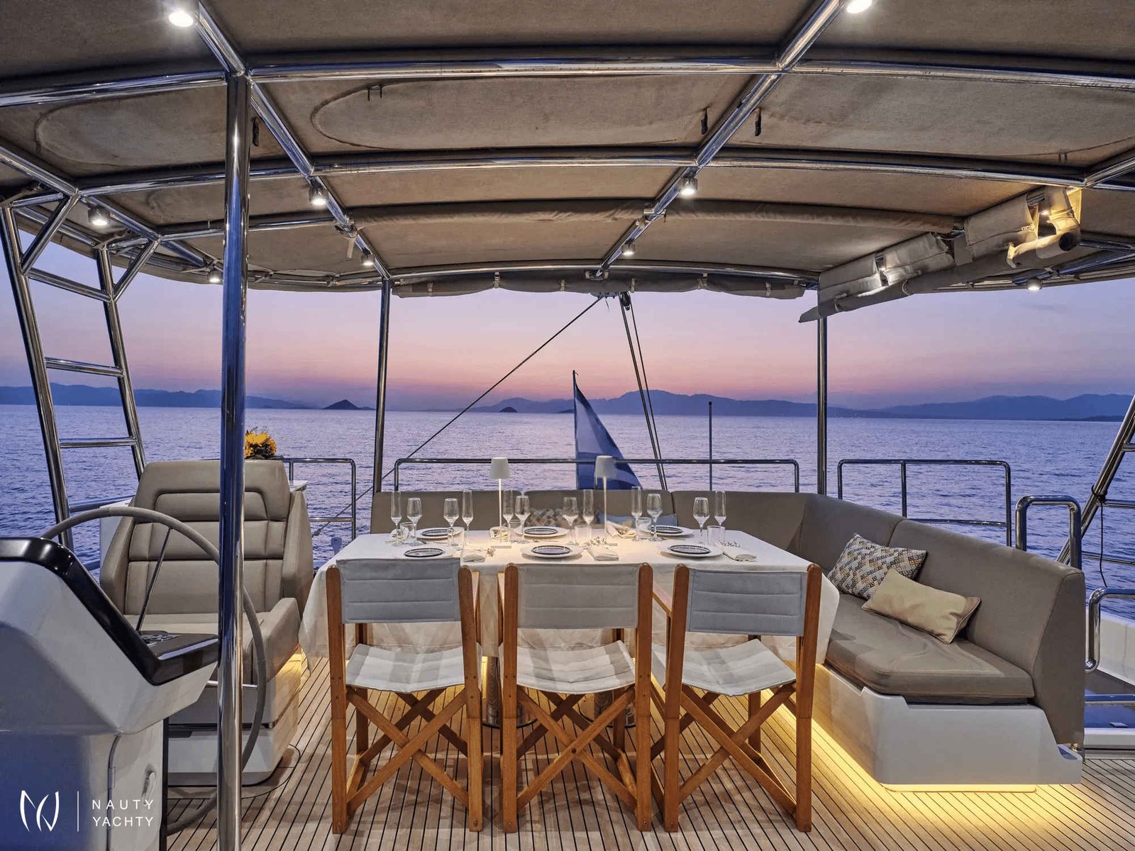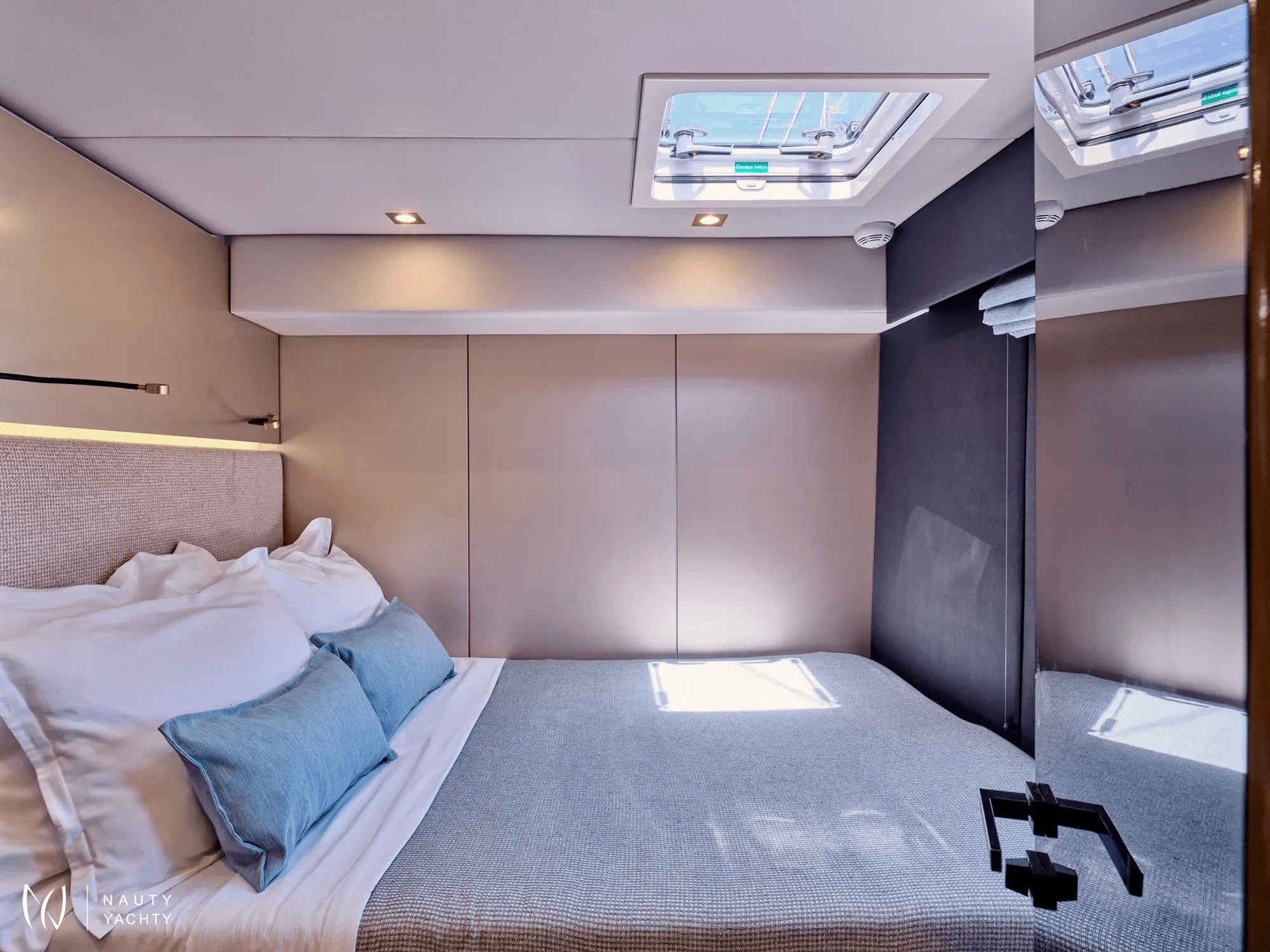 with a length of 50ft and a beam of over 27ft, the Sunreef 50 catamaran provides plenty of living space for passengers to relax and enjoy the journey