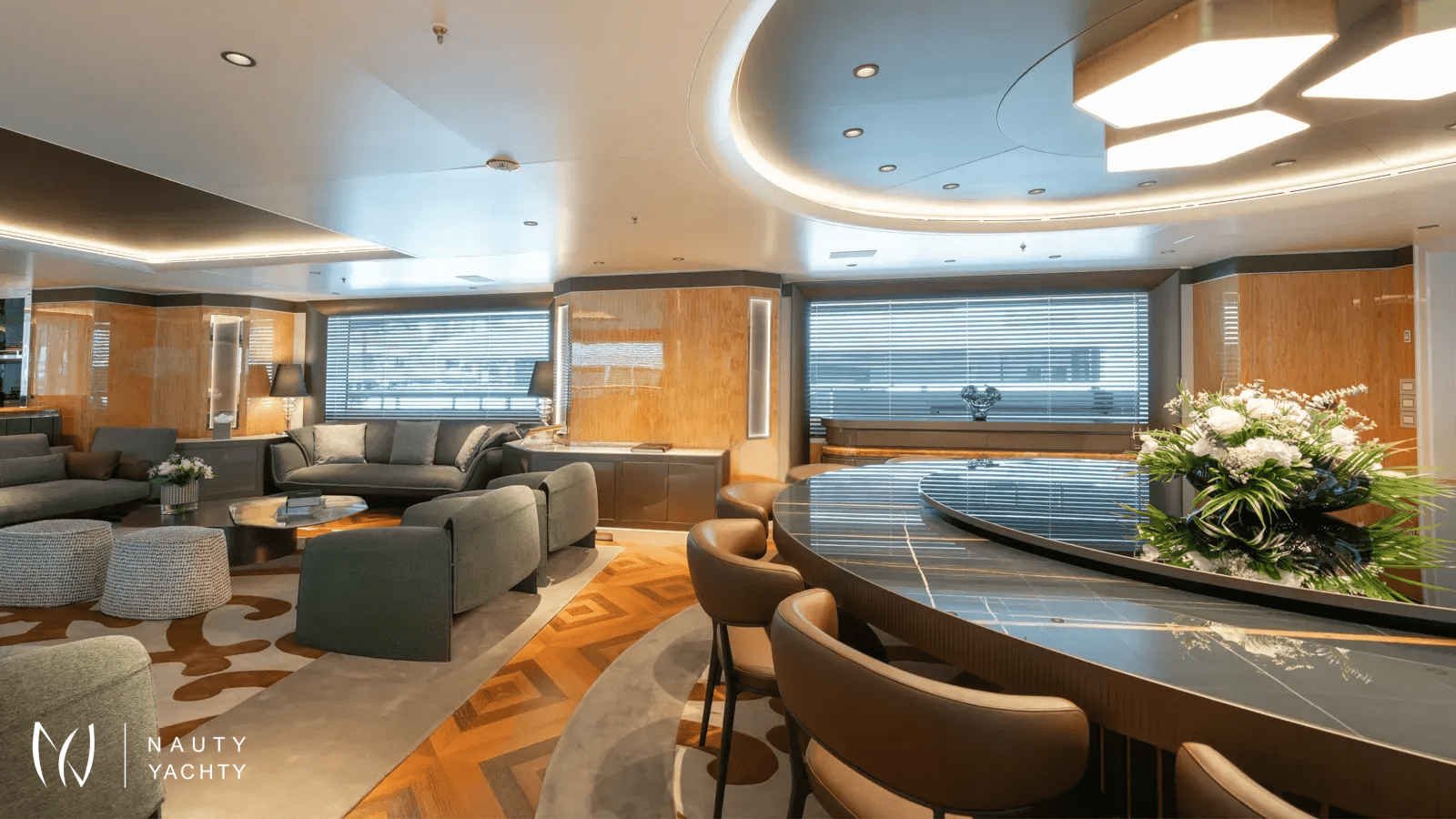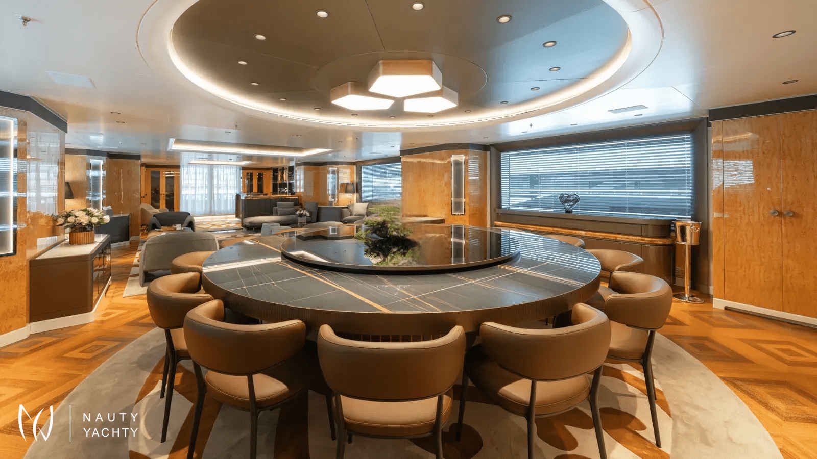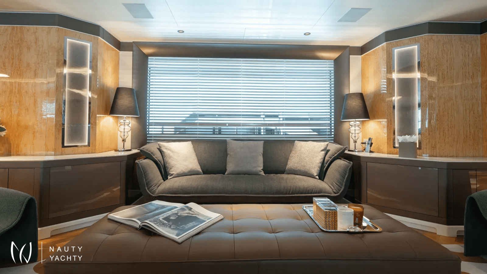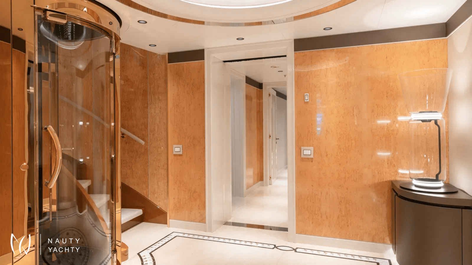 AELIA’s opulent interiors are marked by rich textures, plush furnishings, and grandeur without excess. She accommodates 12 guests across eight spacious cabins, including an exceptional layout with two full-beam master suites on the upper deck; a rare offering for this size category. Six double cabins and two twin offer flexible arrangements, and all benefit from elegant ensuites. The main salon is warm and inviting with oversized sofas, while the formal dining room, complete with a bar and chandelier lighting, sets the stage for celebratory meals.A tri-deck layout gives way to expansive outdoor living. The sun deck features a Jacuzzi, shaded lounging, and panoramic views, perfect for both daytime basking and sunset cocktails. Wheelchair-accessible spaces and an elevator connecting all decks ensure comfort and mobility for all. Whether hosting an al fresco dinner, enjoying drinks on the upper deck, or reading in a quiet corner of the beach club, AELIA offers space and ambiance in equal measure.Wellness is integral to AELIA’s charter experience. Her fully equipped gym, featuring a steam room and ensuite bathroom, allows guests to maintain their fitness routine in privacy. The massage room, flooded with natural light and views, creates a serene space for bodywork and relaxation. Evenings can be spent in the cinema room, where a large screen and cozy seating set the scene for movie marathons or sports viewings.From water-based adventure to top-tier service, AELIA delivers on every front. She carries the most extensive collection of water toys in the Eastern Mediterranean, including the high-performance Pirelli P50 chase tender, ready to whisk guests to remote coves and islands. Whether wakeboarding, diving, or relaxing aboard the tender, the fun is limitless. Her charter-savvy crew of 15, many of whom have worked together for years, are attuned to anticipating needs before they’re even voiced, offering a level of service that is polished, friendly, and truly white glove.