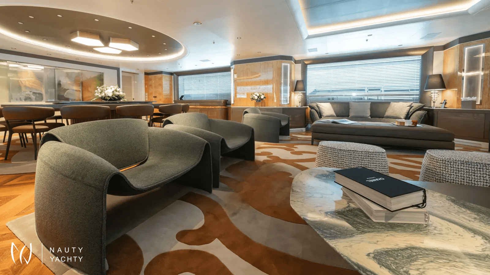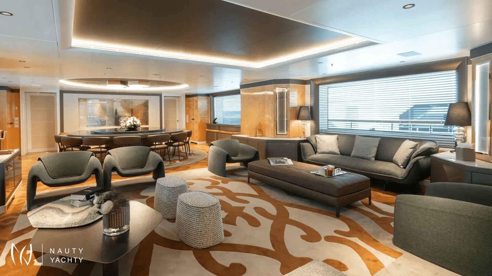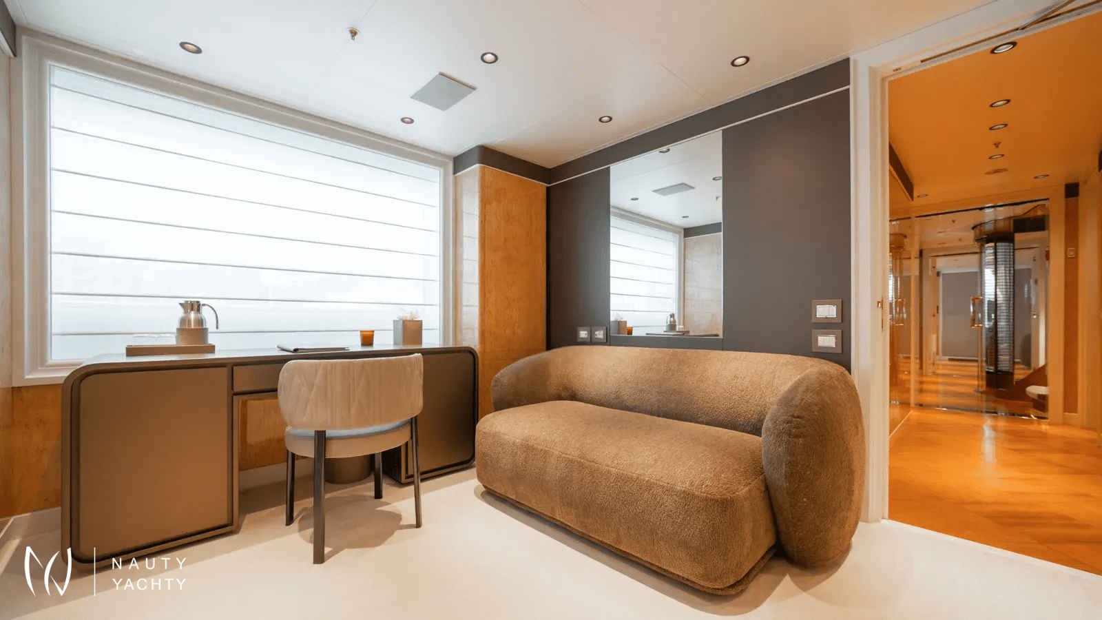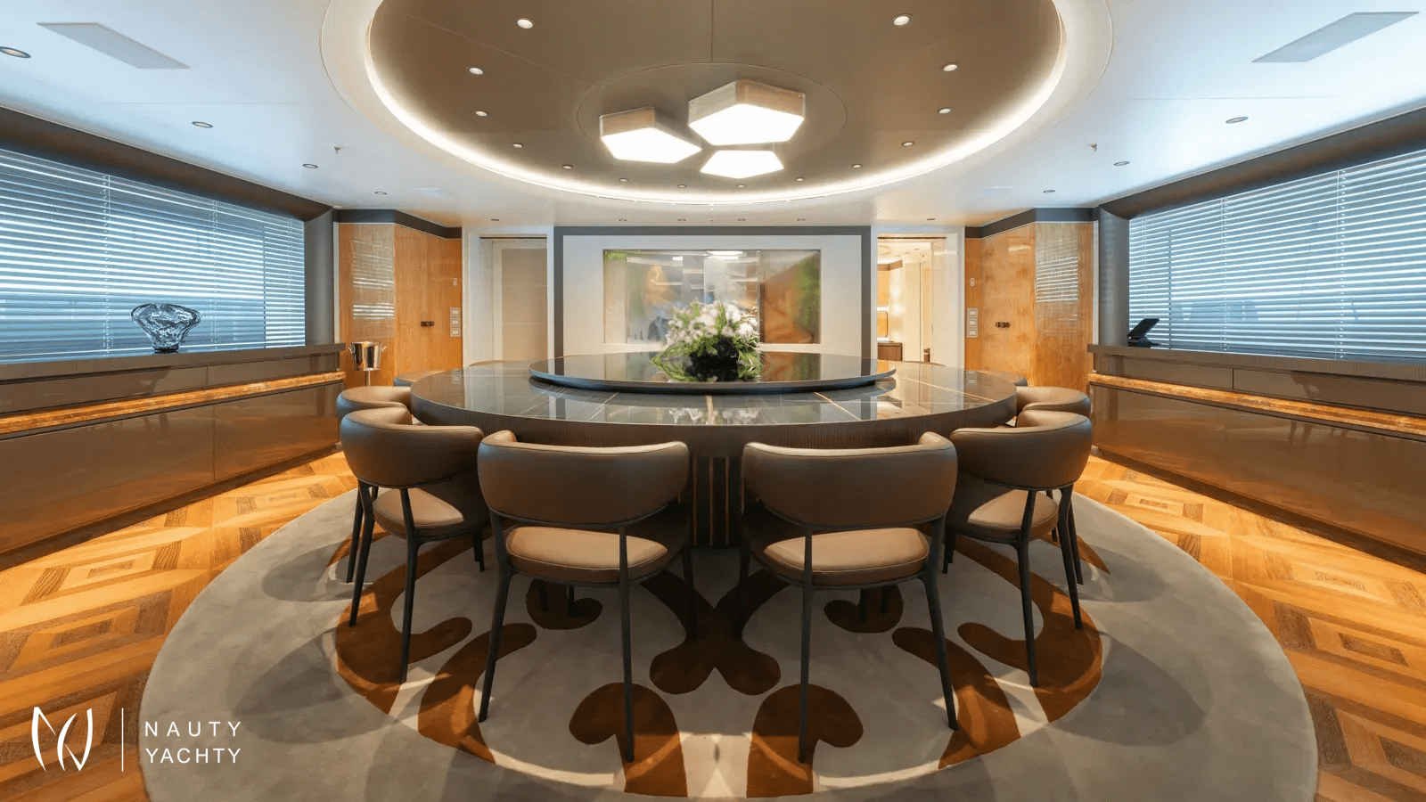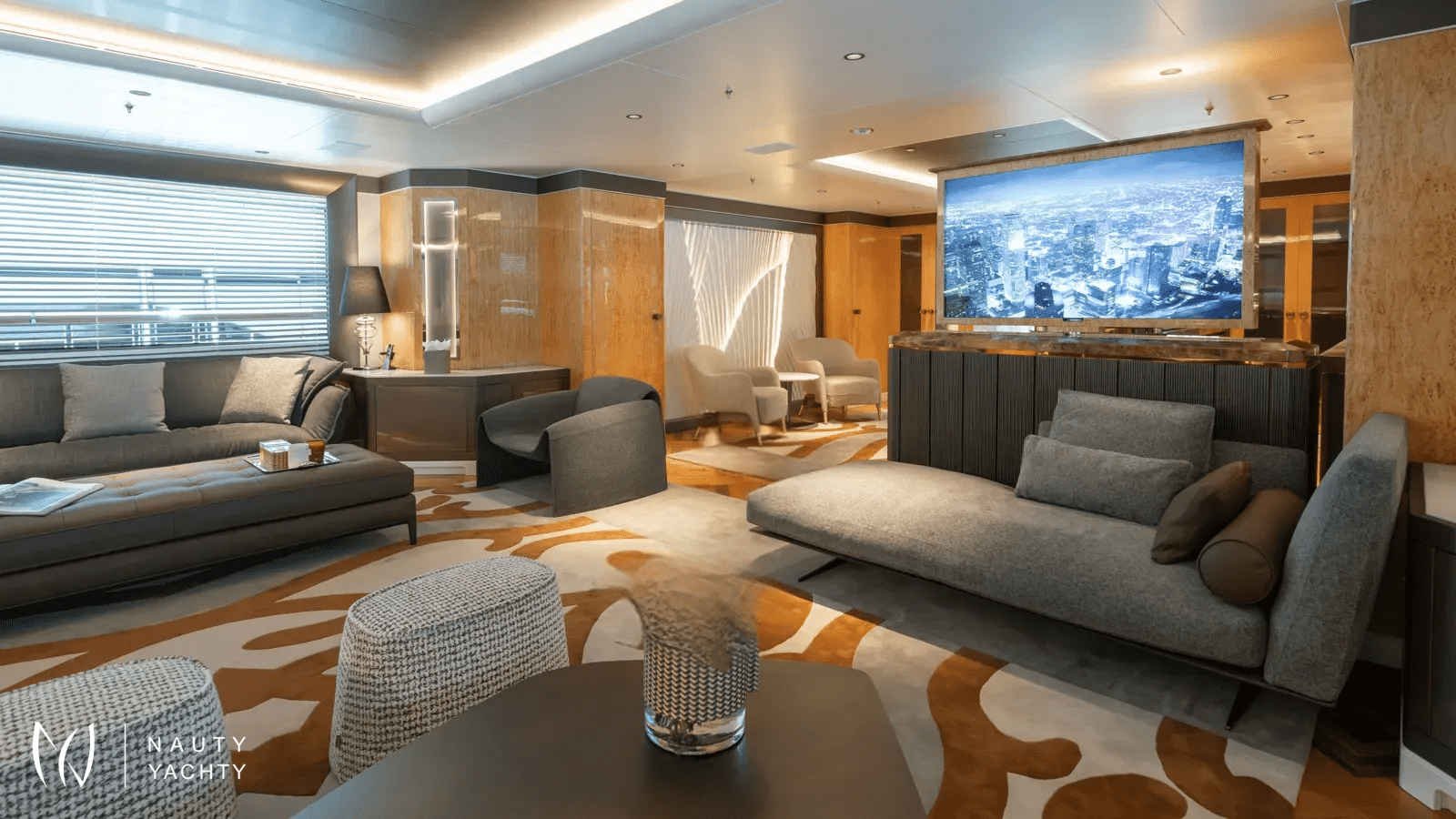 AELIA’s opulent interiors are marked by rich textures, plush furnishings, and grandeur without excess. She accommodates 12 guests across eight spacious cabins, including an exceptional layout with two full-beam master suites on the upper deck; a rare offering for this size category. Six double cabins and two twin offer flexible arrangements, and all benefit from elegant ensuites. The main salon is warm and inviting with oversized sofas, while the formal dining room, complete with a bar and chandelier lighting, sets the stage for celebratory meals.A tri-deck layout gives way to expansive outdoor living. The sun deck features a Jacuzzi, shaded lounging, and panoramic views, perfect for both daytime basking and sunset cocktails. Wheelchair-accessible spaces and an elevator connecting all decks ensure comfort and mobility for all. Whether hosting an al fresco dinner, enjoying drinks on the upper deck, or reading in a quiet corner of the beach club, AELIA offers space and ambiance in equal measure.Wellness is integral to AELIA’s charter experience. Her fully equipped gym, featuring a steam room and ensuite bathroom, allows guests to maintain their fitness routine in privacy. The massage room, flooded with natural light and views, creates a serene space for bodywork and relaxation. Evenings can be spent in the cinema room, where a large screen and cozy seating set the scene for movie marathons or sports viewings.From water-based adventure to top-tier service, AELIA delivers on every front. She carries the most extensive collection of water toys in the Eastern Mediterranean, including the high-performance Pirelli P50 chase tender, ready to whisk guests to remote coves and islands. Whether wakeboarding, diving, or relaxing aboard the tender, the fun is limitless. Her charter-savvy crew of 15, many of whom have worked together for years, are attuned to anticipating needs before they’re even voiced, offering a level of service that is polished, friendly, and truly white glove.