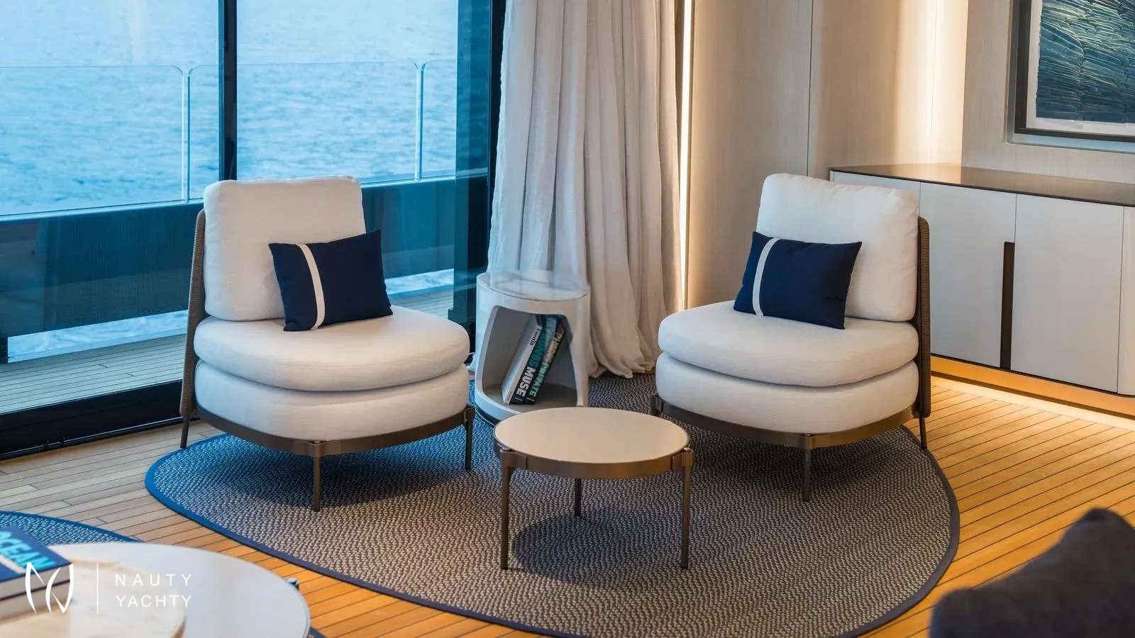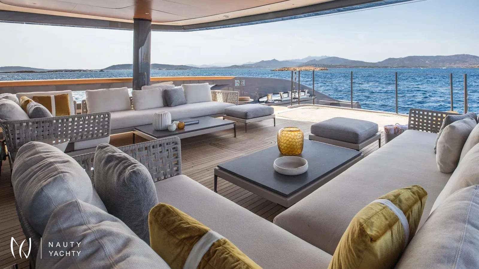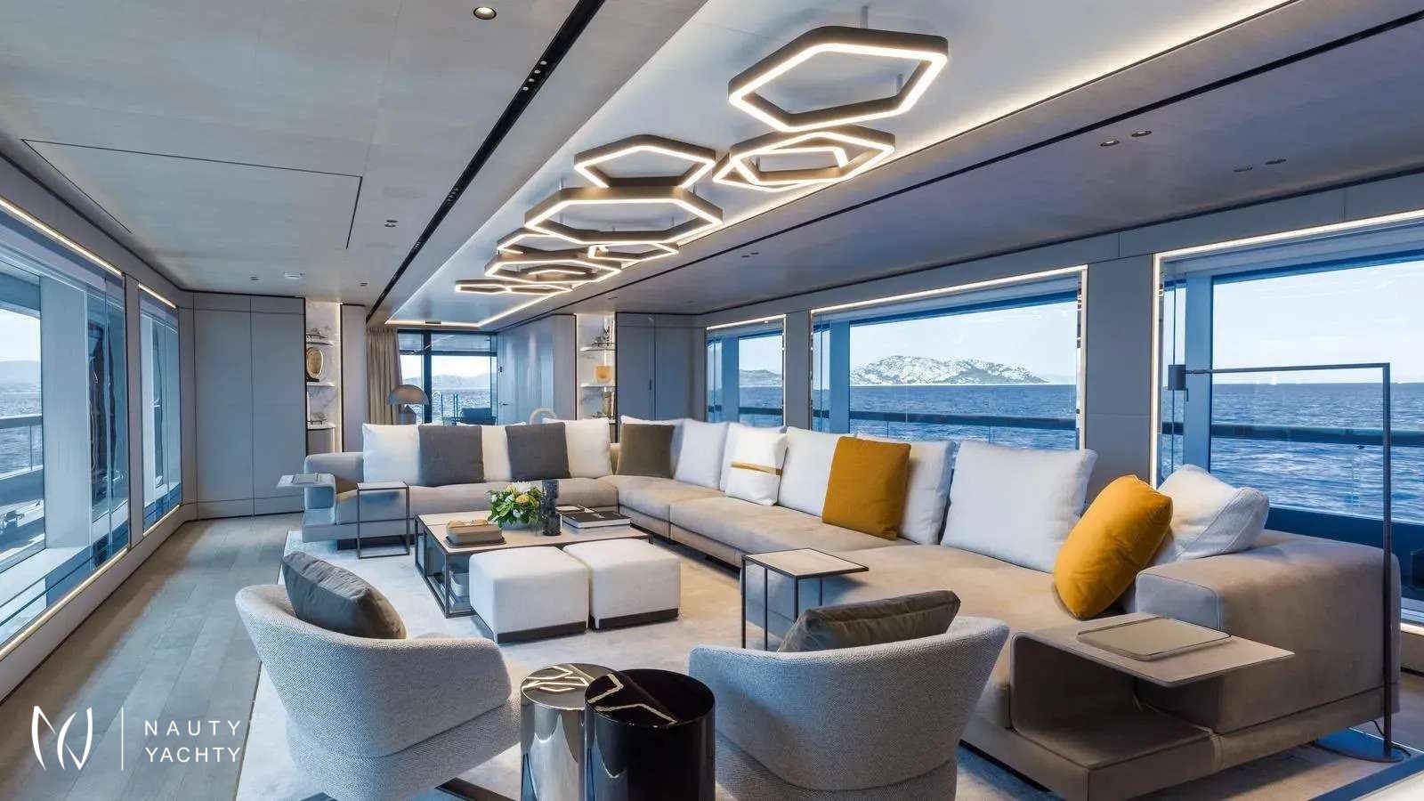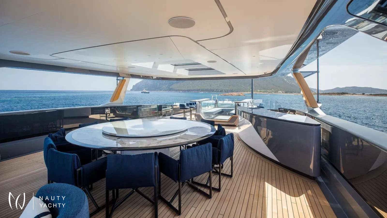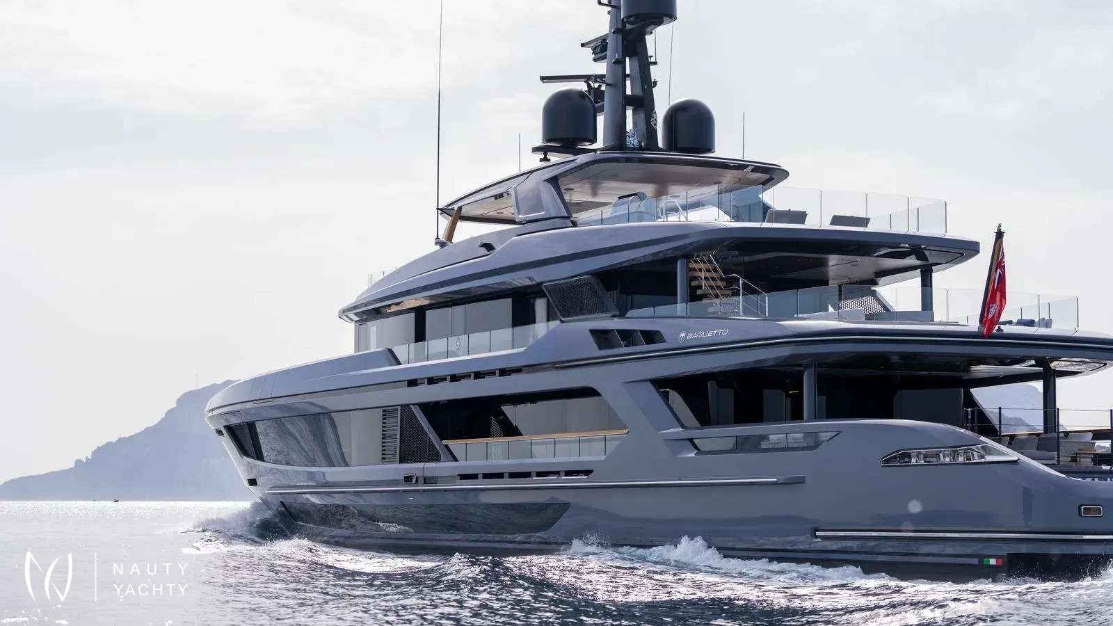Winner of the 2024 Superyacht Award in her class, AKULA combines sleek Baglietto lines, a commanding dark-grey hull, and refined interiors by Enrico Gobbi’s Team for Design. She offers the perfect balance of style and comfort for up to 12 guests, with a crew of ten ensuring world-class service. The truly expansive sun deck, the largest in her class, is a showpiece. With a glass-edged Jacuzzi, shaded lounges, and alfresco dining for twelve, it is designed for days in the sun and nights under the stars. The aft opens into a multi-level beach club with a retractable pool and cascading terraces that flow straight to the sea, creating the feel of a private resort on the water.Inside, guests will find a private bridge-deck office with video conferencing, a fully equipped gym, and a panoramic sky lounge that transforms into an open-air entertainment space. A full-beam master suite and four additional cabins provide generous accommodations, blending luxury with thoughtful design. AKULA is fully equipped for adventure with a Fjord Open tender, waverunners, Seabobs, kayaks, paddleboards, snorkeling gear, and more. Whether island-hopping the Caribbean or exploring hidden coves in the Mediterranean, she is designed for unforgettable cruising.