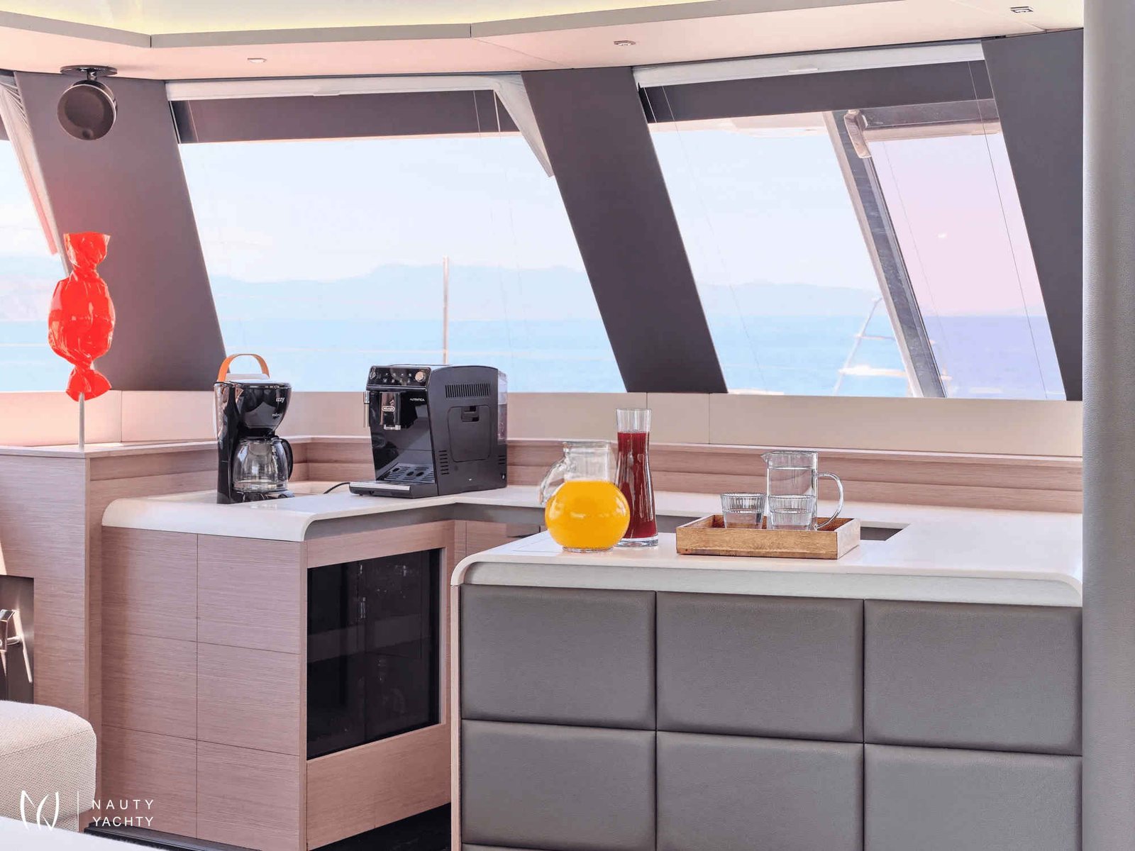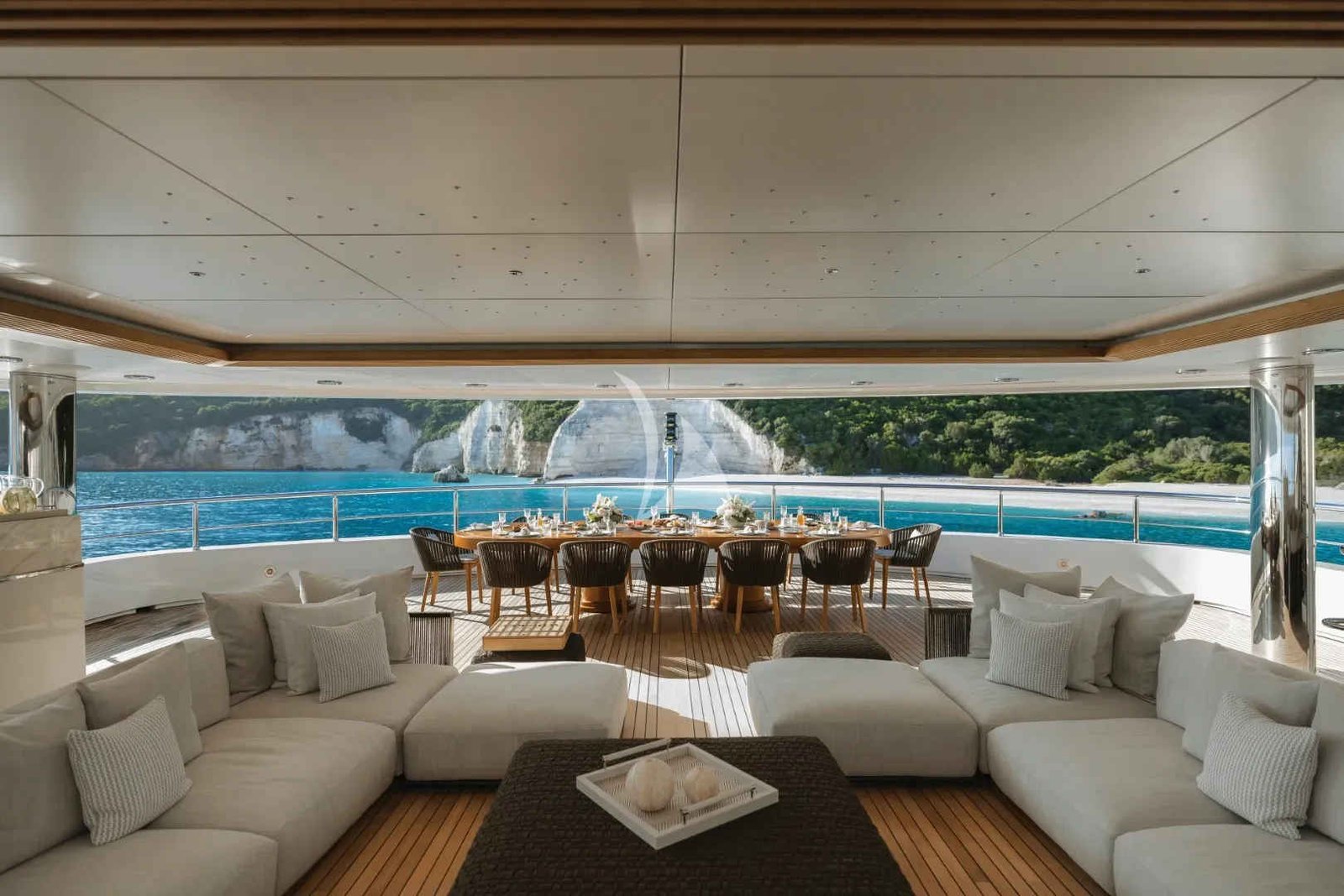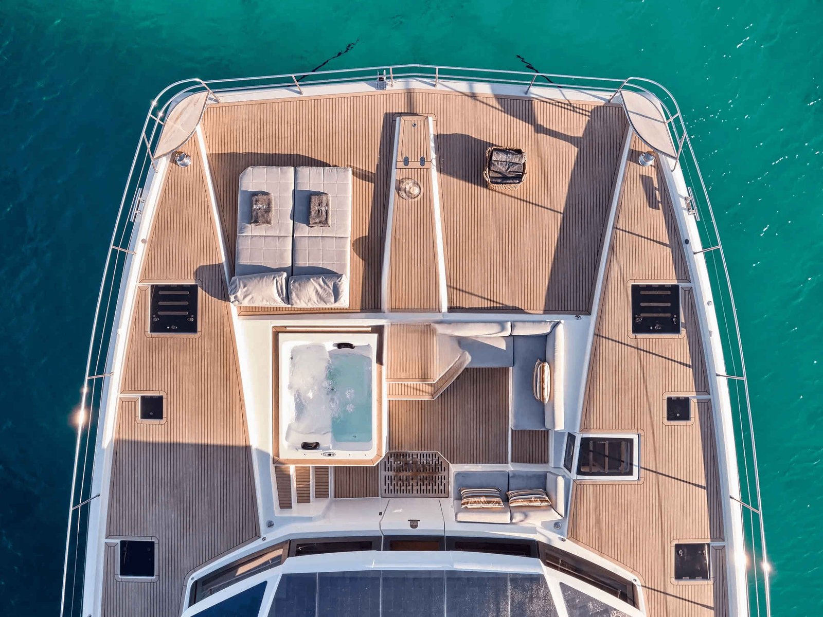 Cabin configuration: Alexandra II accommodates 8 guests in one master cabin with desk area, full size bathroom (double sink) and two access points (one from inside the yacht and one from the foredeck jacuzzi area. Full size closet. TV One queen guest cabin with private bathroom and TV. Two queen bed guest cabins with private bathroom and accessed from aft deck area with TV.
