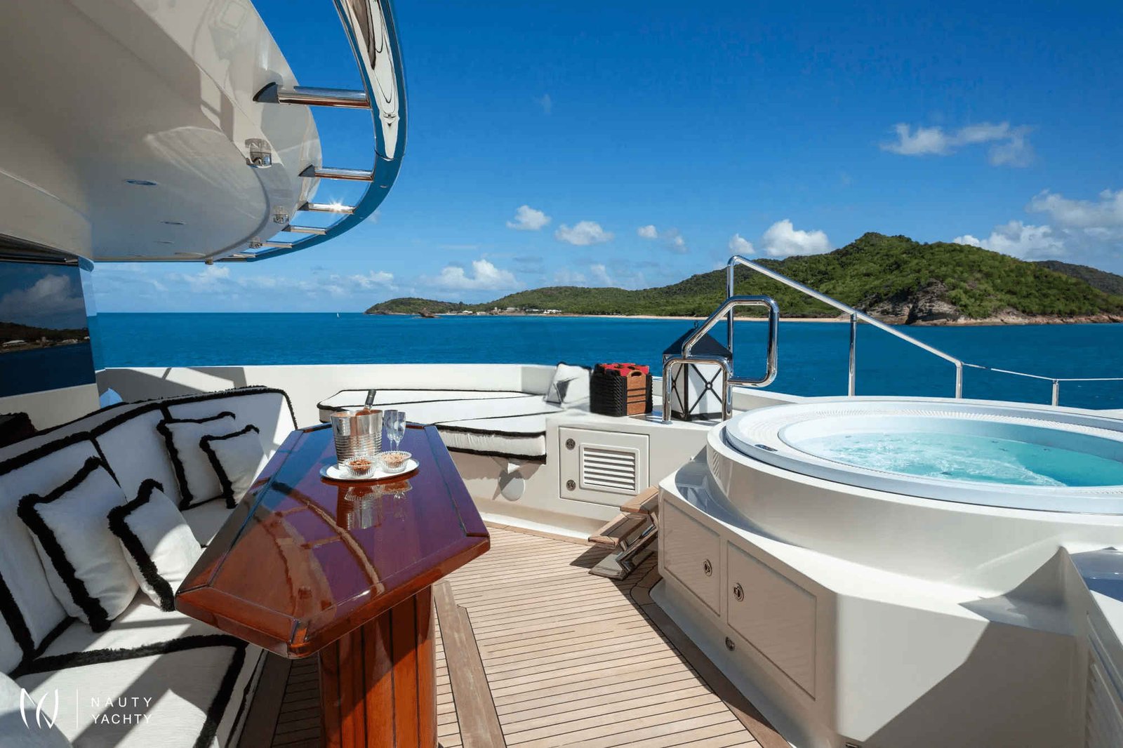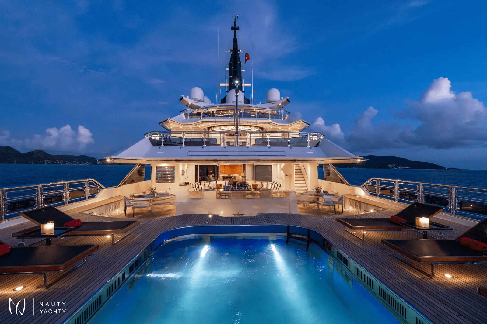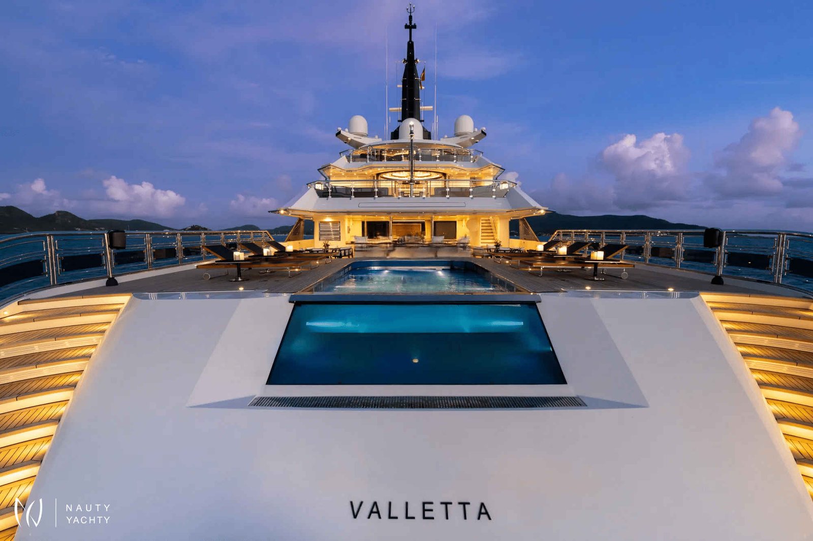 NOTE: The helipad (visible when the pool is raised to be flush and with the main deck) is for emergency use only. This cannot be certified for charter.