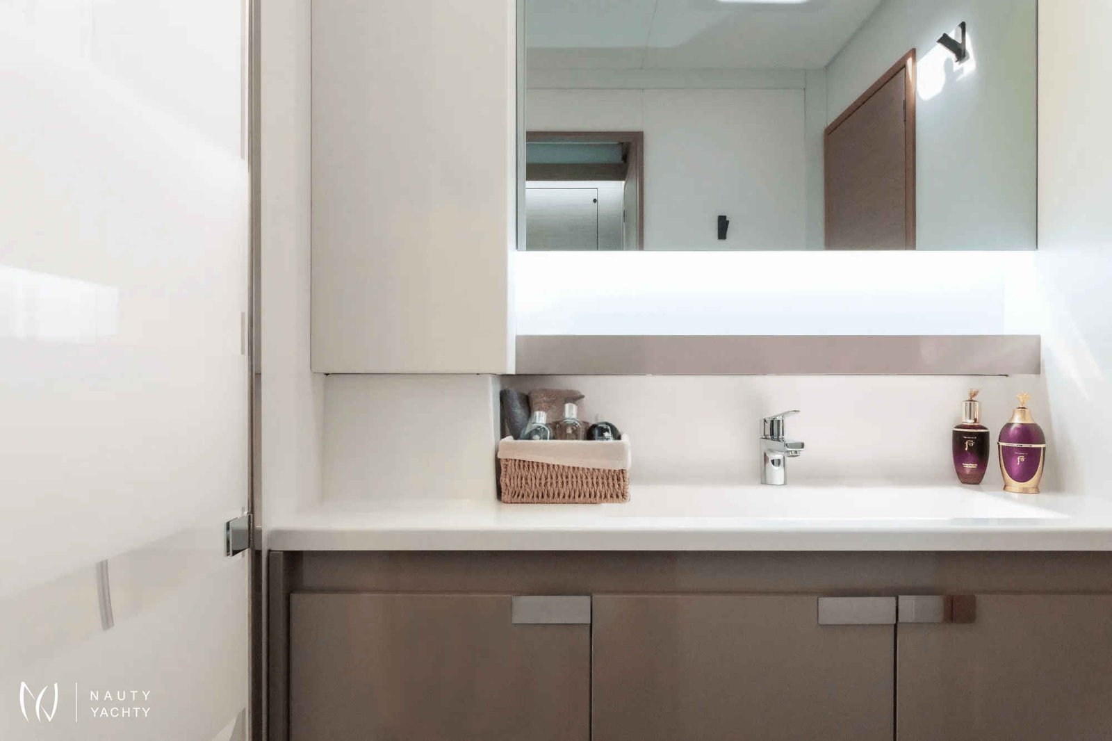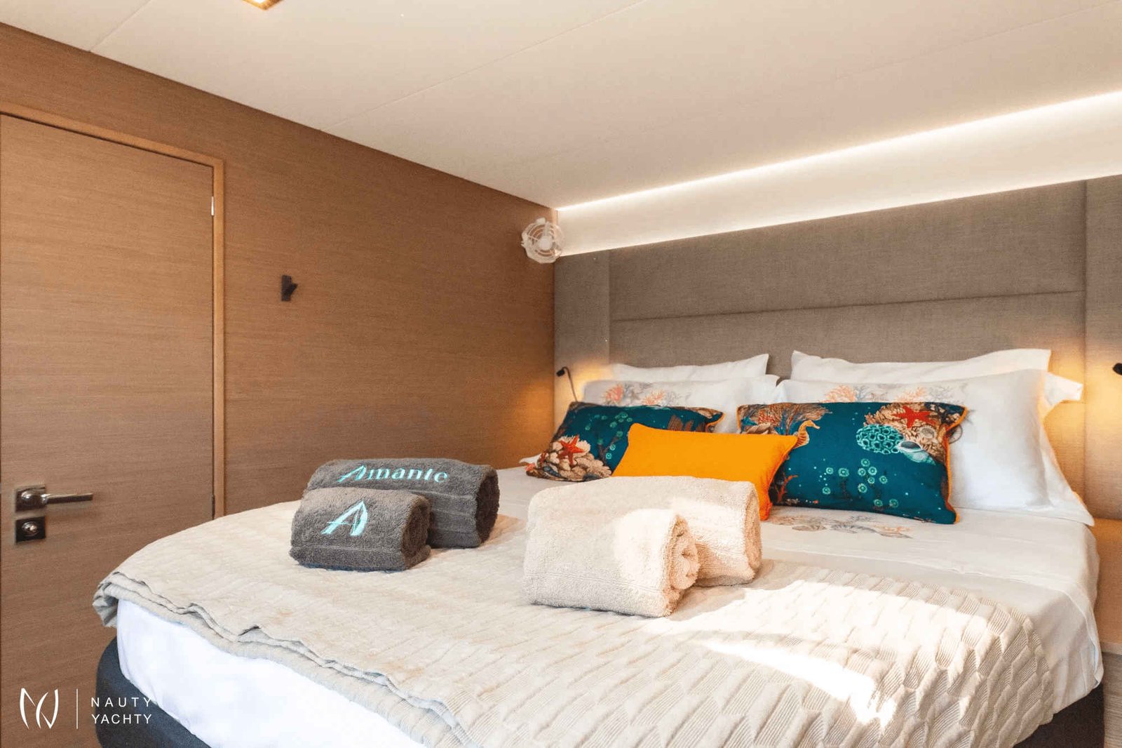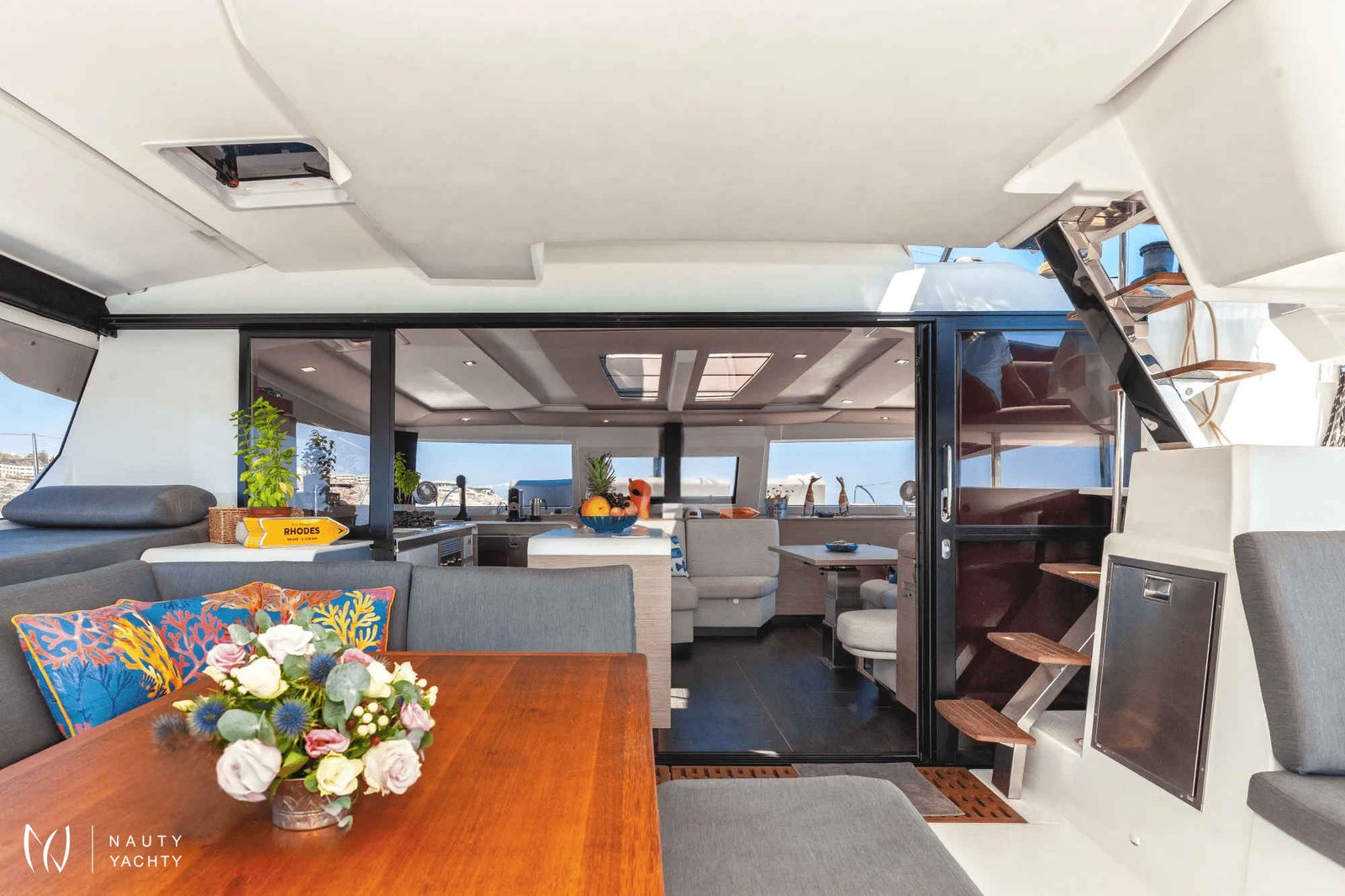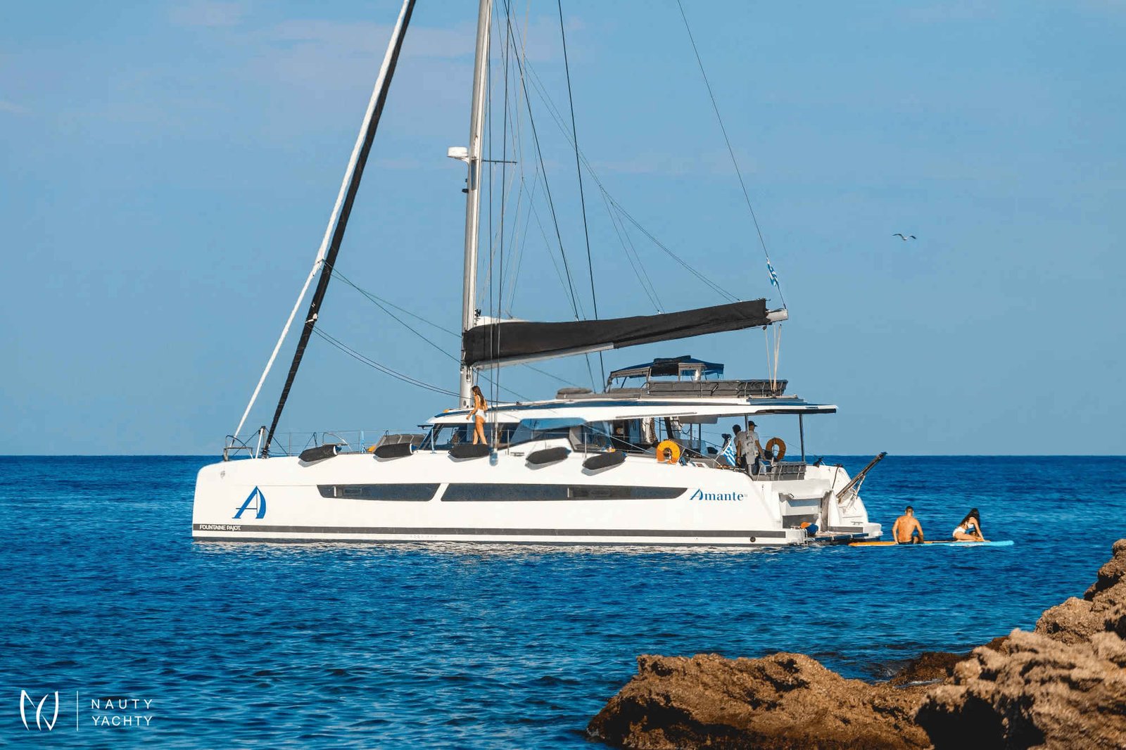 If you're dreaming of a sailing holiday in Greece, Amante by Fountaine Pajot may be the perfect choice for you. This stunning luxury catamaran offers ample space, comfort, and plenty of amenities to help you enjoy your time on the water to the fullest.One of the key features of AMANTE is its spacious and well-designed interior.The boat has four guest cabins, each with its own en-suite bathroom with separate shower, making it perfect for larger groups or families. The cabins are also air-conditioned, so you can stay cool and comfortable even on the hottest days.The living areas on AMANTE are equally luxurious.The boat features a spacious salon with plenty of seating, as well as a fully equipped kitchen and a dining area.There's also a unique "sky lounge" on the top deck, which offers stunning 360-degree views of the surrounding scenery.Of course, the real draw of any sailing holiday is the chance to explore the beautiful coastline and islands of Greece.AMANTE is an absolute pleasure to sail, with its smooth handling, excellent stability, and fast cruising speeds.The boat also comes equipped with all the necessary safety equipment, as well as a variety of water sports equipment such as seabob F5S, Scubajet and stand-up paddleboards, so you can easily anchor and explore secluded bays and coves along the way.AMANTE is an exceptional choice for anyone dreaming of a luxurious, comfortable, and unforgettable sailing holiday in Greece. So why not start planning your trip today?