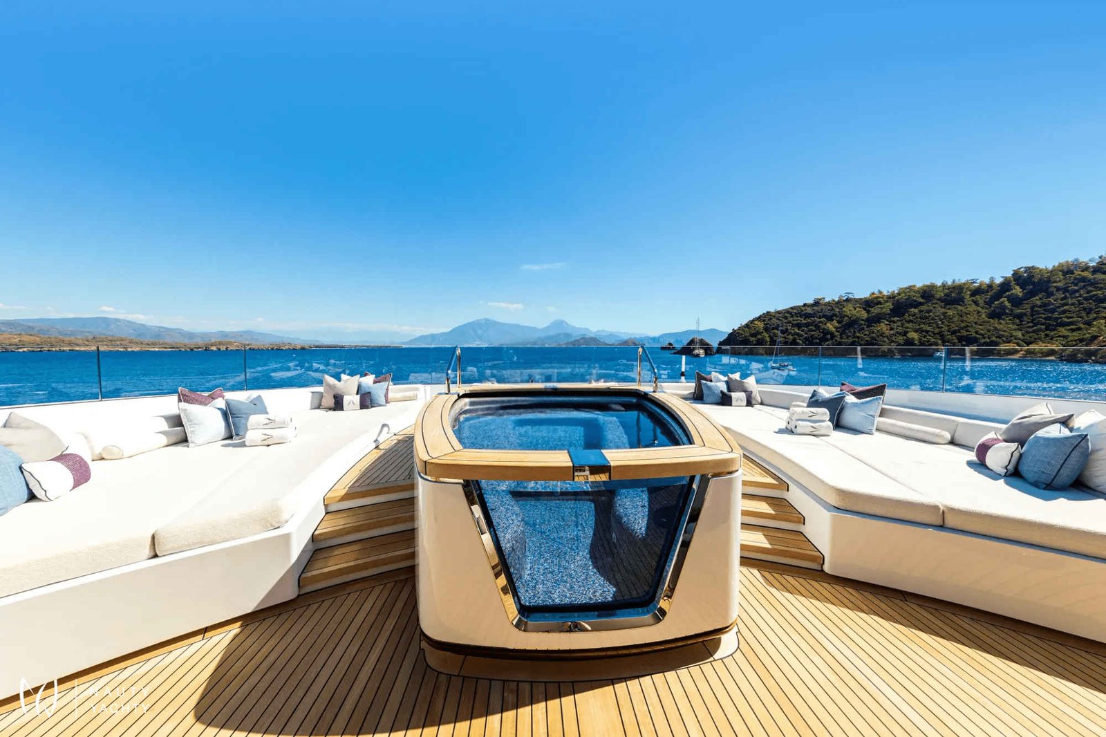 The 75m 2020 Feadship ARROW is the latest superyacht from the reputable Dutch builder to enter the charter market and her sensational spaces inside and out blow other yachts out of the water.With interior and exterior design by H2, ARROW yacht (formerly known as Project 703) is a glossy and state-of-the-art yacht that combines supreme build quality with plenty of room for socialising and entertaining.From the off, the scene is set in the main salon with lots of varnished teak and backlit marble creating a lavish lounge, where offset settees curve into each for a more intimate atmosphere.Formal dining for 12 round a glass table lies beyond and further still there’s a cinema area with surround sound. Up in the bridge deck sky lounge, doors open up to the aft terrace seamlessly, where guests can enjoy alfresco dining under the protection of retractable glass panels or chill out in the lounge area aft and enjoy enviable vistas through the infinity view glass bulwarks.An ARROW yacht charter can accommodate 12 guests across six cabins, including a main deck master, a bridge deck VIP and three further doubles and a twin cabin on the lower deck.Charter guests will love her exquisite sun deck, with its partially transparent Jacuzzi with sunpads forward, pizza oven and barbecue area, gym – which can be either open or enclosed – a cool sit-up bar and lots of lounging options, including C-shaped sofas aft with more infinity views.However, ARROW yacht’s standout feature is surely her full-beam beach club, which transforms into a sea-level evening entertaining lounge. There’s a bar, lots of seating and access to the massage room and steam shower. And, of course, during the day this is the hub of activity for guests who want to try out the plethora of water toys or hop aboard one of three tenders.Guests on an ARROW yacht charter can expect the highest levels of quality and service, while a glass elevator from the lower deck to the bridge deck makes it an ideal base for multigenerational charters.With stabilisers at anchor and underway, ARROW yacht assures a smooth charter and your guests will want for nothing.