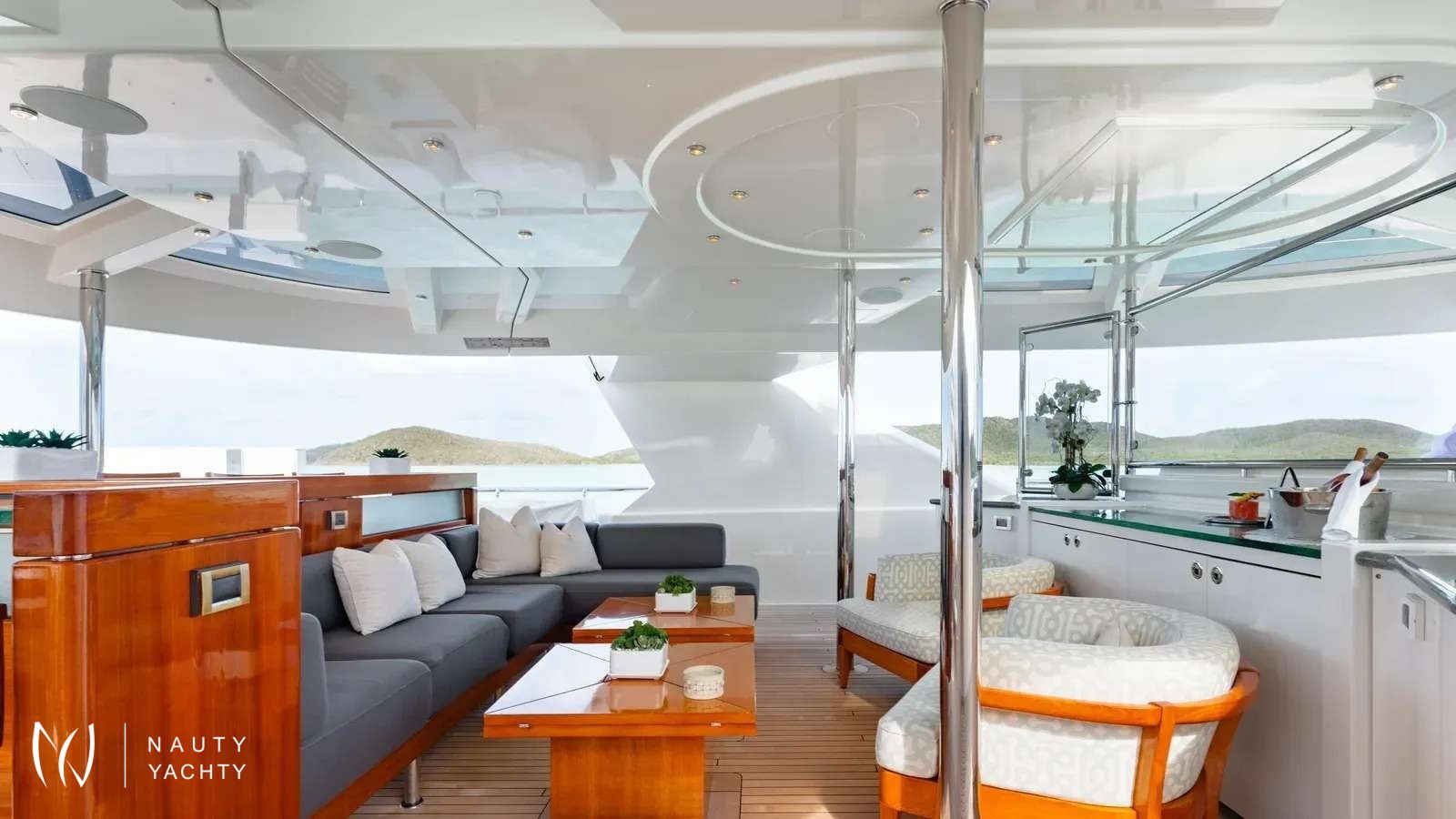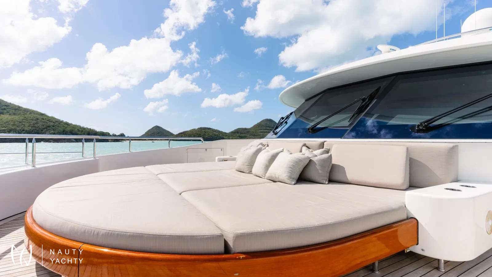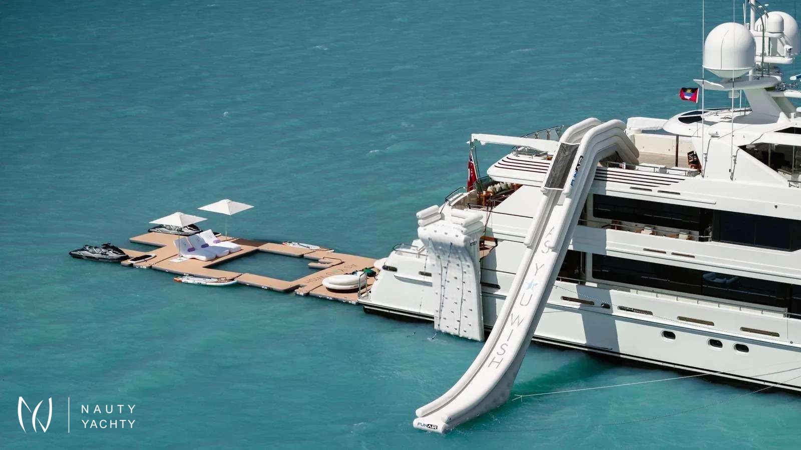 AS YOU WISH, one of the finest Westports ever built in 2011, boasts a stylish and spacious interior by Donald Starkey. Elegant contemporary décor creates a warm and inviting environment throughout the yacht. The large main salon is a comfortable gathering space complete with lounge seating, a modern entertainment system and a full formal dining table for 12.AS YOU WISH can comfortably accommodate up to 12 guests in 7 staterooms. The private owner's deck is located starboard aft on the Bridge Deck and is complete with his and hers bathrooms with connecting shower and private balcony / outdoor seating area. There is a VIP Suite on the Main Deck with extra large ensuite along with a Twin VIP and a gym (convertible spa) both with full en suites. There are four guest staterooms below on the lower deck, all fitted with en-suite bathrooms. Other features include a massive selection of water toys and experienced crew of 11 who are passionate about creating a truly unique and special charter experience for every guest.ACCOMODATIONSBRIDGE DECK:Master Stateroom - 1 KingMAIN DECK:VIP - 1 KingTwin - 2 SinglesLOWER DECK:VIP Port side - 1 KingVIP Starboard side - 1 KingDouble - 1 Double, 1 Single, 1 PullmanTwin - 2 SinglesWALK THROUGH:MAIN DECK:The main aft deck has a large dining table aft that can accommodate up to 16 guests with free-standing chairs. On the forward port side is a full-service bar with three bar stools and television fitted on the aft bulk head.Entering through the double doors into the main salon, the windows on port and starboard side offer expansive views and natural light. A well-balanced asymmetrical seating arrangement provides a flexible and generous amount of seating, including personal seating options in the form of sofas and individual armchairs. Moving forward on the open floor plan you arrive at the dining area designed to accommodate up to 12 guests. To starboard is the main foyer entrance where there is a stairway that leads to both the Upper and Lower Decks.Further forward, just past the Main Deck foyer, you will find a day head. Continuing along down the hall to starboard, you will find a gym that converts to a spa/massage suite with ensuite, the main deck VIP suite with the largest of marble-clad en suites and ultimately a Twin VIP with en-suite.The galley also on the Main Deck is the source of meals to remember! It's spacious enough for a master chef and has a designated area for service preparation.BRIDGE DECK & MASTER SUITE:Going up the stairs from the Main Deck foyer you will arrive at the Bridge Deck foyer, which separates the pilot house, office, pantry and Captain's quarters forward from the Master Suite and Bridge Deck salon / sky lounge aft. Outside forward of the pilot house is a generous forward-facing sunpad.Upon entering the Master Suite through double doors on the starboard side, you will find the walk-in closet forward. The room is tastefully decorated with a King-sized bed, neutral colored fabrics and a glass door that leads to a private balcony / outdoor seating area on the starboard side aft. Around the bed on the starboard side forward is a his and hers ensuite with a connecting marble shower.Further aft of the master stateroom is the sky lounge, which if desired, principal guests can choose to use it as their own private lounge or keep it accessible for other guests to enjoy. The Bridge Deck salon houses a grand player piano and fireplace.Continuing aft through the main sky lounge double doors, you will arrive at the bridge deck aft where guests can enjoy al fresco dining at a round table that accommodates up to 12 persons. There is a settee area aft with cocktail tables great for relaxing after a satisfying meal.LOWER DECK:There are 4 staterooms, which include: 2 King VIP suites on the port and starboard sides, a twin stateroom with a pullman and en suite, and a VIP stateroom with 1 Double bed, 1 single bed and a pullman on the forward port side with en suite - great for children!SUN DECK:The spacious sun deck offers a variety of options for al fresco lounging in and out of the sun. The center section is comprised of a counter top with 6 stools, an L-shaped sofa, 2 cocktail tables and 2 arm chairs. All the way forward is a large Jacuzzi with a wrap-around sunpad. The aft deck space is equipped with chaise lounge chairs for the those looking to enjoy the sun. This deck is accessed via the stairs on the port side leading up from Bridge Deck. A BBQ grill is conveniently located on the sun deck.Optional sun shades for most exposed deck areasINTERIOR AMENITIES:Safes & Locations: 1 x Master Cabin & 1 x Vip CabinPillows & Comforters: Matouk Libero 100% cotton percale shell hypoallergenic filled beddingLinens: Matouk Essex Sierra 350 thread count long-staple cotton percaleTowels: Matouk Cairo 100% Long-staple cotton terry towelsBathrobes: Cypress Hotel & SpaHair Dryers: Revlon, with a concentrator nozzle and diffuser attachments (1 x per Cabin Head (Bathroom)Bathroom Toiletries: L’occitane shampoo, conditioner, body wash, body lotion, bar soap, hand soap, deodorant, shaving cream, and more. RiseWell toothbrush, toothpaste, floss, and mouthwash.Seasickness: Reliefband Premier Pulse Seasickness Bands, Seabands, and medications available.Sunscreen: Sun Bum SPF 15-70Bug Spray: Kinfield.Rain/Wind and Beach Apparel/Gear: Umbrellas, rain jackets
