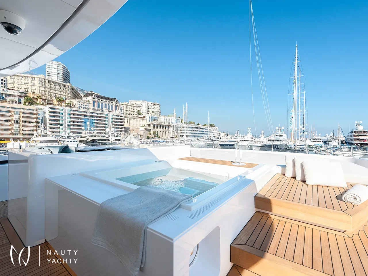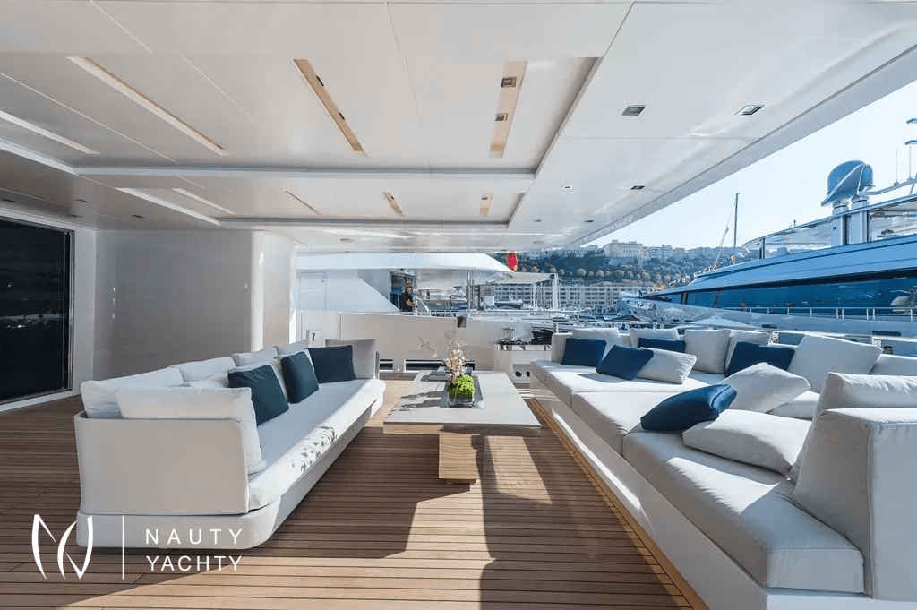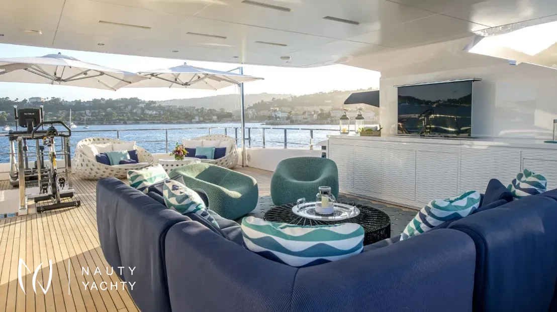 Welcome to the distinguished motor yacht Axios, a 47-meter Admiral vessel presently undergoing an extensive refit, poised to offer an elevated and refined experience for her guests onboard. Axios graciously accommodates up to 12 guests within its five cabins, including both twin cabins that provide convertible configurations for flexible arrangements.Journey aboard Axios, where the yacht's contemporary design seamlessly integrates with captivating surroundings. An inviting jacuzzi on the deck awaits, providing an ideal setting for relaxation amidst panoramic sea vistas. Serving as a floating sanctuary of entertainment, Axios is fully equipped with an array of water toys, ensuring each nautical moment is distinguished and memorable.For individuals with an inclination for an active lifestyle, Axios features a dedicated fitness room filled with state-of-the-art equipment, allowing guests to maintain their exercise regimen while cruising the open waters. The comprehensive refit of the yacht ensures that modern elegance and sophistication are exhibited with every detail, creating an atmosphere of comfort and luxurious distinction.In addition to its lavish amenities, Axios is equipped with stabilizers at anchor and underway, enhancing the overall comfort and stability of the yacht. Embark on an incredible journey aboard the meticulously revitalized Axios, promising a tailored voyage crafted to exceed your utmost expectations.