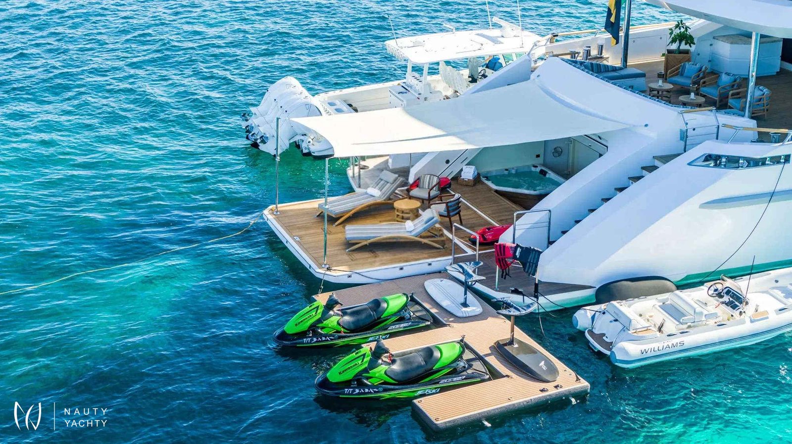 Engines: 2 x CATERPILLAR 2375 each, (First Tier 4 System in any yacht) Latest generation of Caterpillar 35 series engines. They are fully compliant with the new International Maritime Organisation (IMO) directives on 'clean exhaust' measures that will be in force from 2022 on-wards. 'Tier 4' is the standard that must be achieved for all new power plants employed in newly built/launched vessels of over 500GT and greater than 1500 kW of power. The specialized ceramic exhaust filters in conjunction with the exhaust after burners ensure that the exhaust emissions are compliant with future rules and regulations now. And are the cleanest of any +500GT vessel afloat.
