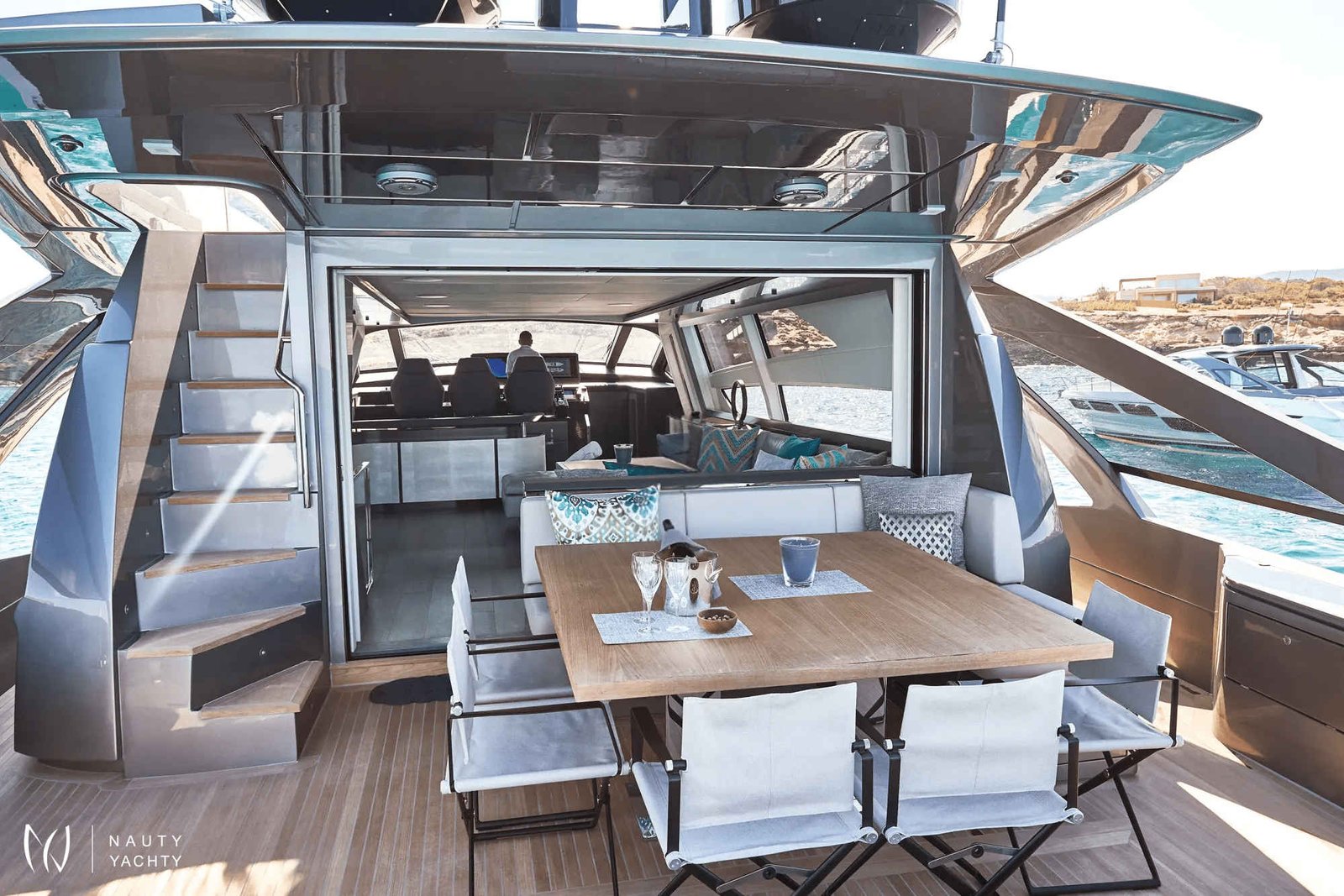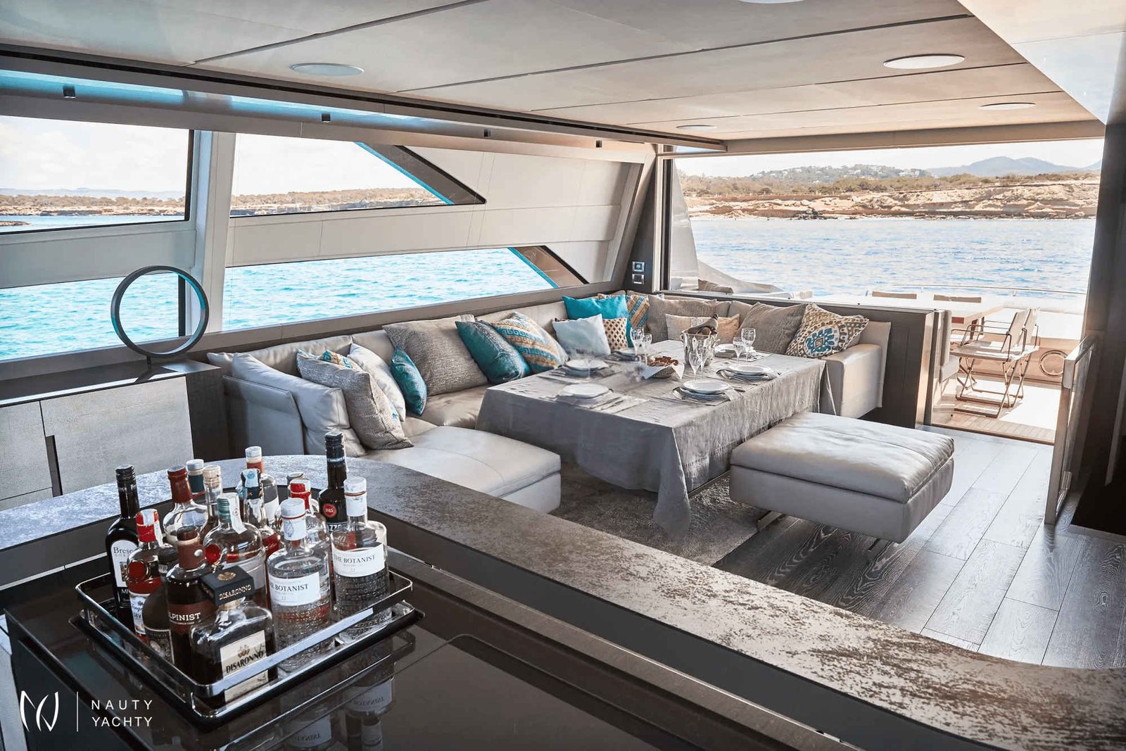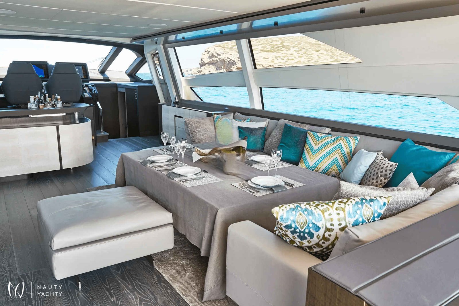 BALOO III is the best and most exclusive Pershing 9X in the world, featuring a very special layout and a fully interior and deck design.The Pershing 9X is a work of true state-of-the-art nautical design, the perfect combination of wonder and amazement and an awe-inspiring blend of luxury and technology.With its futuristic materials and engines, the Pershing 9X is a revolutionary Sports Yacht that merges the Pershing thrill with “X Generation” excellence to produce an unprecedented nautical experience.The Pershing 9X combines elegance and technology to maximize on board pleasure. The aft deck offers extremely generous spaces for relaxing thanks to a lounge, dining area and a large sun pads.Baloo III has 2 other key area for lounging and sun-bathing: The bow area with large sun-beds and a seating area and the newly designed fly bridge.The interior décor boasts the best Italian brands, such as the leather-upholstered “Interior in Motion” helm station which celebrates the partnership between Pershing and Poltrona Frau.This new Pershing 90 is set for success.