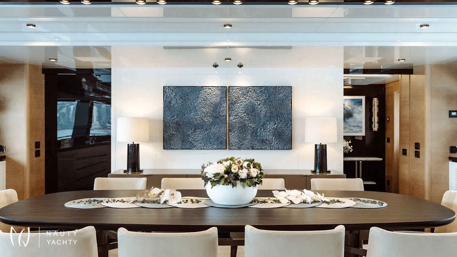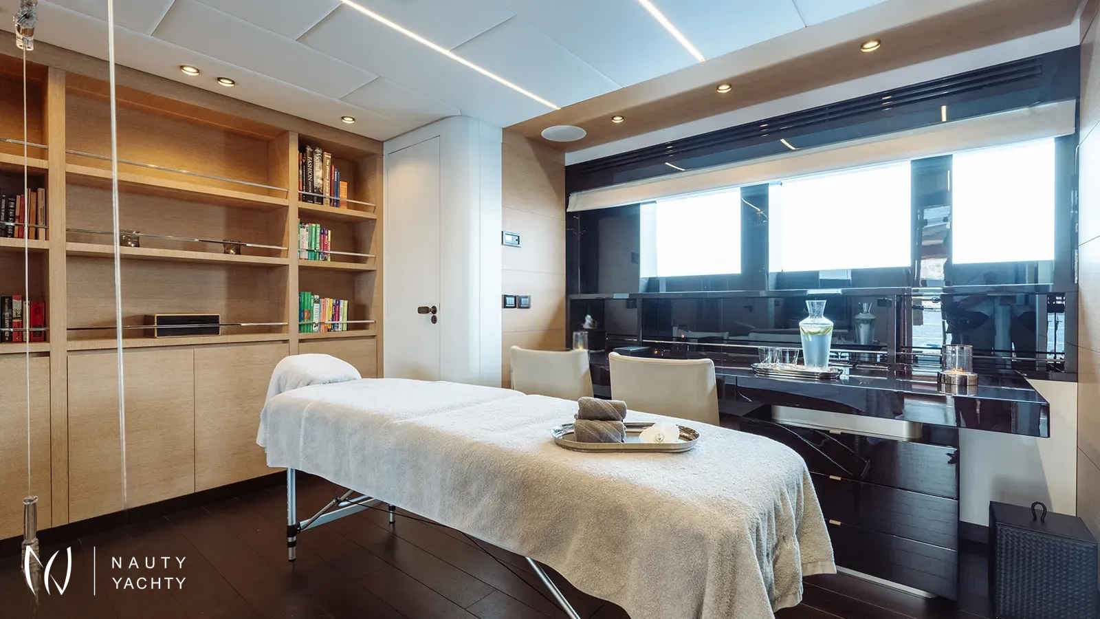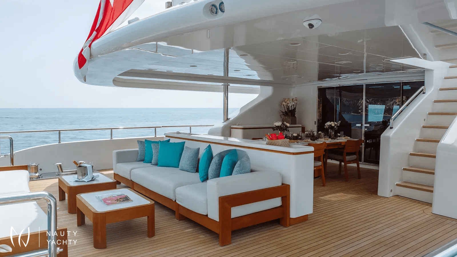 A finalist in both the World Superyacht Awards and ShowBoats Design Awards in 2014, Bon Vivant offers an outstanding charter experience for up to 12 guests. Jet propulsion and a draft of just 6.5’ make Bon Vivant ideal for cruising both the shallow waters of The Bahamas and the azure Mediterranean. With six large cabins, she is a popular choice for all charter group configurations. Presented in immaculate condition following a significant 2020 refit, huge investment has been made to update her many charter amenities, including the addition of an on deck Jacuzzi forward and a brand new, fully-equipped Technogym with a fold-down balcony.Built in 2013 by Codecasa, Bon Vivant is a shining example of the Italian shipyard’s custom-built, all-aluminium superyachts. A high-speed performance yacht, she is both seaworthy and comfortable with high quality, award-winning features to create an unmatched onboard experience.Reaching thrilling top speeds of 29 knots, a sporty exterior design with open-plan layout by Andrea Bacigalupo creates near-endless deck space for guests to enjoy. Relax on the upper deck sun loungers, enjoy al fresco meals shaded from the midday heat, or take an aperitif on the inbuilt U-shaped seating with dinette tables on the foredeck. Those wishing to spend time bronzing will also appreciate the large foredeck sunpads, while further forward a smart deck space allows guests to truly appreciate Bon Vivant’s incredible speeds.Additional lounge seating is found on the main deck aft, which is subtly sheltered from both sun and wind. When at anchor, long hours spent in the generous beach club are made all the more comfortable by Bon Vivant’s gyroscopic zero speed stabilisers. From here, guests can dive into snorkel exploration or up the tempo with a host of inflatable towables. A collection of the finest water toys, from jetskis and JetSurfs to SeaBobs offer a large dose of fun for all ages. Two GoCycles make shore-side exploration pleasurable and easy, and a 23’ Castoldi tender picks up the tempo for waterski and wakeboard fans alike.Up to 12 guests are accommodated in six large cabins. The owner’s full-beam stateroom offers an outstanding living space on the main deck, with two dressing rooms, two bathrooms, a private balcony and direct access to both the owner’s study and the onboard gym. An additional two VIP double cabins, one double cabin and three twin cabins can be found on the lower deck. All guest suites include entertainment centres with televisions and en suite facilities.Perfectly suited to all types of charter party, from couples to families and corporate groups, Bon Vivant has something for everyone, with themed romantic charters or corporate events even an option.**NOT OFFERED FOR CHARTER WHILE IN US WATERS**