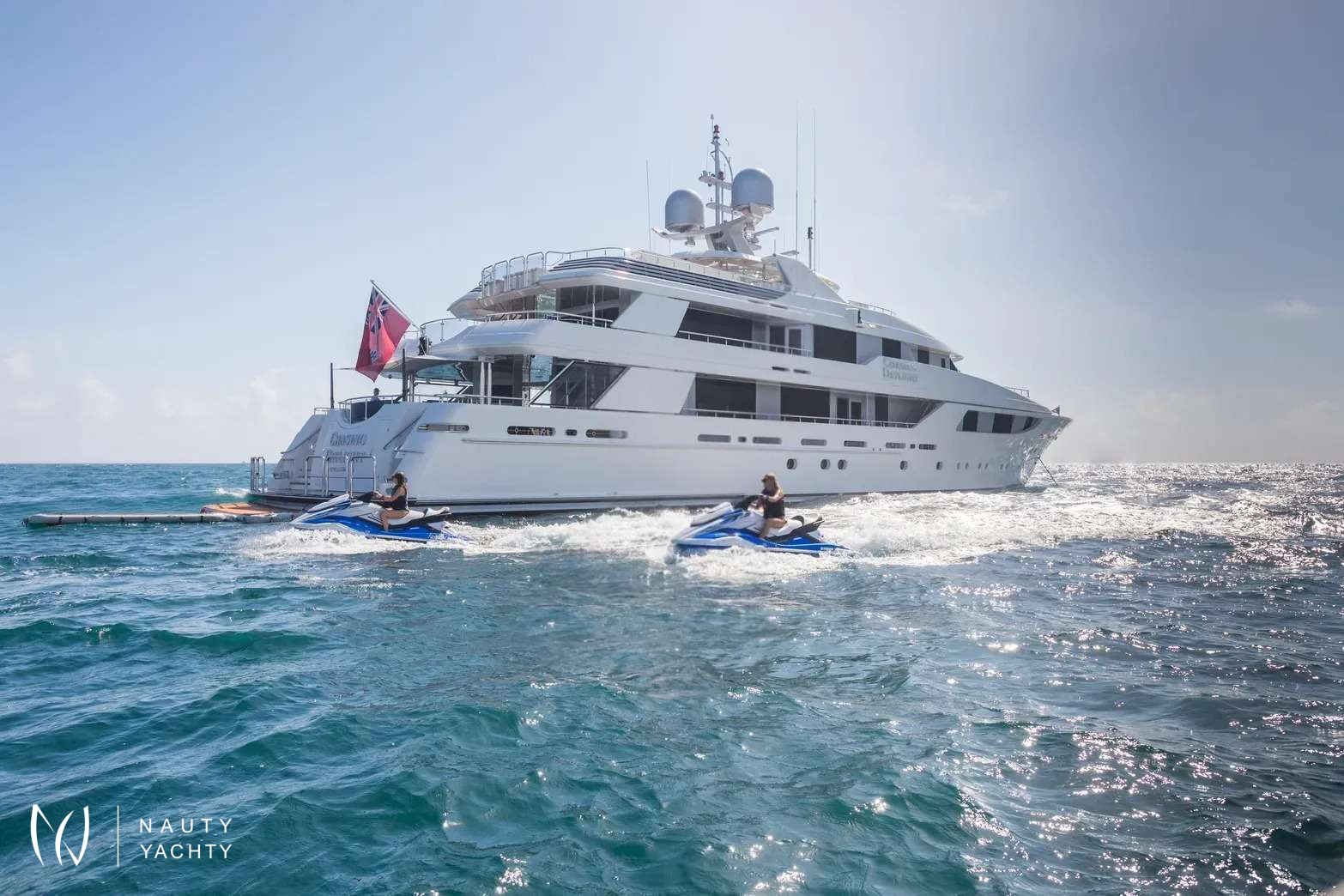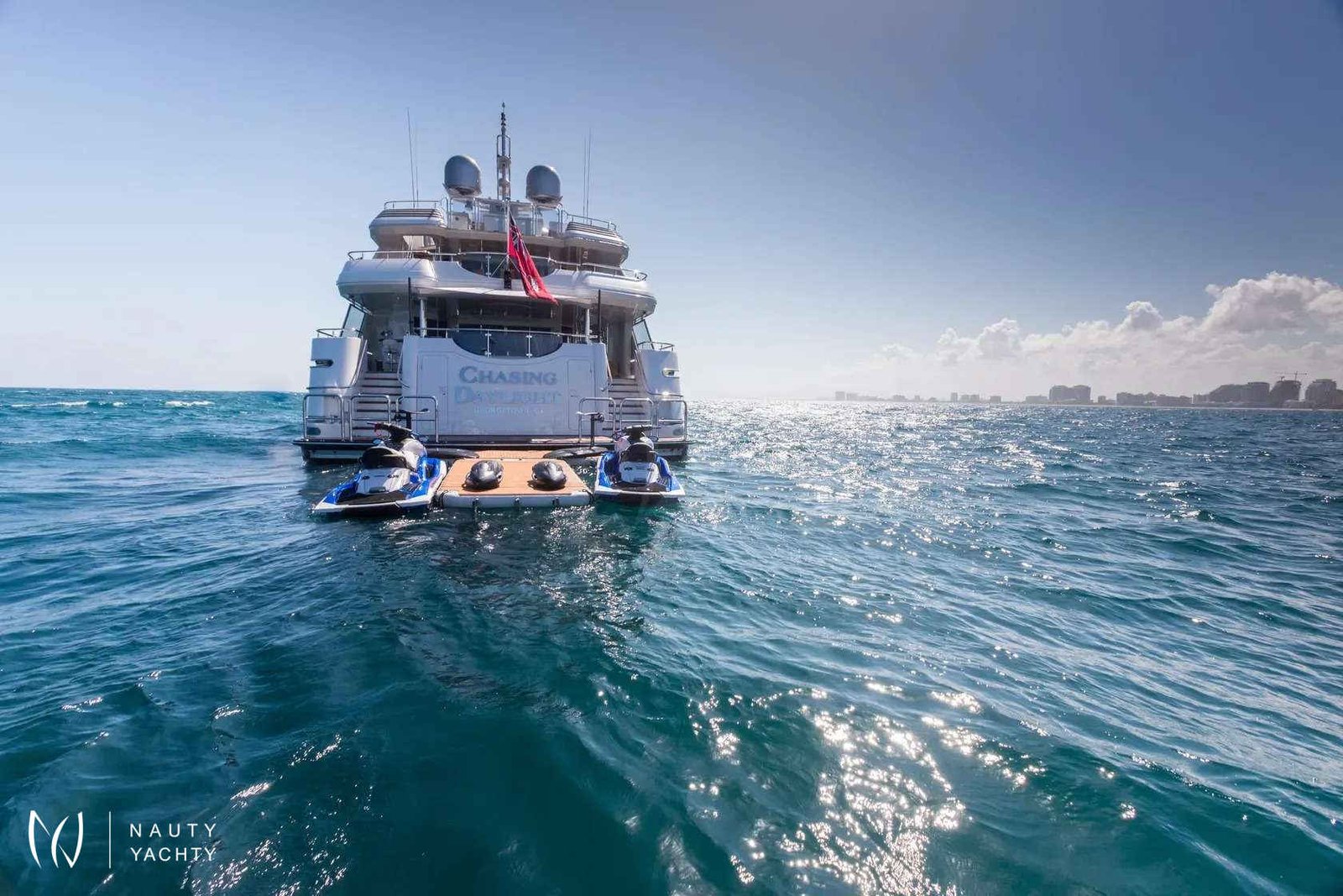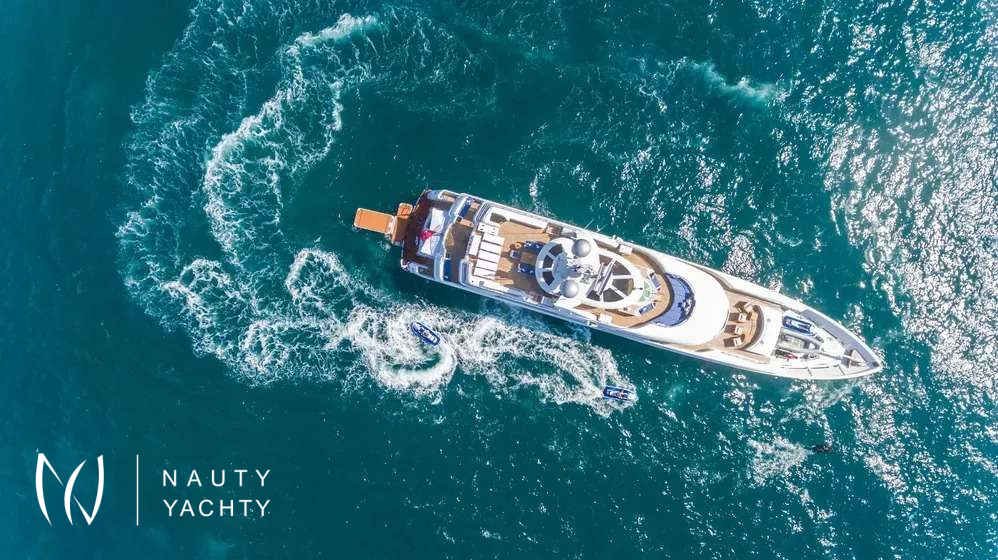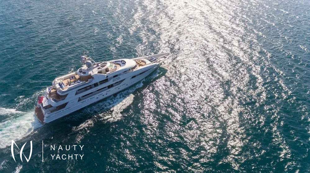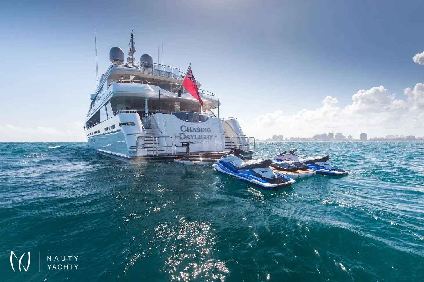 From dawn to dusk, the 164-foot (50m) CHASING DAYLIGHT will have guests chasing the daylight, making memories of a lifetime. During the charter, the superyacht’s crew of 11 will ensure all guests have a first-class holiday filled with one-of-a-kind experiences, including themed dinners, water sports and fishing. Days aboard will be filled with exploring on the tender, having fun on the waves with the water toys, relaxing with endless sea views and enjoying alfresco meals.Guests will feel right at home in CHASING DAYLIGHT’s contemporary styled interior. Expansive windows enrich the interior with natural light and allow guests to take in sea views while enjoying the interior’s comforts. The superyacht’s main salon and skylounge both provide desirable spaces for guests to unwind and socialize. An elevator servicing all levels ensures easy movement throughout the yacht.Luxury charter yacht CHASING DAYLIGHT welcomes up to 12 guests in the sumptuous comfort of six staterooms. Each stateroom is beautifully appointed, creating an oasis to rest up for the next day ahead. The superyacht’s king-bed master stateroom is located on the main deck to offer added privacy. On the bridge deck, the motor yacht features a king VIP with a private balcony, which is the ideal place for morning coffee or to read a book. The yacht’s additional staterooms on the lower level include two king-bed staterooms, a convertible twin/queen stateroom and a double-bed stateroom with a Pullman.CHASING DAYLIGHT’s outdoor living spaces offer something for everyone with options for entertaining and relaxing in the sun or shade. The sundeck is the hub of the yacht providing guests with three hundred and sixty-degree views of the charter destination. Here guests can become sun-kissed on the sunpads, unwind in the Jacuzzi and enjoy a drink while socializing on the lounge area aft. Guests have the option of alfresco dining on the bridge deck aft and main deck aft. The main deck aft also has a charming lounge area perfect for a morning coffee or after-dinner drinks. A few steps down from the main deck aft is a swim platform where guests can jump in the water and enjoy charter yacht CHASING DAYLIGHT’s plethora of water toys.