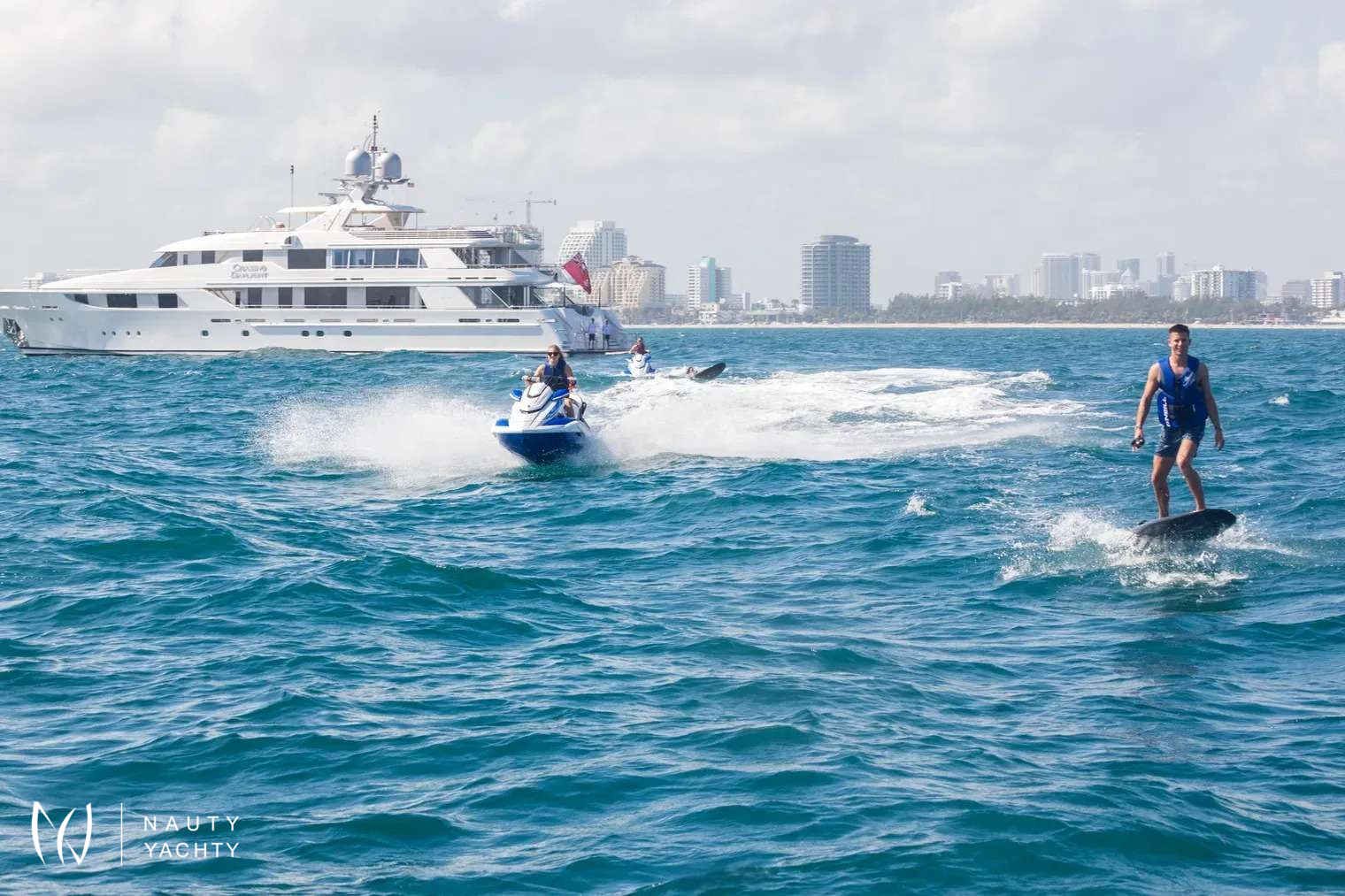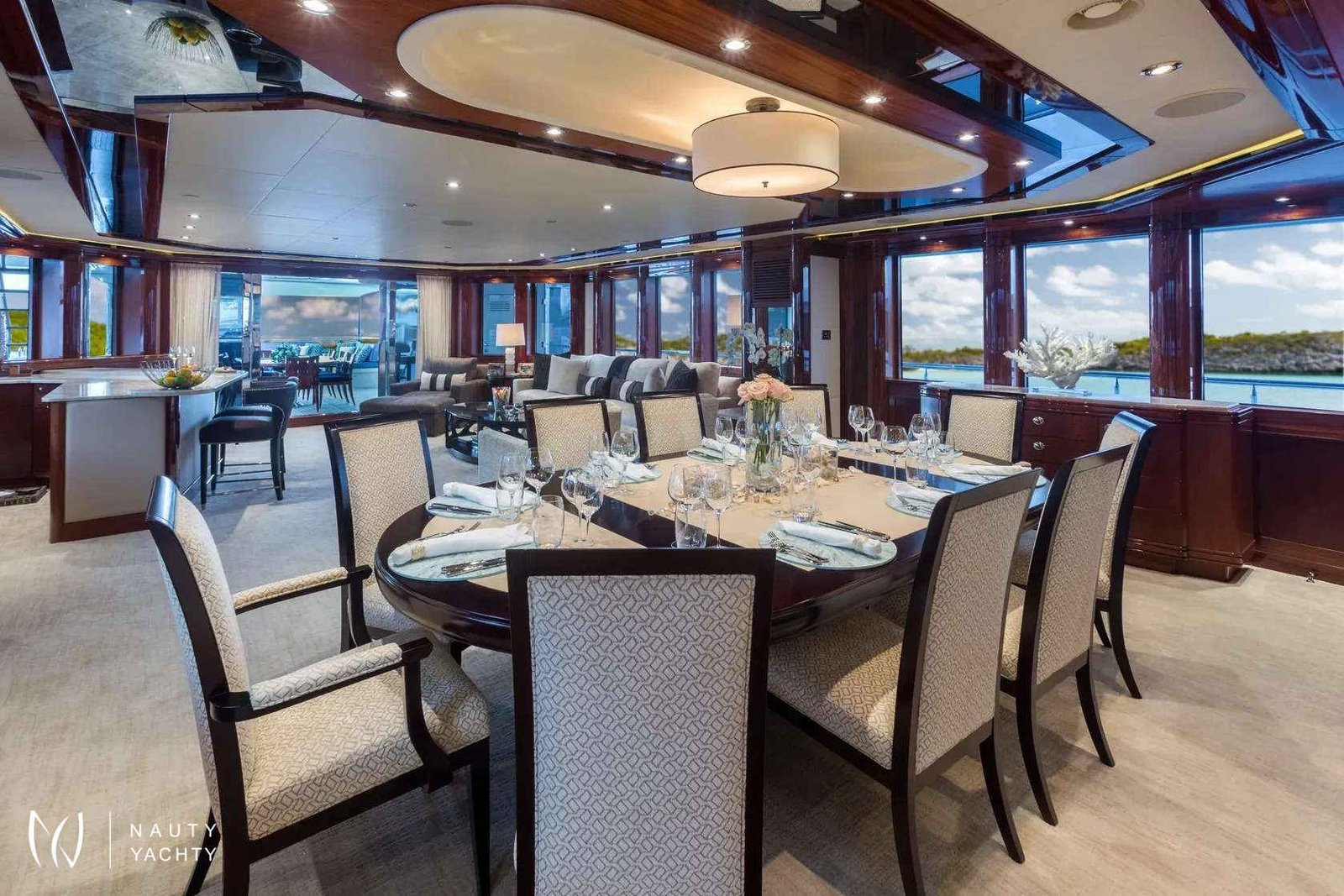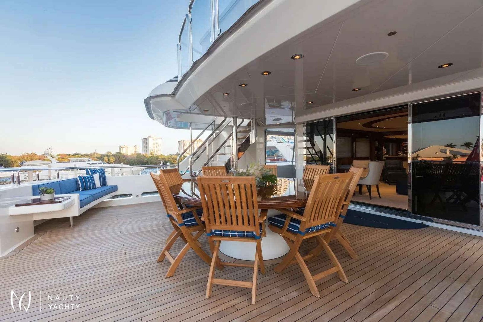 From dawn to dusk, the 164-foot (50m) CHASING DAYLIGHT will have guests chasing the daylight, making memories of a lifetime. During the charter, the superyacht’s crew of 11 will ensure all guests have a first-class holiday filled with one-of-a-kind experiences, including themed dinners, water sports and fishing. Days aboard will be filled with exploring on the tender, having fun on the waves with the water toys, relaxing with endless sea views and enjoying alfresco meals.Guests will feel right at home in CHASING DAYLIGHT’s contemporary styled interior. Expansive windows enrich the interior with natural light and allow guests to take in sea views while enjoying the interior’s comforts. The superyacht’s main salon and skylounge both provide desirable spaces for guests to unwind and socialize. An elevator servicing all levels ensures easy movement throughout the yacht.Luxury charter yacht CHASING DAYLIGHT welcomes up to 12 guests in the sumptuous comfort of six staterooms. Each stateroom is beautifully appointed, creating an oasis to rest up for the next day ahead. The superyacht’s king-bed master stateroom is located on the main deck to offer added privacy. On the bridge deck, the motor yacht features a king VIP with a private balcony, which is the ideal place for morning coffee or to read a book. The yacht’s additional staterooms on the lower level include two king-bed staterooms, a convertible twin/queen stateroom and a double-bed stateroom with a Pullman.CHASING DAYLIGHT’s outdoor living spaces offer something for everyone with options for entertaining and relaxing in the sun or shade. The sundeck is the hub of the yacht providing guests with three hundred and sixty-degree views of the charter destination. Here guests can become sun-kissed on the sunpads, unwind in the Jacuzzi and enjoy a drink while socializing on the lounge area aft. Guests have the option of alfresco dining on the bridge deck aft and main deck aft. The main deck aft also has a charming lounge area perfect for a morning coffee or after-dinner drinks. A few steps down from the main deck aft is a swim platform where guests can jump in the water and enjoy charter yacht CHASING DAYLIGHT’s plethora of water toys.
