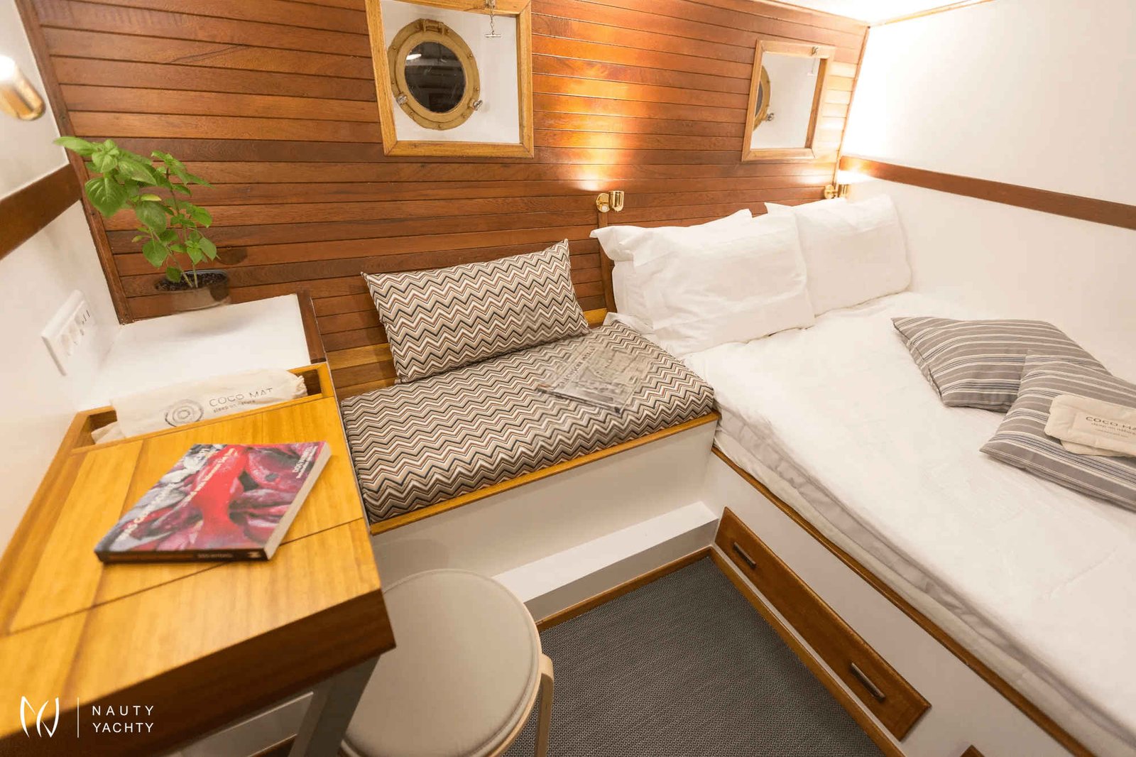 Experience Timeless Elegance and Unrivaled Comfort Aboard COSMOS – A Masterpiece of Maritime LuxuryStep aboard COSMOS, a traditional wooden vessel where timeless craftsmanship meets modern indulgence. Designed with an elegant elliptical stern and built from the world’s finest materials, COSMOS is more than a yacht — it’s a sanctuary of harmony, calm, and understated opulence.Unmatched Comfort & TranquilityWith four exquisitely appointed cabins, COSMOS offers bespoke comfort for up to 8 guests. Each cabin is thoughtfully designed to provide a serene retreat at sea, featuring plush COCO-Mat mattresses, ensuring restful nights rocked by the gentle waves.Modern Entertainment & RelaxationWhether you seek peace or play, COSMOS has it all. The spacious salon is a haven of sophistication, featuring plush seating and the latest in entertainment. Each cabin, as well as the main salon, is equipped with Smart TVs complete with Netflix access, allowing guests to enjoy their favorite shows and movies at their leisure.A Vessel of Refined ArtistryHandcrafted with precision and love, COSMOS exudes warmth and natural beauty. The rich wood finish and classic elliptical stern harken back to the golden age of sailing, while the smooth blend of modern technology and traditional elegance creates an unparalleled atmosphere of balance and serenity.Why Choose COSMOS?Iconic wooden vessel with a rare elliptical stern design.Interiors crafted from the world’s finest natural materials.Lavish cabins with premium bedding for ultimate comfort.Master Cabin with a private jacuzzi for an indulgent escape.Smart TVs with Netflix in every cabin and the main salon for endless entertainment.Whether you seek a romantic retreat, a family getaway, or a serene escape with friends, COSMOS offers a sailing experience unlike any other. Discover the gentle rhythm of the sea, enveloped in luxury, warmth, and timeless elegance.Step aboard COSMOS – where tradition meets tranquility, and every moment becomes a masterpiece.