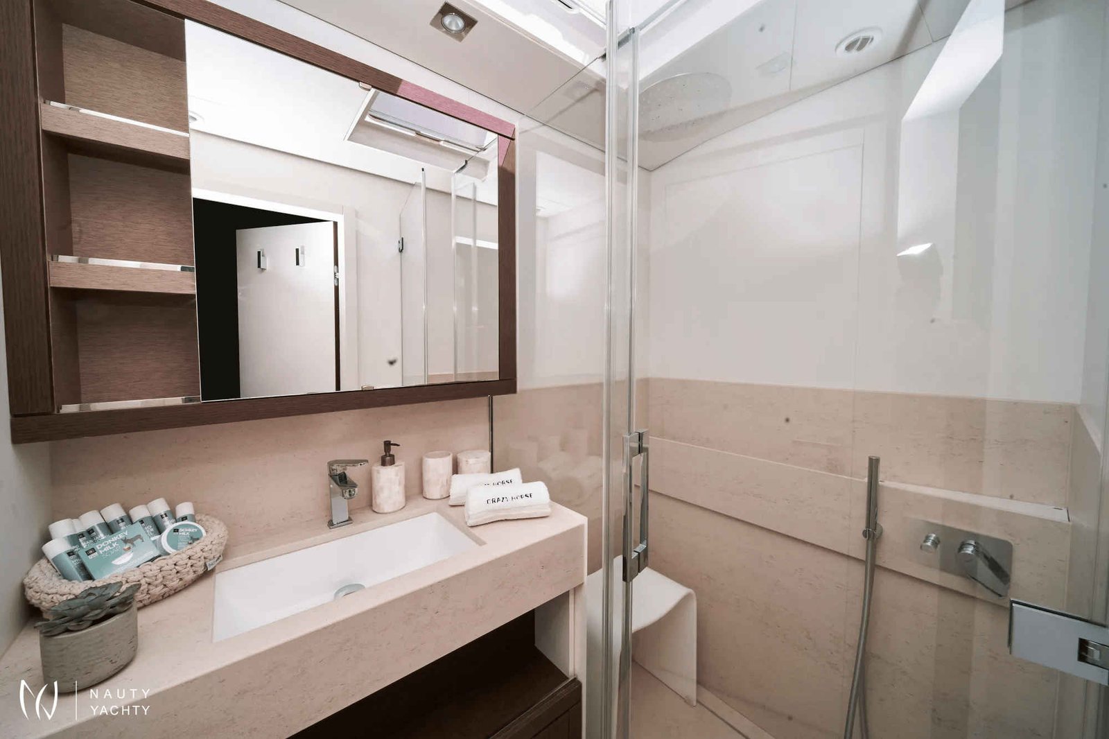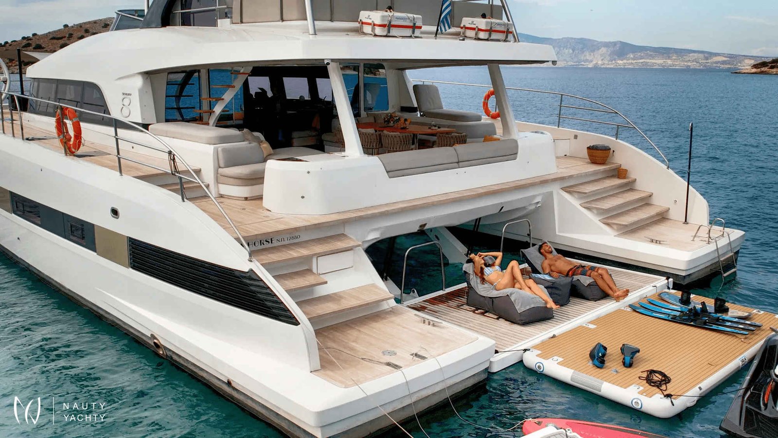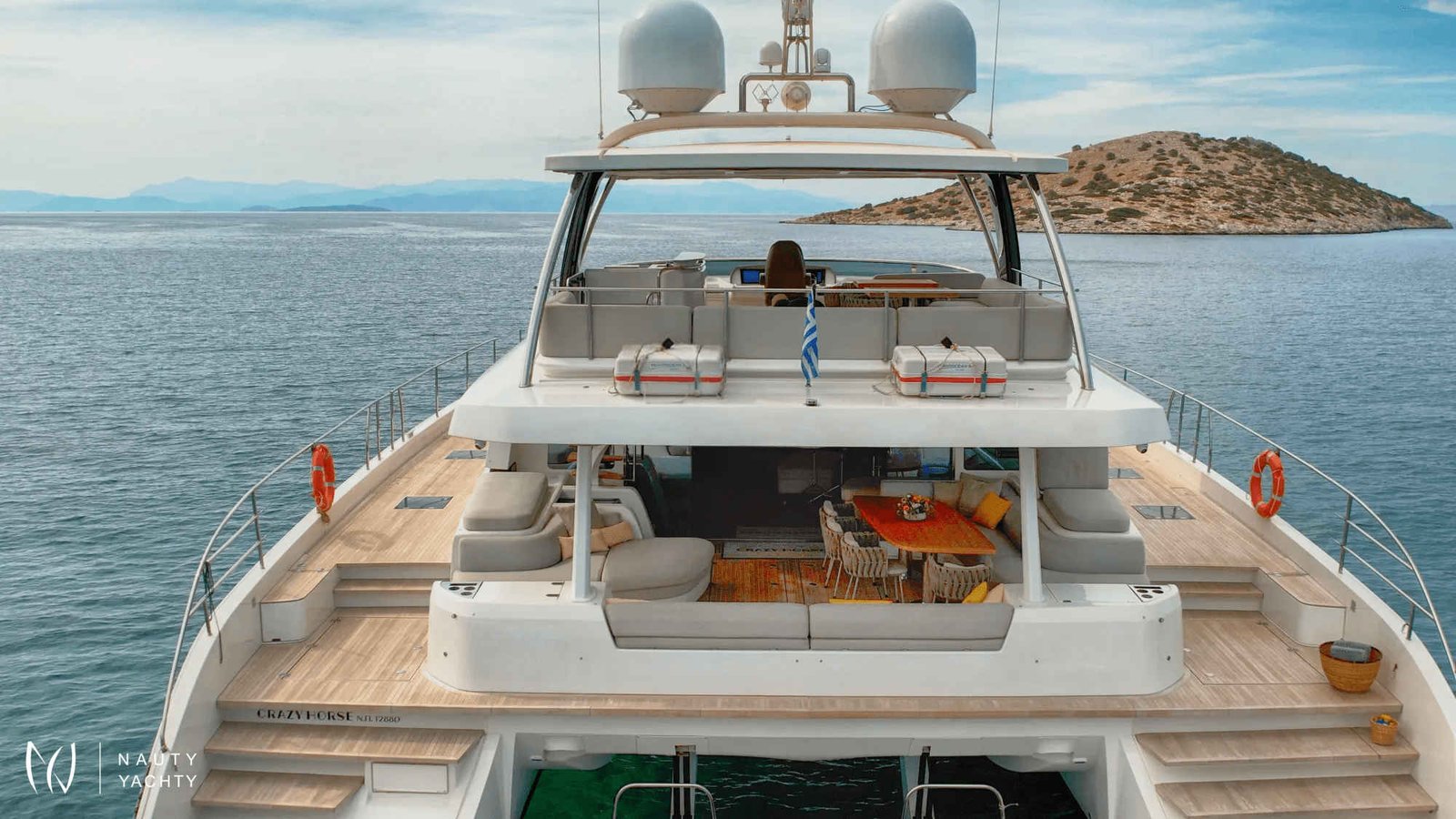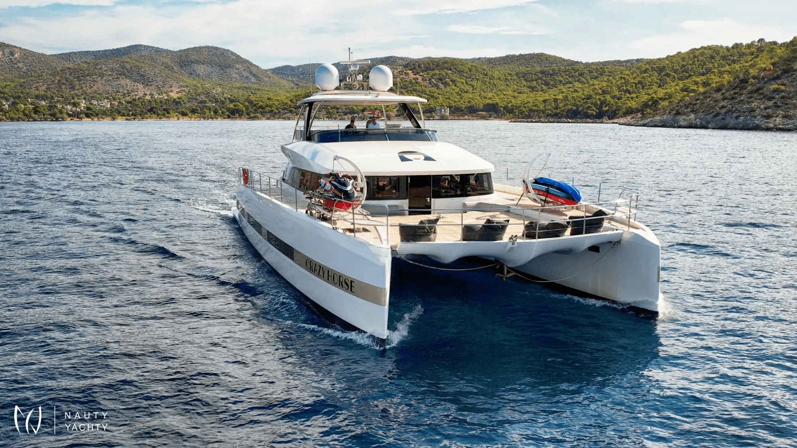 Motor catamaran Crazy Horse, a luxurious Lagoon 78, offers the ultimate sailing experience to guests seeking the combination of luxury and comfort. With 5 beautiful cabins, Crazy Horse has the capacity to accommodate up to 10 guests. Guests can expect to be wowed by the spacious and stylish ensuite cabins featuring modern amenities for a comfortable and unforgettable yachting experience.Crazy Horse is staffed with an experienced and competent crew of 5. The team is dedicated to ensuring that guests have the trip of a lifetime.Crazy Horse is available for charter in Greece and sails the crystal clear waters of the Mediterranean. Discover Greece's stunning coastline and hidden gems while enjoying the amenities aboard Crazy Horse. The yacht features spacious common areas for dining, socializing, and relaxation, including a stylish salon with a full bar and a state-of-the-art entertainment system.Crazy Horse also has ample outdoor space for guests to bask in the Mediterranean sun and enjoy the stunning views. The flybridge offers comfortable seating, and sun-loungers to relax. The yacht also features a variety of water toys, including a jet ski, snorkeling gear, kayaks, paddleboards, and a yacht tender to take full advantage of amazing anchorages Complemented by an array of equipment, Crazy Horse serves as the perfect escape for those wanting to discover the beauty of Greece while being surrounded by the lap of luxury.