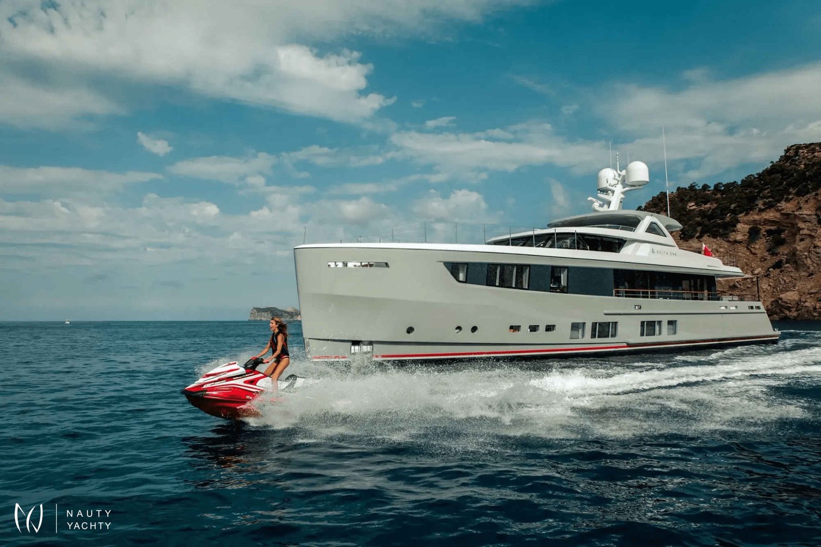 Step aboard the award-winning M/Y DELTA ONE and experience a world of luxury and comfort. Winner of the World Superyacht Award in 2018, this magnificent vessel is the first Mulder ThirtySix ever built, boasting impressive features and state-of-the-art design. With the Van Oossanen patented Fast Displacement Hull Form, DELTA ONE ensures smooth and comfortable sailing while keeping running costs economical at all speeds. Its 36-meter length offers plenty of space to accommodate up to 10 guests in 5 beautifully designed cabins, including a full-beam master suite for the owners and a dedicated crew of up to 6.The interior of DELTA ONE is nothing short of breathtaking, with a spacious salon, dining room, and bar area located on the main deck. Floor-to-ceiling windows provide panoramic views of the surrounding landscape, while natural light floods the space, creating a warm and welcoming atmosphere. The folding side balcony, perfect for a meal or cocktail, brings the beauty of the seascape right to the table. The beach club, which is substantially larger than typical for a yacht of this size, provides ample space for guests to relax and enjoy the water, with comfortable seating, bathroom facilities, and a bar.But the true gem of DELTA ONE is its sky bridge, where guests can fully embrace the joys of outdoor living. The eight-person Jacuzzi, stylish wet bar, dining table, sunbeds, and loungers create a spacious and comfortable social platform, protected by a hard canopy. The outdoor aft deck area provides ample shaded al fresco seating and dining possibilities, making it the perfect spot to enjoy the landscape or socialize with friends and family.The guest cabins are bright and spacious, all featuring private en-suite bathrooms, and flexible sleeping arrangements. The master cabin, situated forward, is a private space that is sure to impress with its full-beam design, en-suite bathroom, walk-in closets, and private access to the intimate seating area at the bow.M/Y DELTA ONE truly offers a one-of-a-kind experience, combining comfort, luxury, and style. Step aboard and discover the wonders that await you.