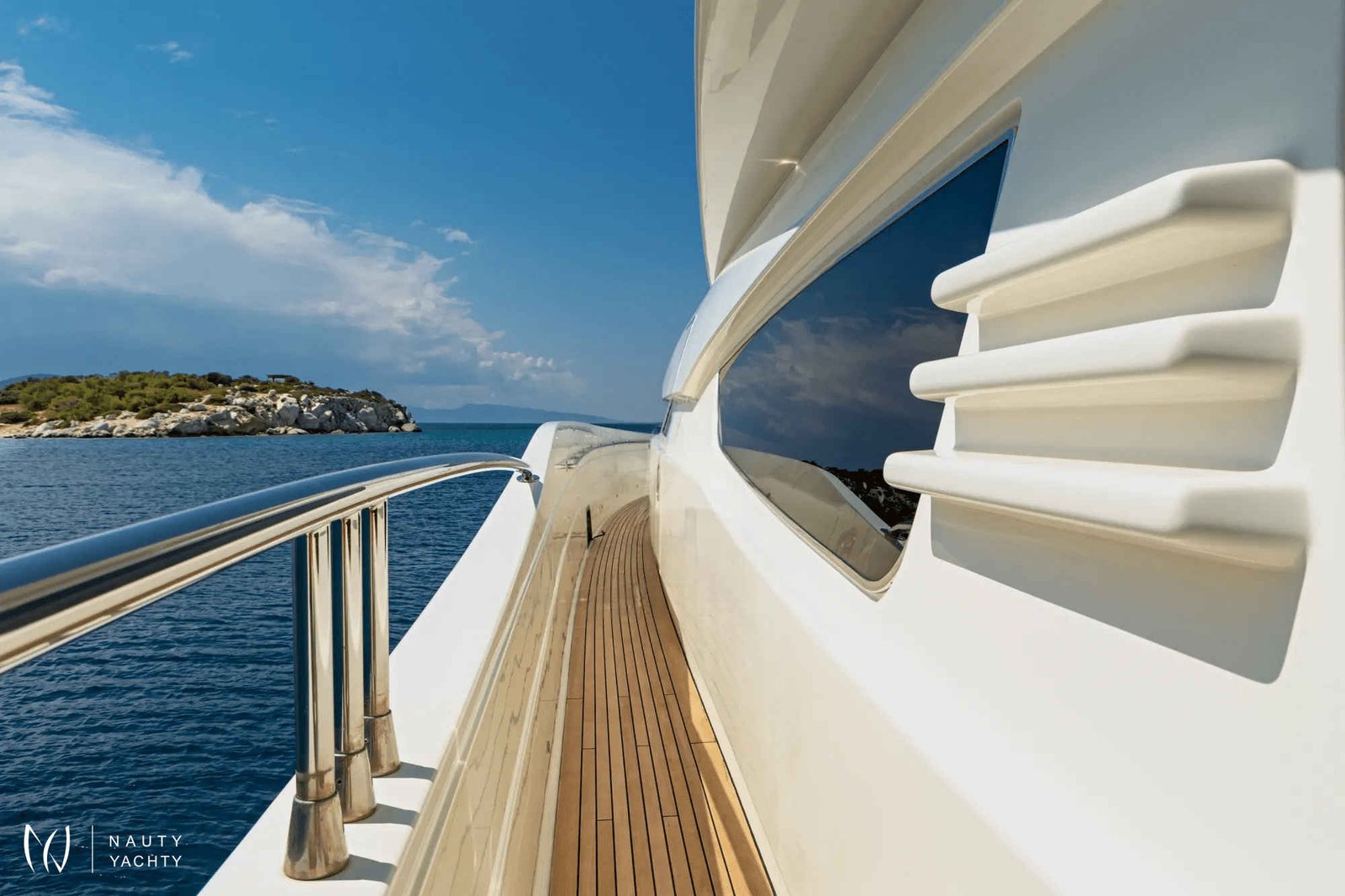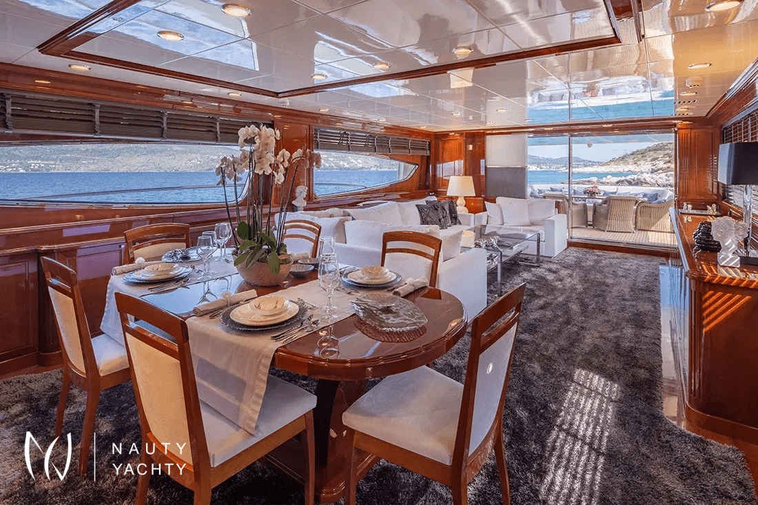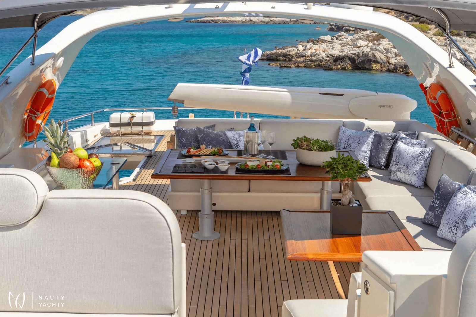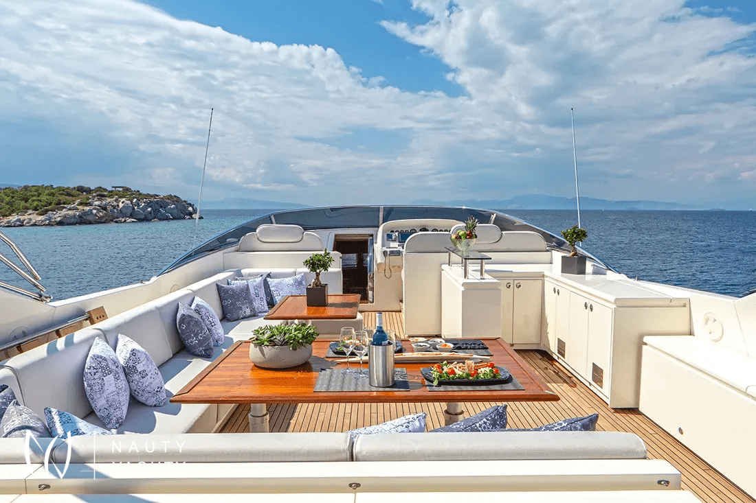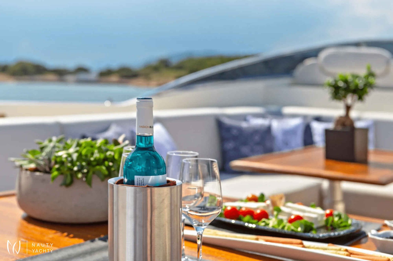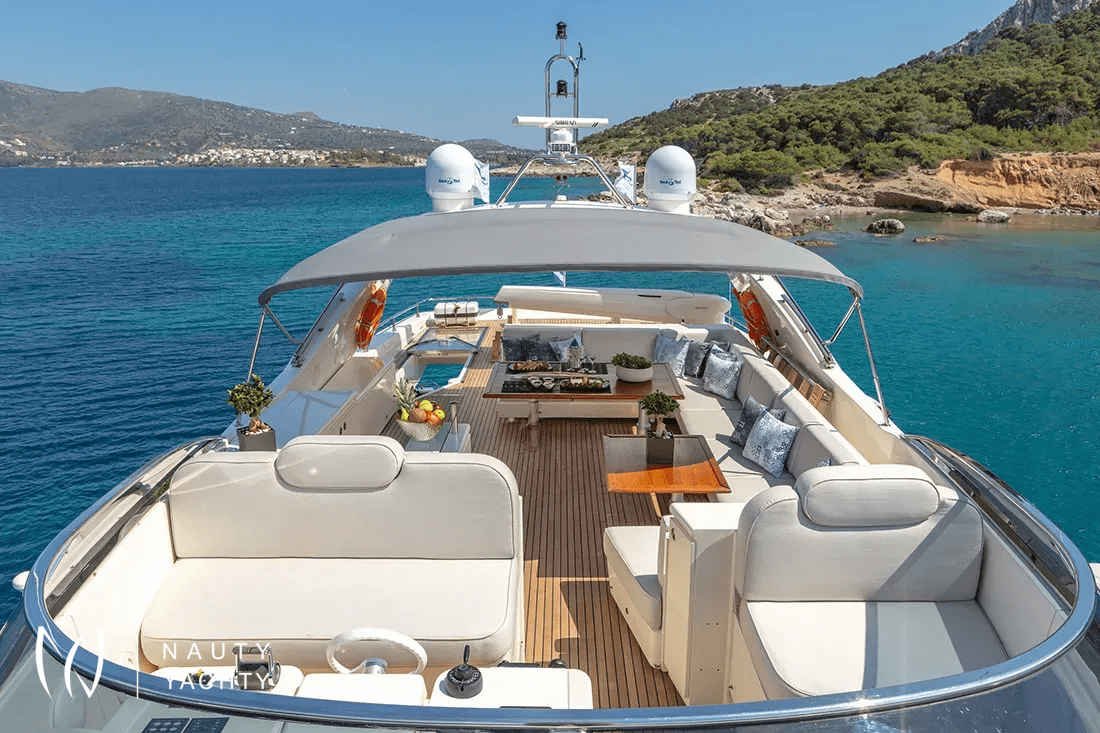 Discover the New Era of Luxury Aboard M/Y DIVINEThe 100ft M/Y DIVINE, a spectacular Posillipo Technema 95S model, welcomes you to a world where timeless elegance meets modern sophistication.Following an extensive 2025 upgrade, DIVINE returns to the seas more captivating than ever—designed for guests who seek effortless luxury and unforgettable moments at sea.From the moment you step on board, DIVINE sets the tone for a refined cruising experience. Her fresh new interiors feature elegant silver accents, brand-new carpets throughout, and luxury amenities that elevate every detail of your stay. The main salon, now graced with an upgraded décor and a sleek modern dining table for 10, is the perfect space to gather, unwind, and indulge.Comfort has been redefined with new curtains in the guest cabins and plush COCO-MAT mattresses and linens, ensuring restorative rest.The newly designed sunbathing area on the upper deck invites you to relax in privacy, soak up the sunshine, or enjoy a cocktail under the stars. With spacious exterior decks, you’ll find multiple spots for dining, lounging, or simply taking in the views—always in total comfort and style.Adventure lovers will be thrilled with the expanded water toy selection for the 2025 season, offering countless ways to enjoy the sea—from jet skiing and paddleboarding to towed inflatables and more.And for those who want to stay connected, DIVINE now features Starlink internet, delivering high-speed connectivity even while cruising remote waters.DIVINE accommodates up to 12 guests in five beautifully appointed, air-conditioned cabins:1 Master Suite1 VIP Cabin1 Guest Cabin2 Twin Cabins with Pullman beds and shower en-suite.Each cabin is a private retreat, combining refined style with thoughtful touches that promote rest and relaxation.Onboard, a professional crew of six is dedicated to making every moment effortless. From gourmet meals to personalized itineraries, their attention to detail ensures that your charter experience feels tailored, relaxed, and truly divine.