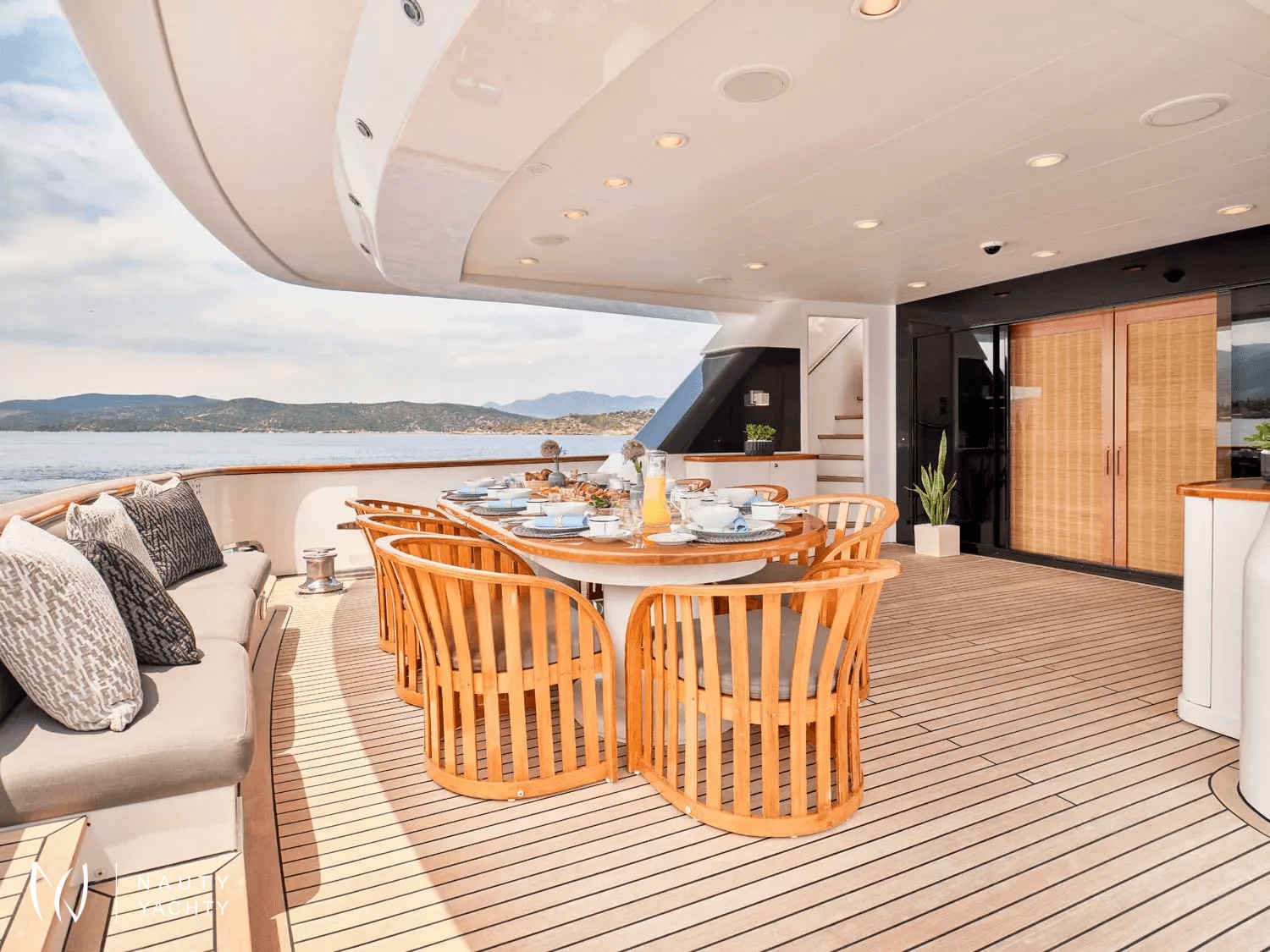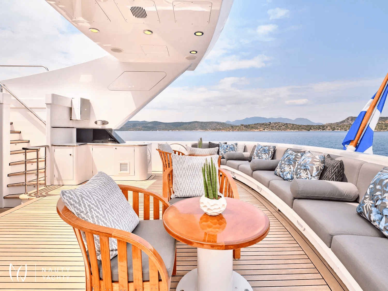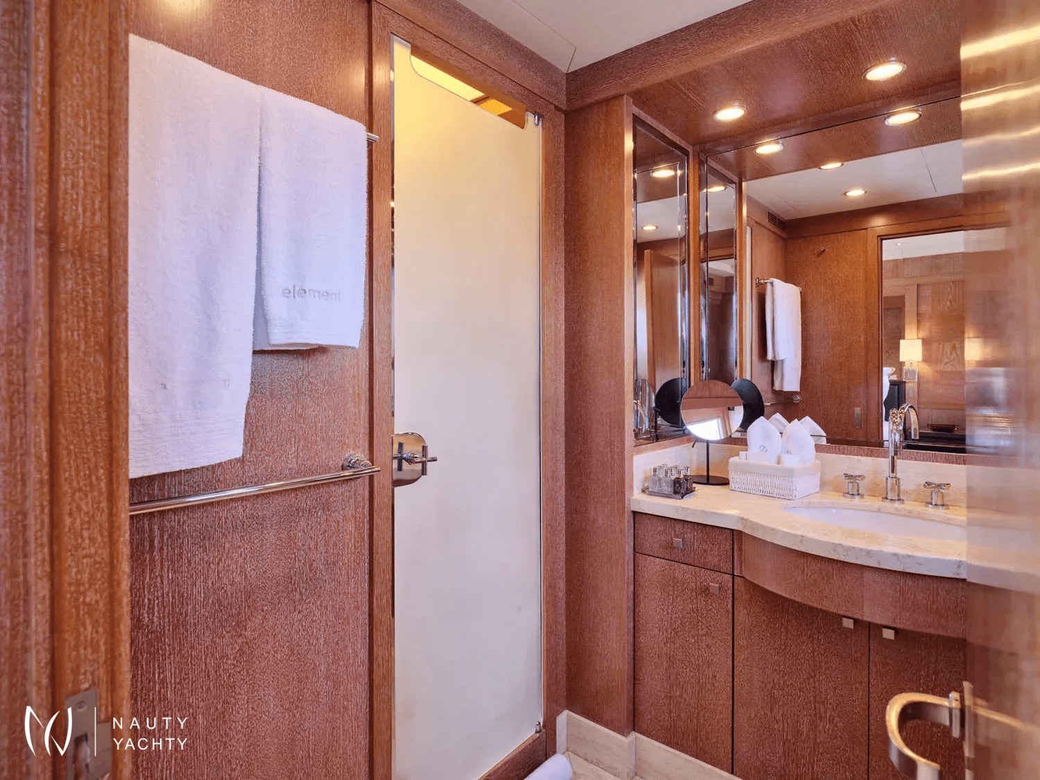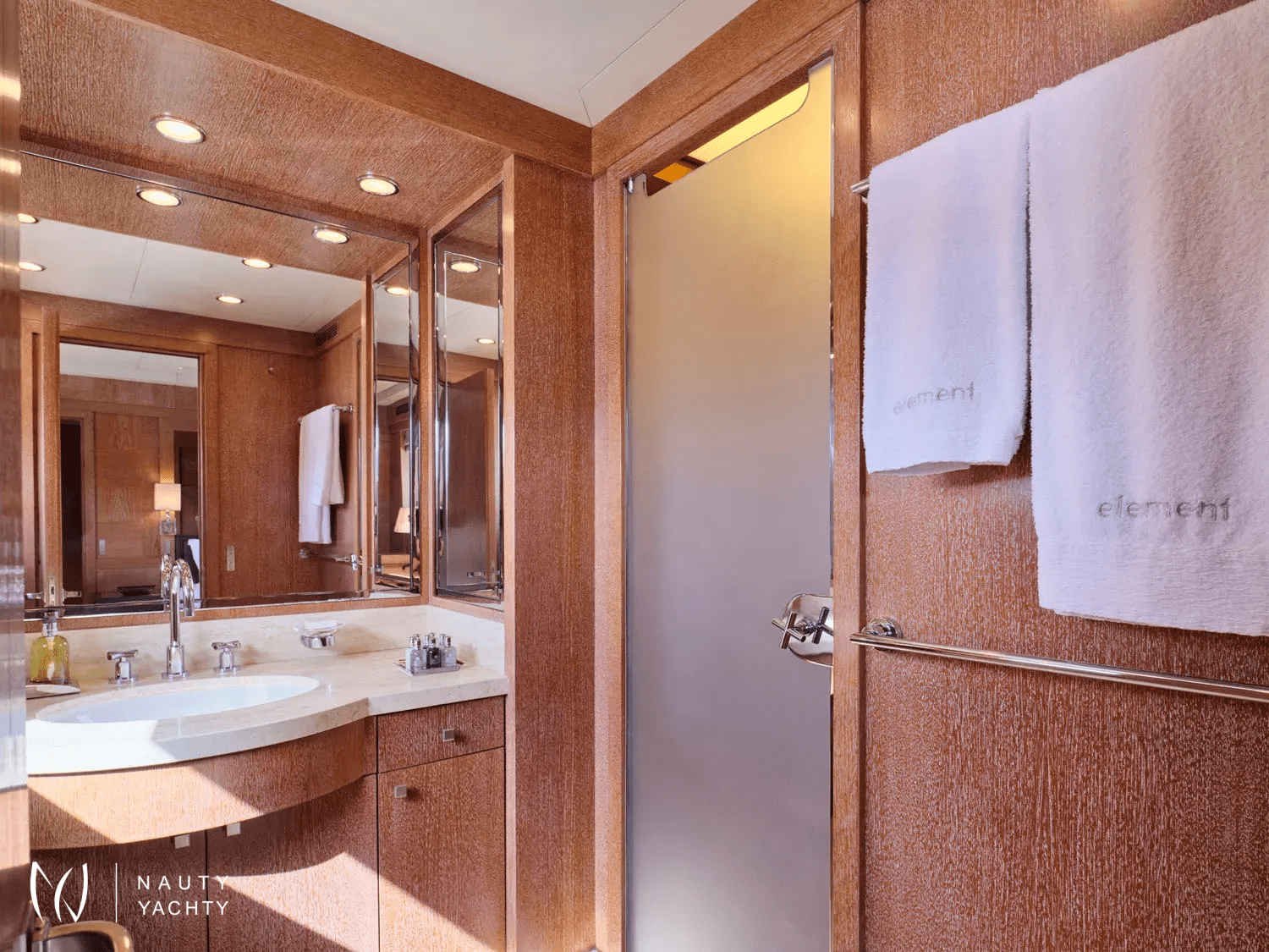 A sleek, modern 140’ Cantieri di Pisa, Element underwent a refit in 2022 with the addition of teak interior floors. She is in mint condition, with a fantastic crew of 9 ensuring guests always have a memorable time onboard. Displaying elegance and exquisite taste, with an Eastern flair, she sleeps up to 12 guests in 6 striking staterooms – two of which are Master Suites. One Master Suite features an identical his and hers bathroom, an office, a cozy sofa, and a walk-in wardrobe whilst the other features a luxurious spa pool bath and spacious lounge area. Her interior features a modern design with large windows giving plenty of natural light and a bright ambiance. With her earth tones and natural textures, Element will surely put you in your element, with the utmost unrivaled comfort and top-notch service. Element provides an excellent charter option for exploring the Mediterranean!