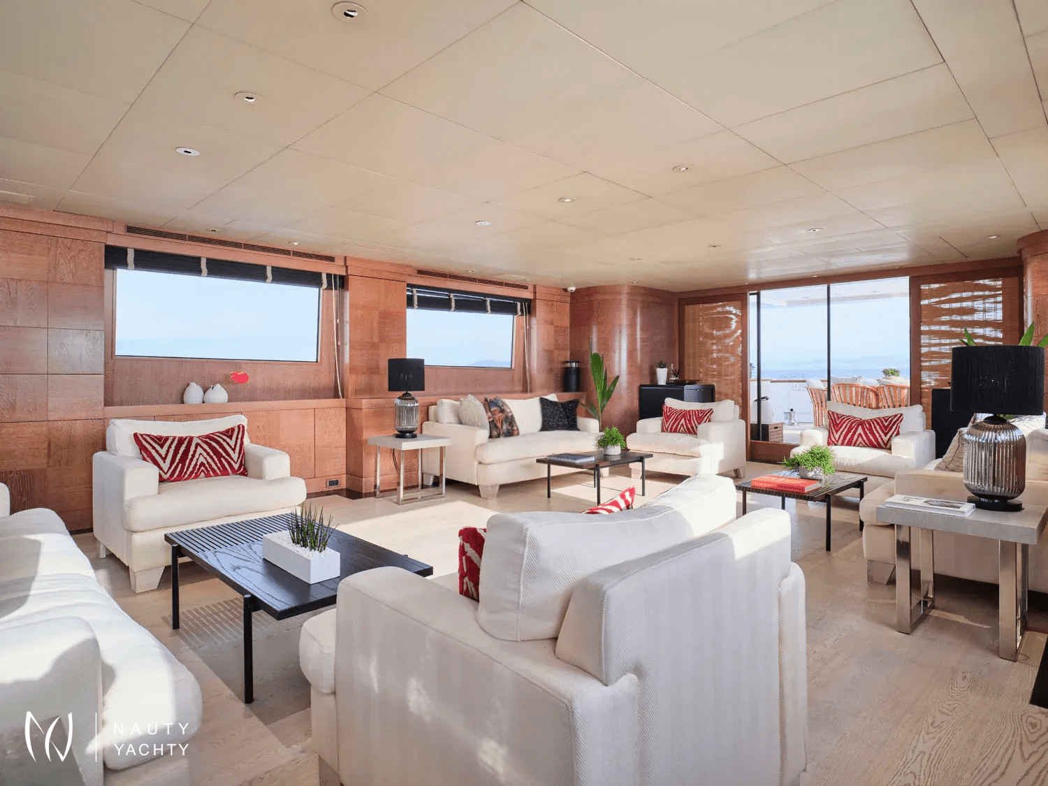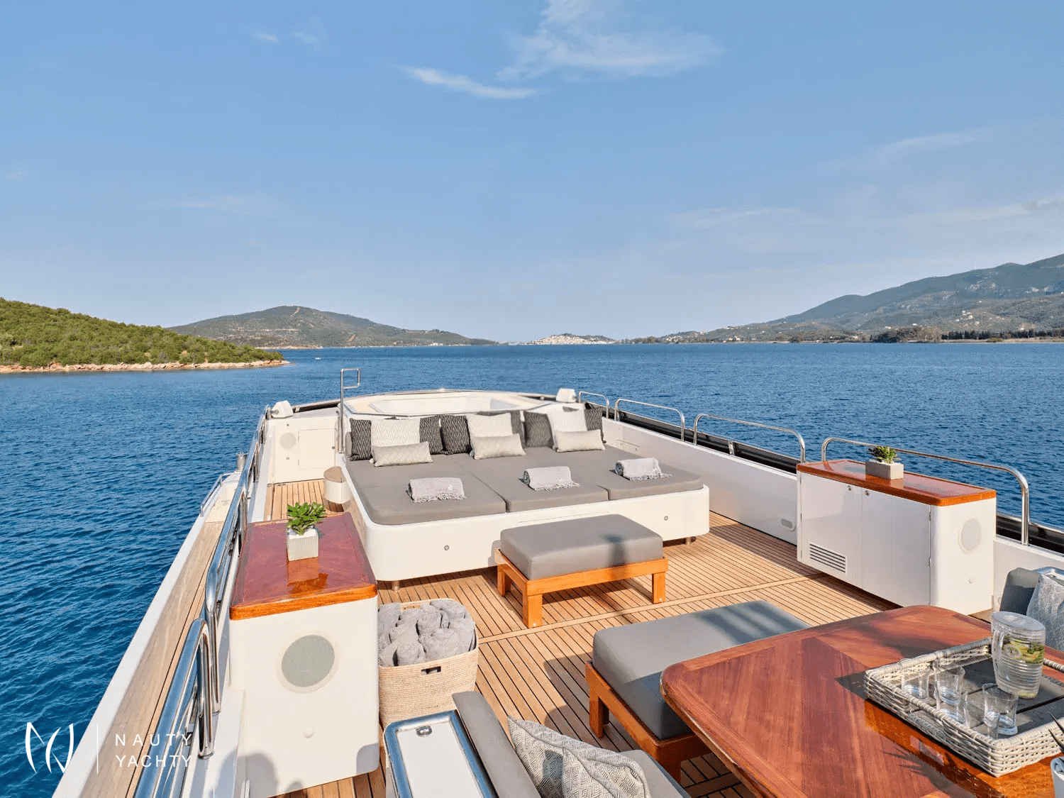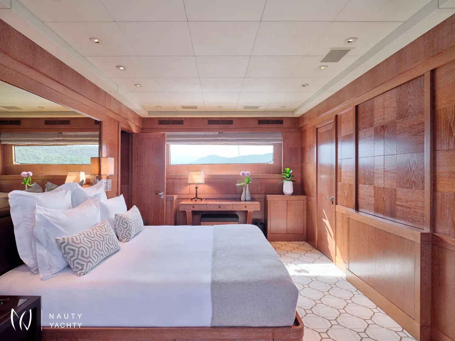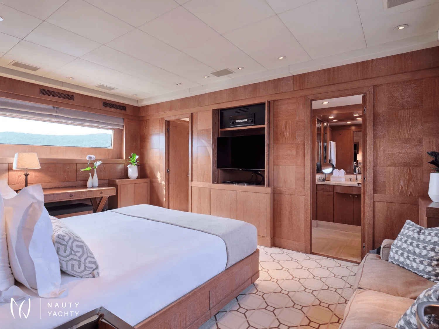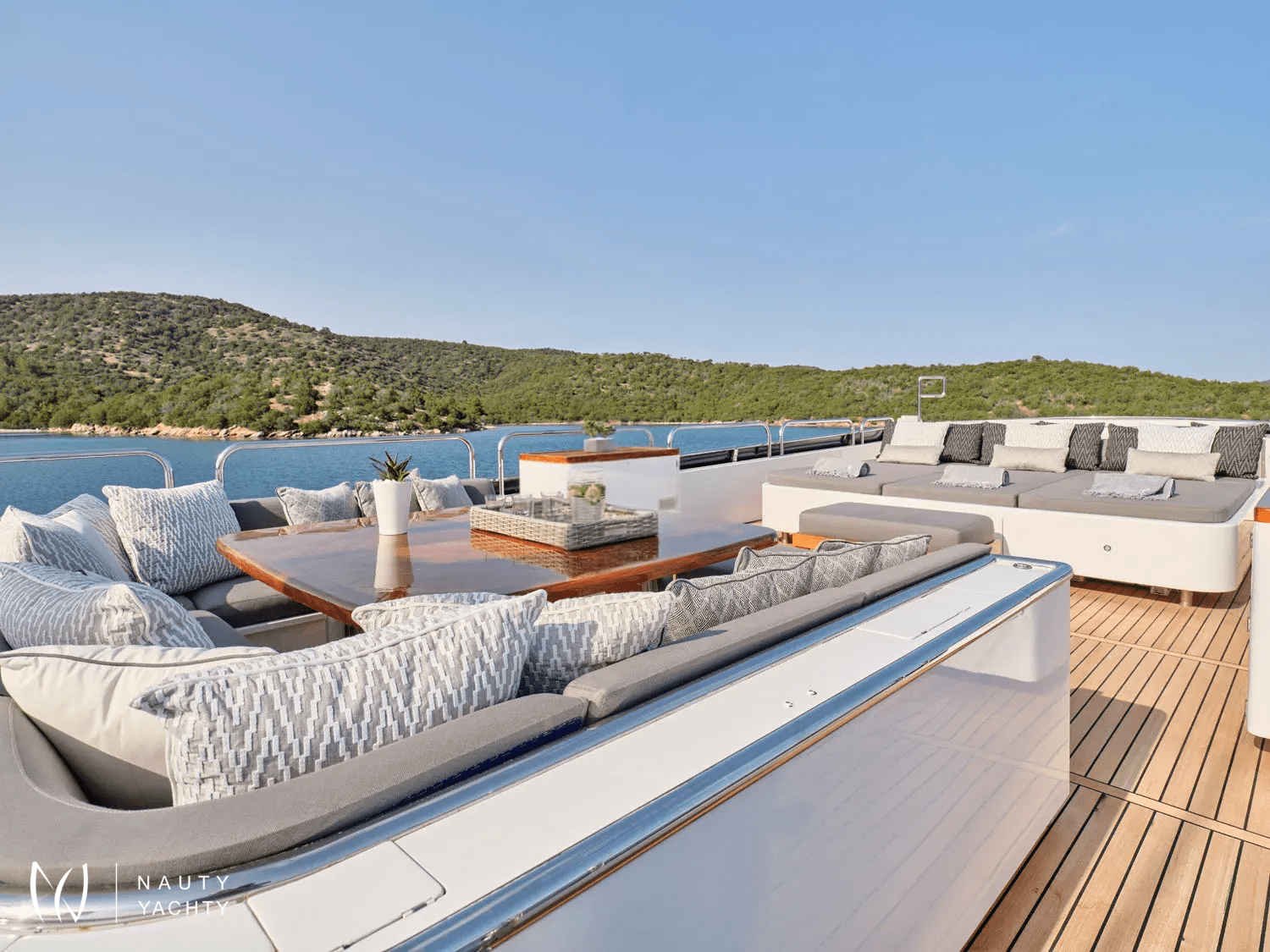 A sleek, modern 140’ Cantieri di Pisa, Element underwent a refit in 2022 with the addition of teak interior floors. She is in mint condition, with a fantastic crew of 9 ensuring guests always have a memorable time onboard. Displaying elegance and exquisite taste, with an Eastern flair, she sleeps up to 12 guests in 6 striking staterooms – two of which are Master Suites. One Master Suite features an identical his and hers bathroom, an office, a cozy sofa, and a walk-in wardrobe whilst the other features a luxurious spa pool bath and spacious lounge area. Her interior features a modern design with large windows giving plenty of natural light and a bright ambiance. With her earth tones and natural textures, Element will surely put you in your element, with the utmost unrivaled comfort and top-notch service. Element provides an excellent charter option for exploring the Mediterranean!