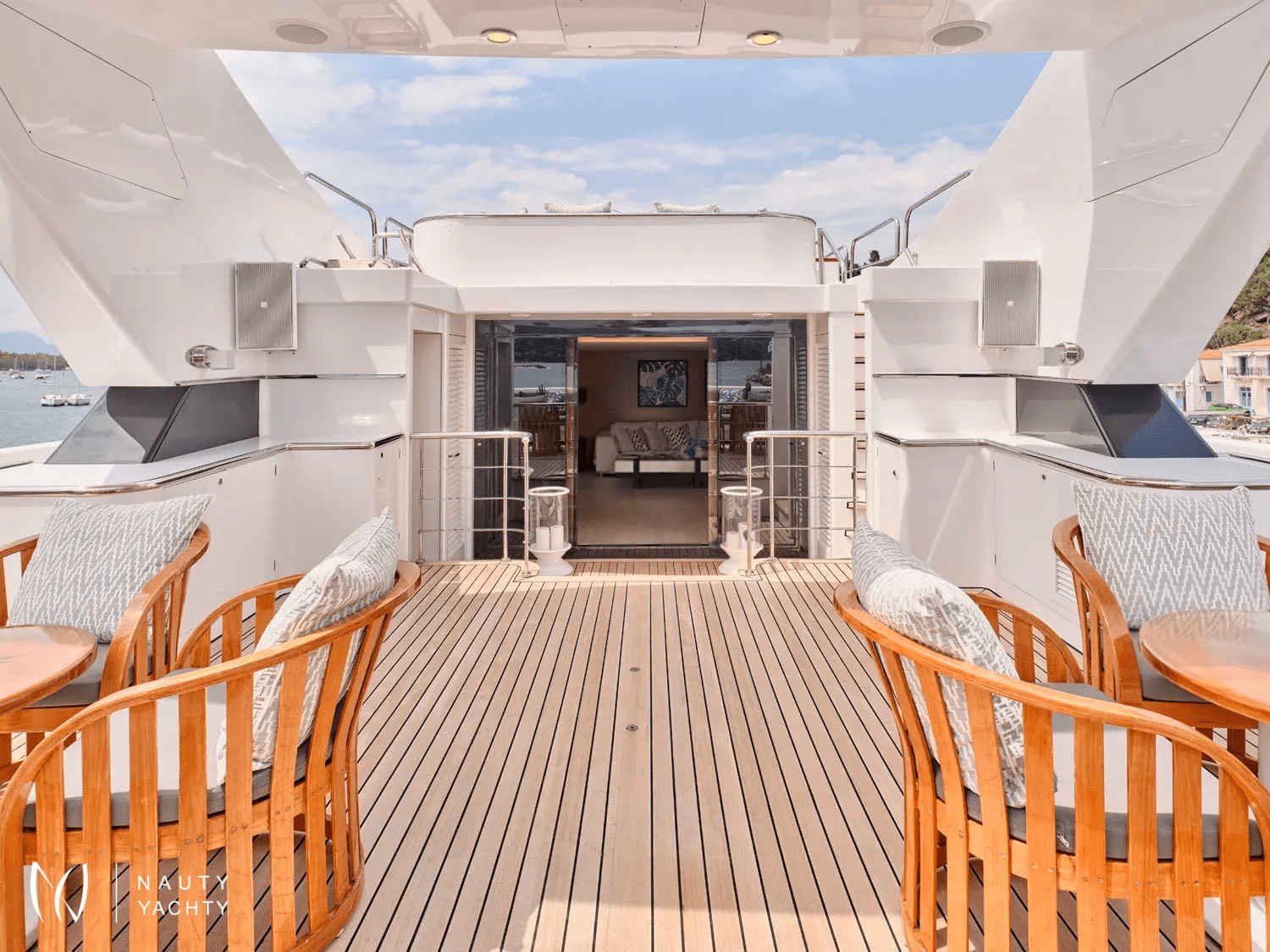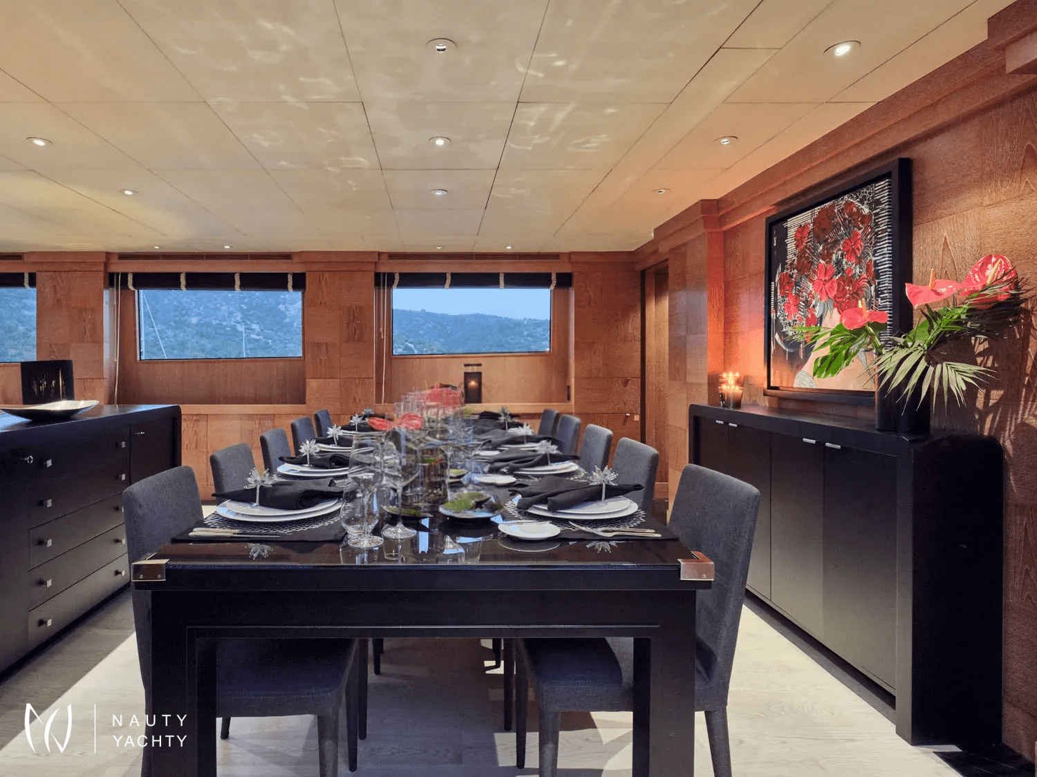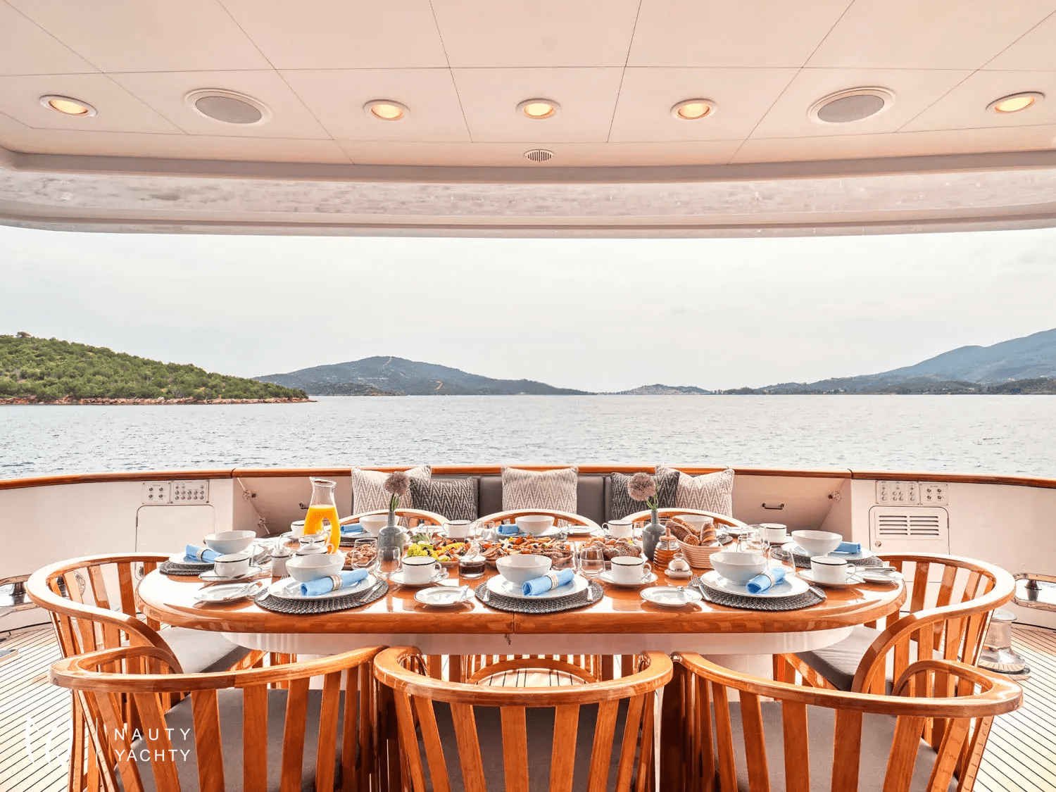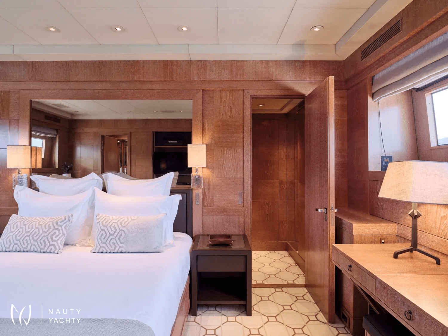 A sleek, modern 140’ Cantieri di Pisa, Element underwent a refit in 2022 with the addition of teak interior floors. She is in mint condition, with a fantastic crew of 9 ensuring guests always have a memorable time onboard. Displaying elegance and exquisite taste, with an Eastern flair, she sleeps up to 12 guests in 6 striking staterooms – two of which are Master Suites. One Master Suite features an identical his and hers bathroom, an office, a cozy sofa, and a walk-in wardrobe whilst the other features a luxurious spa pool bath and spacious lounge area. Her interior features a modern design with large windows giving plenty of natural light and a bright ambiance. With her earth tones and natural textures, Element will surely put you in your element, with the utmost unrivaled comfort and top-notch service. Element provides an excellent charter option for exploring the Mediterranean!