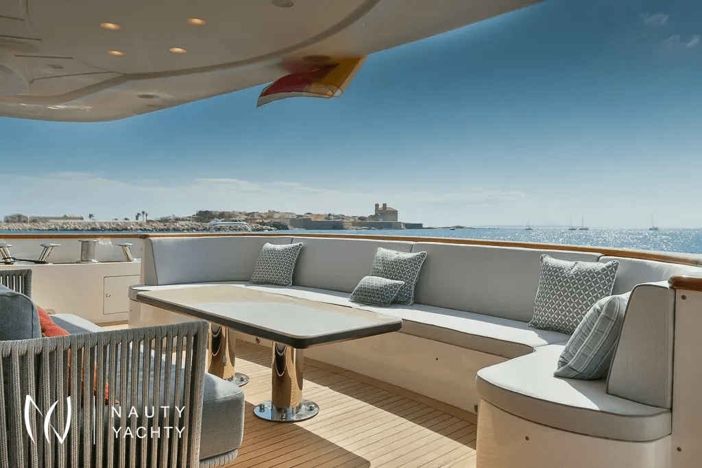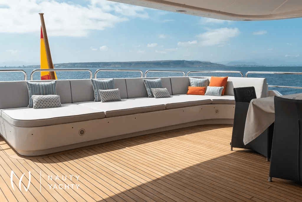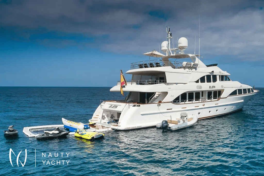 The 36.6-metre tri-deck, semi-custom motor yacht Elena Nueve is a Benetti classic, built by the Italian shipyard in 2007. She underwent an extensive interior refit in 2018, and is one of the few charter yachts in her size category to hold a Spanish charter licence.A stylish and family-friendly choice, Elena Nueve features a stylish and comfortable interior and versatile exterior deck spaces with a Jacuzzi, BBQ and plenty of space to sunbathe.Elena Nueve’s cosy and comfortable interior is ideal for relaxation and escaping the sunshine. She features a stylish and comfortable air-conditioned interior, characterised by light upholstery, neutral tones and the harmonious use of dark wood across her flooring and furnishings. Large, floor-to-ceiling windows line much of Elena Nueve’s interior, offering panoramic views of the cruising ground.Elena Nueve accommodates up to 12 guests across five sumptuous ensuite cabins, comprised of a full-beam master suite on her main deck, and on the lower deck two double and two twin cabins. Each cabin on the lower deck features an additional Pullman bed, offering versatile sleeping arrangements for guests.Elena Nueve’s exterior layout features three large multi-use deck spaces. A dining area is positioned on her main deck to allow for al-fresco dining. Her extended flybridge is home to a bar and Jacuzzi, as well as a barbecue and sun loungers.Guests can enjoy Elena Nueve’s impressive selection of water toys, including jet skis and an inflatable jellyfish pool.