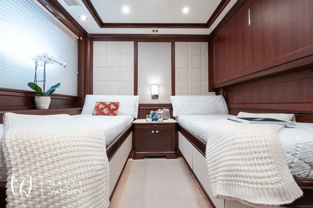 Flexible accommodation layout with 5 cabins, sleeping up to 12 guests, including pullman berths