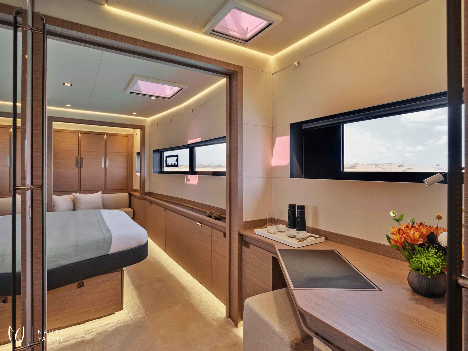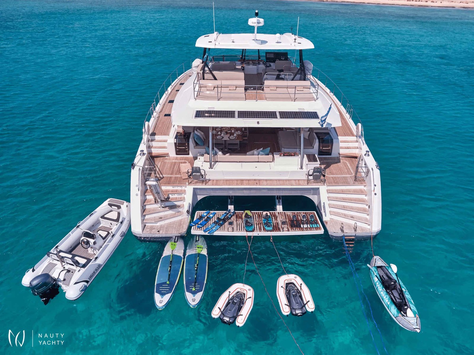 M/Y ELLY redefines luxury at sea. and is recognized for their elegance and performance.M/Y ELLY is perfect for lengthy trips, cruises, or hosting guests. She has 2 x 550 hp engine and 4000 litres of fuel give it a range of 1700 nautical miles.Elegant and inventive, M/Y ELLY offers a state-of-the-art living environment. This luxury power catamaran's rounded, asymmetrical lines exude courage. Its volumes are cleverly designed and large. Enjoy the 36m2 cockpit and lounge.Sunbathing places, a griddle-equipped kitchen, and a large lobby. Dream of the unachievable on the 32 m2 Flybridge or relax in the front lounge jacuzzi.M/Y ELLY is spectacular because to its sophisticated and private 5-star lounge, and beautiful interior offers an endless perspective.Her owner's suite offers a 22-m2 private apartment is fitted with a huge dressing room and an Italian-style bathroom with an Italian-style bathroom with two finely designed washbasins to give all the distinction you can imagine to your outings at sea.* 1st Place Diamond Category, CYBA Designer Water Competition, EMMYS 2024