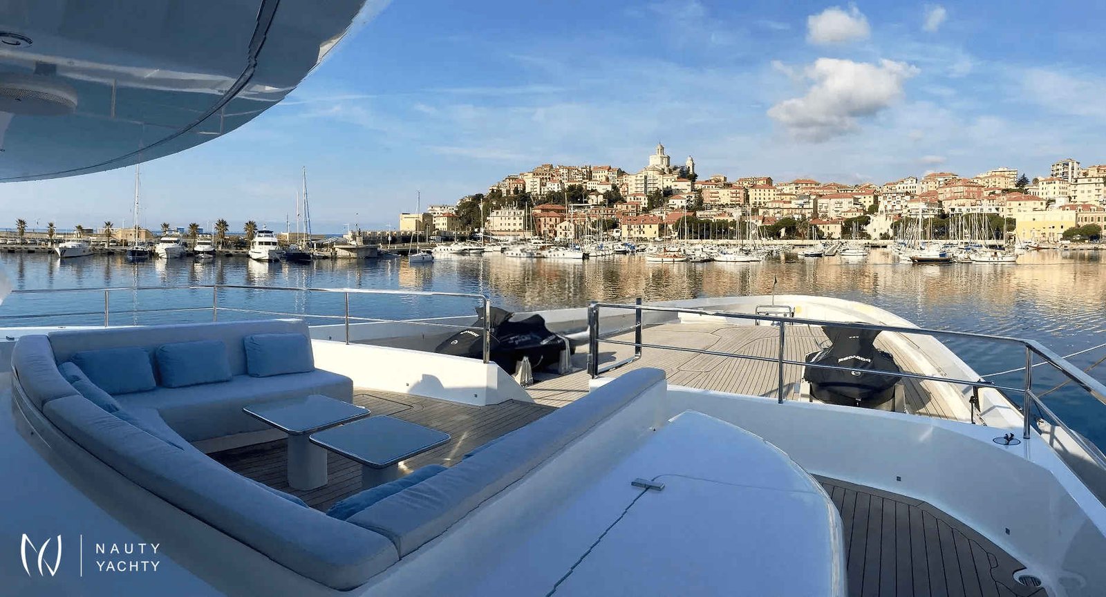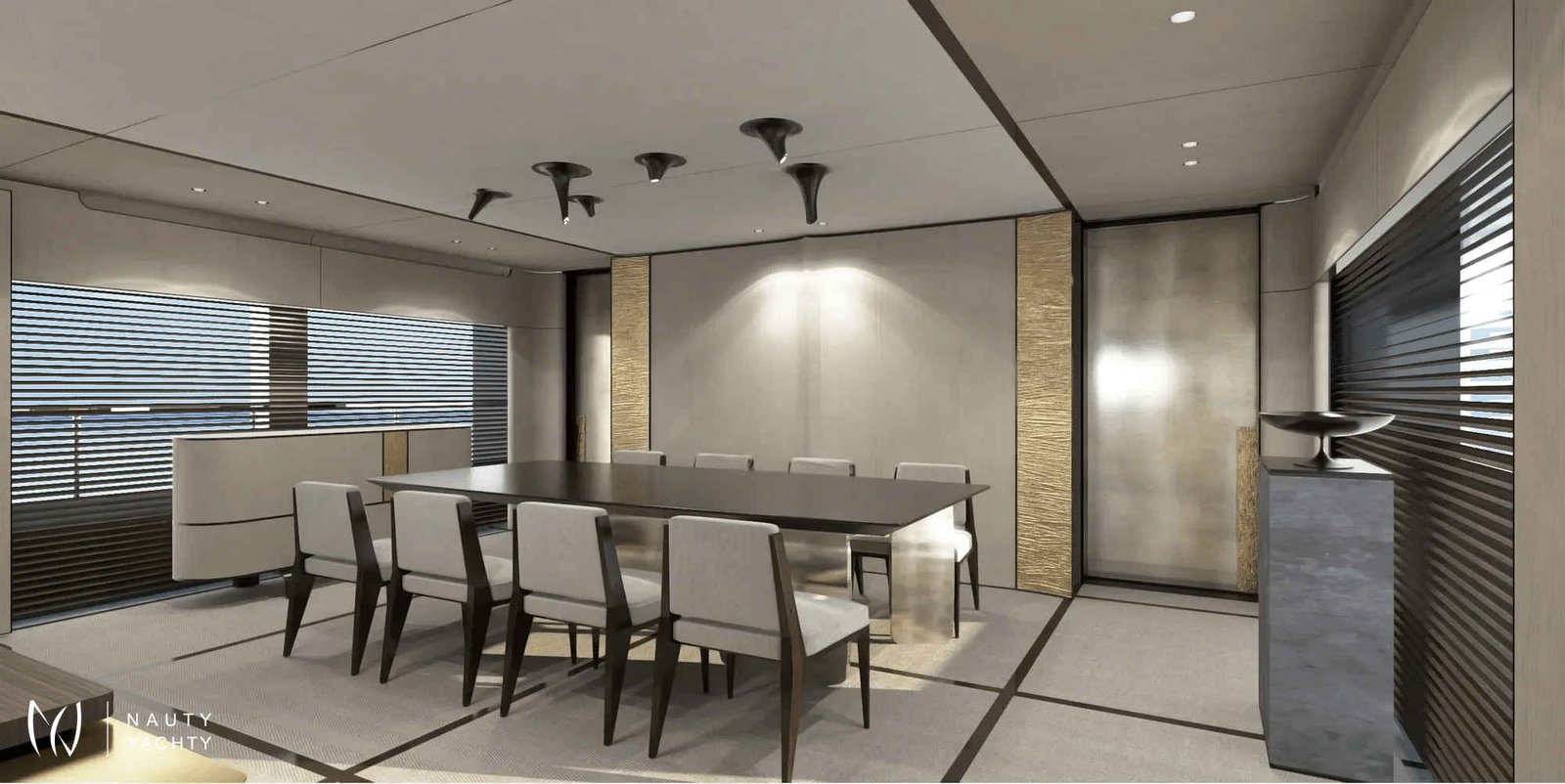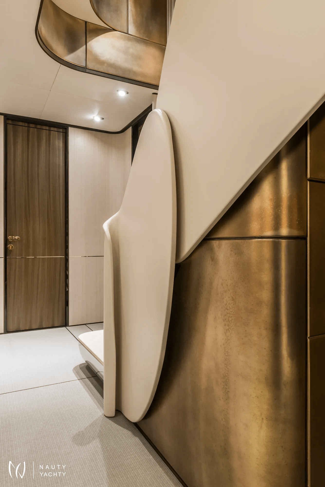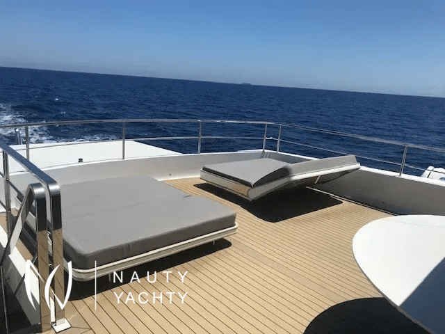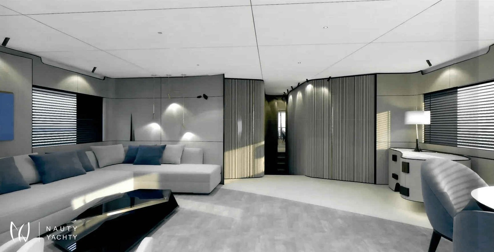 Generous full-beam Owner’s suite located on the main deck, featuring a private balcony and a huge walk-in shower.