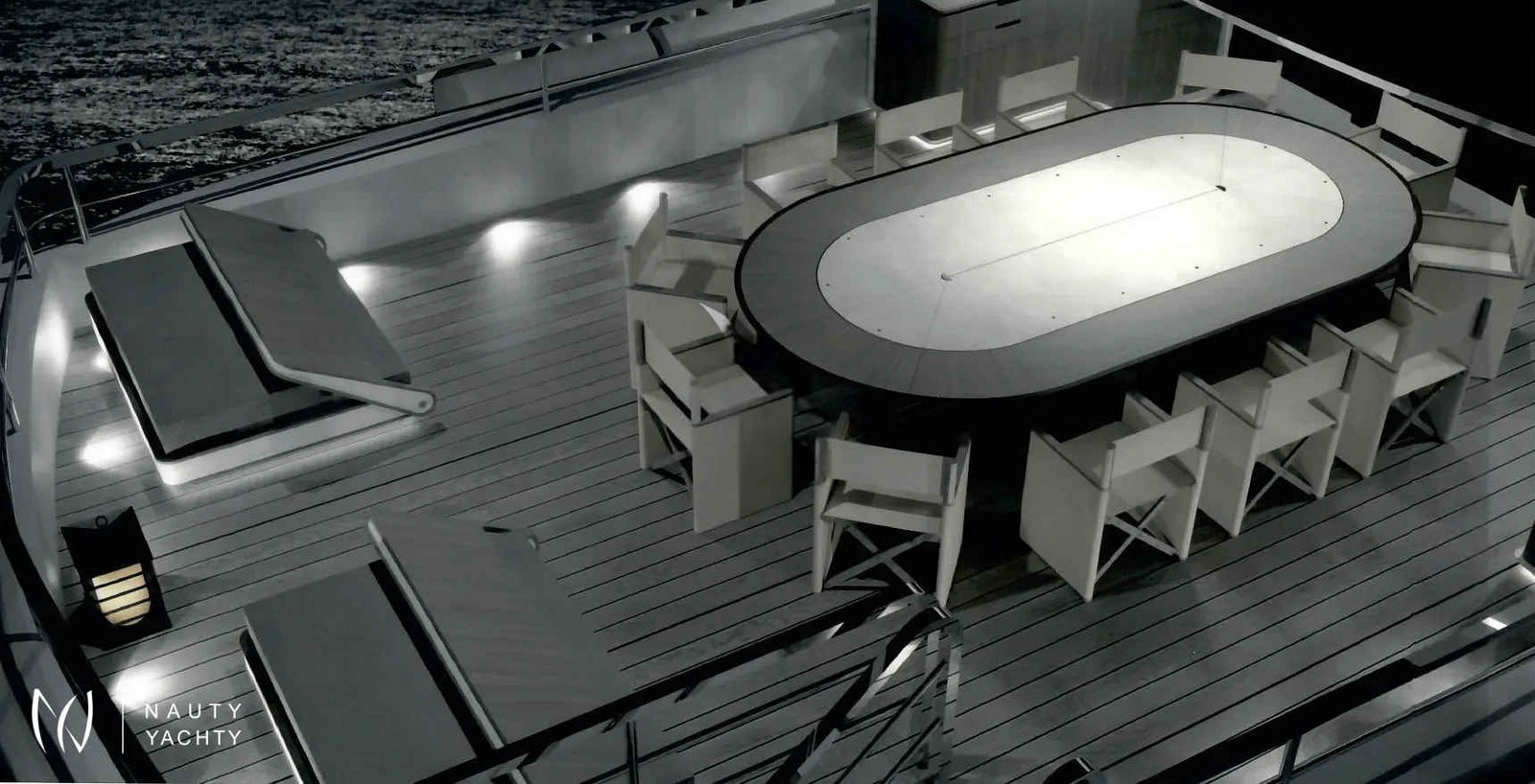 Generators: 2 x Caterpillar ACERT C32 952 kW, 3 x Caterpillar ACERT C4.4 80 kW Fuel consumption of generators is 40 l/hour Thrusters: 2 x Rolls Royce US105 P9 CRP 2 x CMC Stabilis Electra Zero Speed Stabilizer Yacht is equipped with a Dynamiq Positioning System keeping always the same position