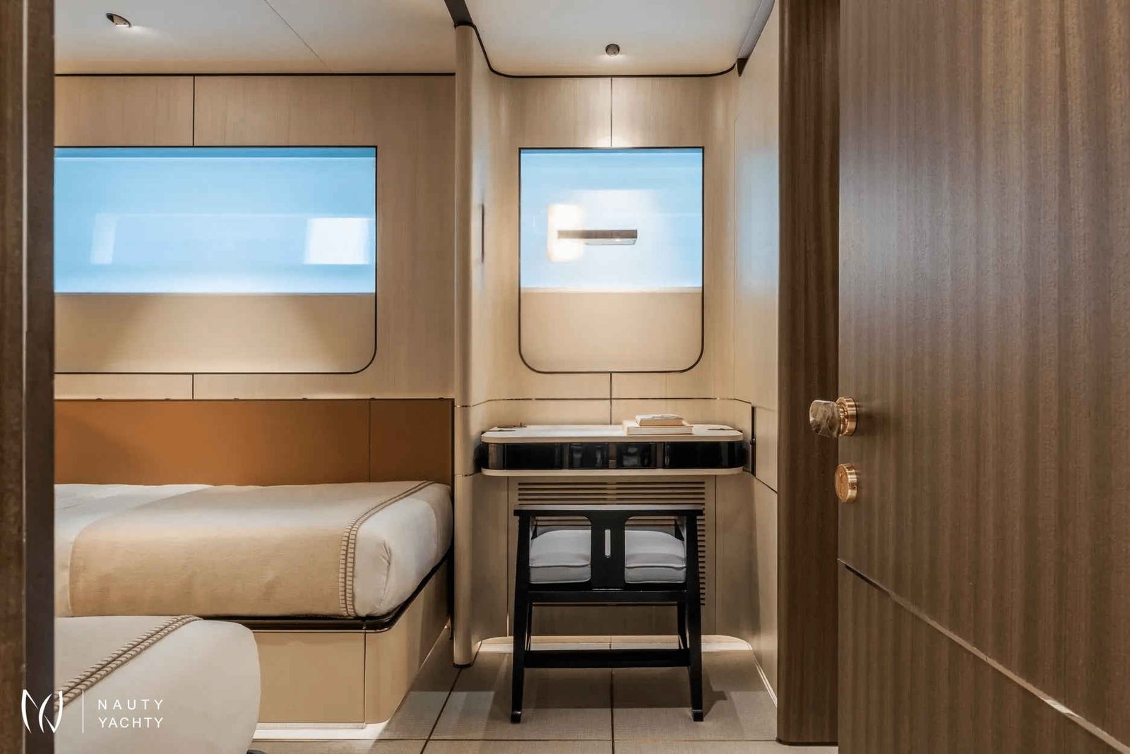 VIP suite with private saloon, convertible into 2 double staterooms.
