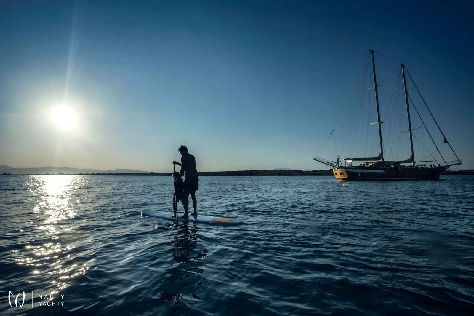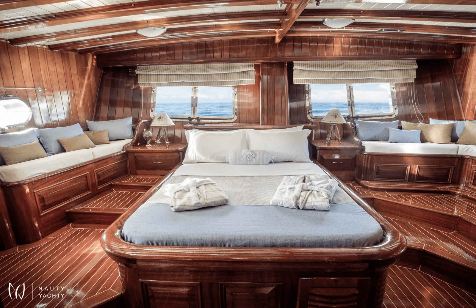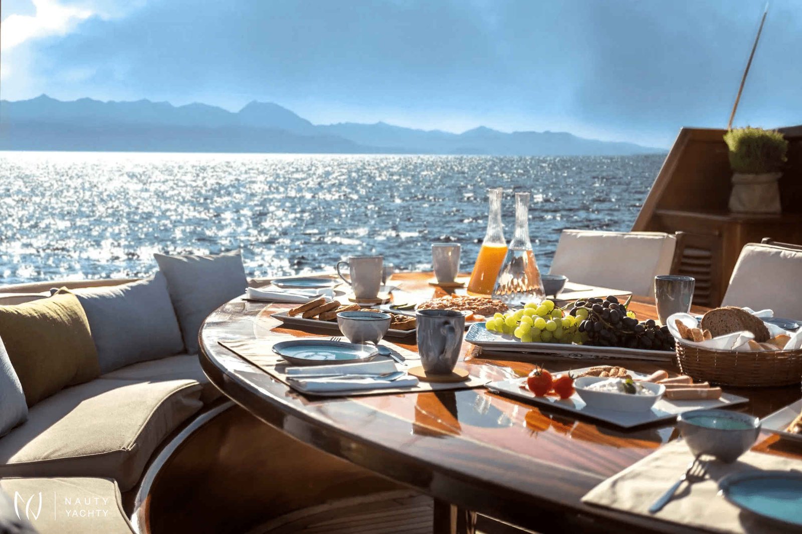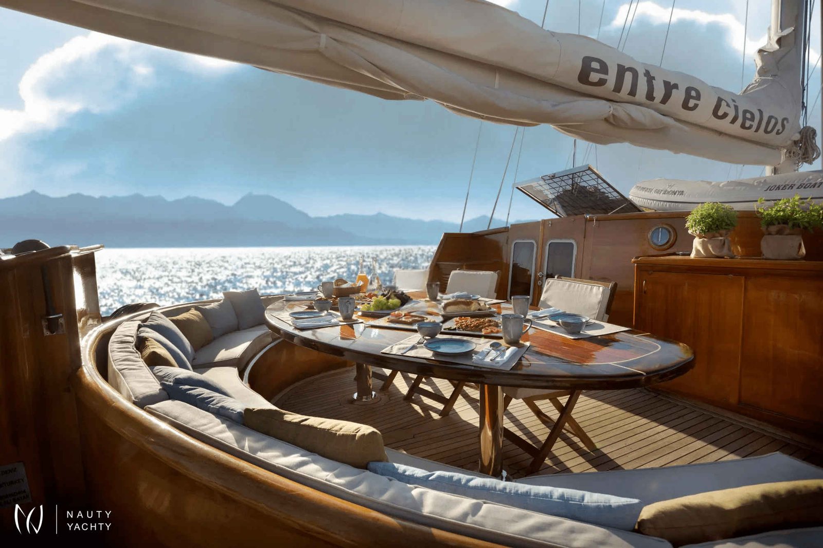Imagine exploring the Greek islands on a private, floating five-room boutique hotel. This is no maritime dream: You’re cruising the Mediterranean on S/Y Entre Cielos, discovering local cultures, sharing sunsets with friends, unwinding — living your life to the fullest. From Plato to Socrates, S/Y Entre Cielos’ five luxurious, air-conditioned cabins honor Greece’s most celebrated philosophers. Right down to their finest works – close at hand to skim or study. The S/Y Entre Cielos features five cabins for up to 12 guests, each named after a Greek philosopher. You’ll find the books they wrote waiting in your cabin to peruse at your leisure. Who knows? Maybe after your maritime vacation, you’ll be quoting Greek philosophy while recounting your discoveries ashore.