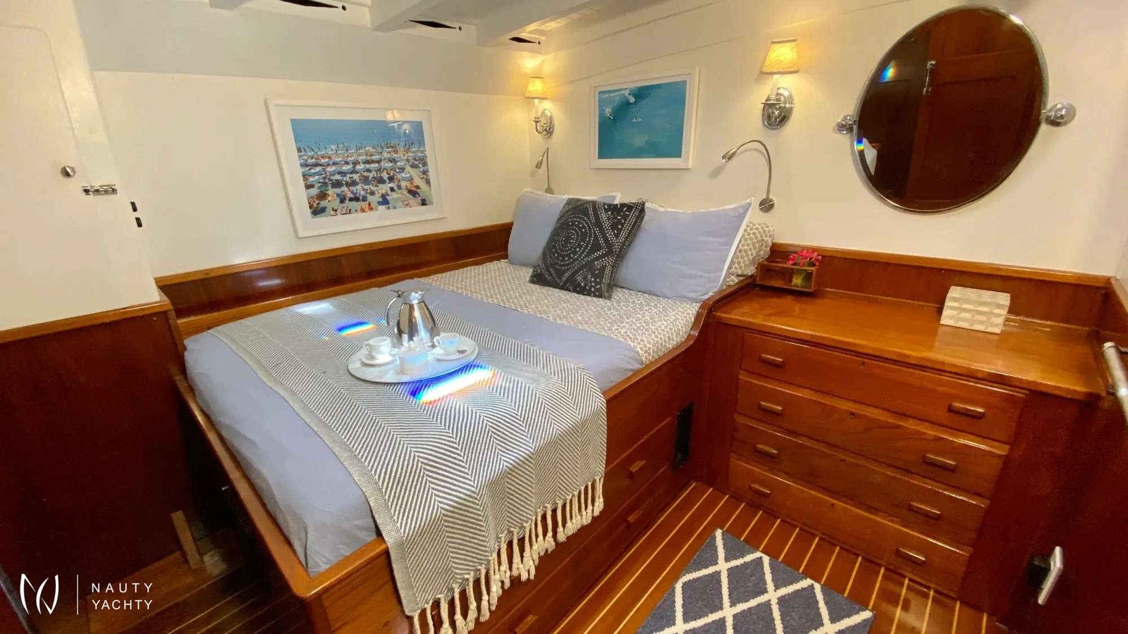 The EROS experience will truly be a vacation for your family’s history books.Recently refurbished, Eros offers a fresh contemporary take on the classic yacht experience and is immaculately presented throughout. She is a wonderful yacht for family escapes to re-connect with nature, or groups of friends looking for an adventure of a lifetime. A luxury yacht with soul.Guests find Eros to be just the right size for parties of 8-10. She’s small enough that you can be all together when you want to be, and big enough that you can find a quiet spot to escape with a good book. Above and below deck she has wonderful spaces to enjoy for dining, relaxing, and getting together with friends and family.AccommodationsRecently refurbished in 2019 - 'EROS' comfortably accommodates up to eight guests in four smartly furnished guest cabins including; 1 ensuite Queen, 1 VIP ensuite double, and 2 twins with a shared bathroom. Each air-conditioned room is handsomely appointed with original teak paneling, tasteful artwork, ample storage to unpack your belongings, and all the bedside conveniences of home. Hatches provide natural light as well as the option for fresh sea air in your cabin as you snooze after a wonderful day.Toys and equipmentShe comes well equipped for fun and relaxation when at anchor offering a BBQ, Hammocks, Water-skis, Wake Board, 2 person Kayak, Floating Mats, Snorkeling Gear, 2 Paddle Boards, Deep Sea Fishing Gear, and a New Yamaha Underwater Toy.Your CrewEros' wonderful experienced crew are on hand to cater for all your charter needs and together offer an exhilarating experience for the family history books. Your crew will take you to the most idyllic anchorages, serve up culinary delights, and ensure that you connect with what’s most important to you. Whether it is adventure or relaxation. Whatever your wellness needs.Time after time, EROS guests tell us... ‘We’ll never consider sailing any other way.’