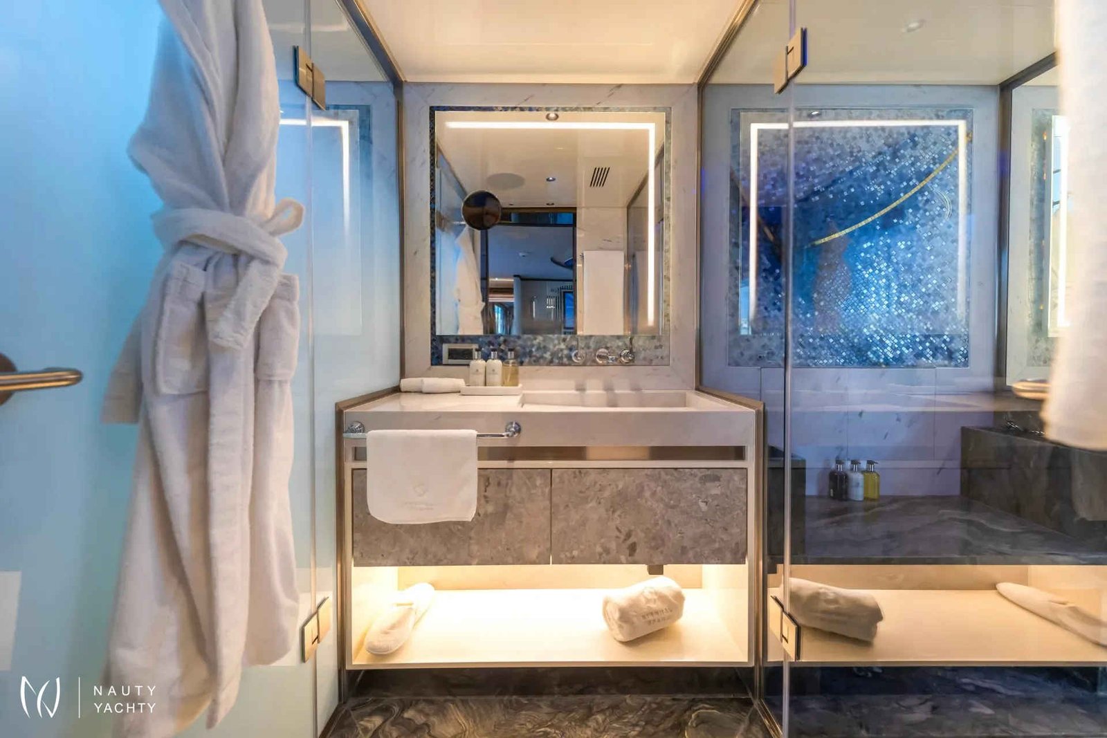 Generator Engines: 3x CAT C4.4 86Kw Fuel consumption at cruising speed: 260 + 20 generators: 280 L/H Stabilisers underway, Stabilisers at anchor.