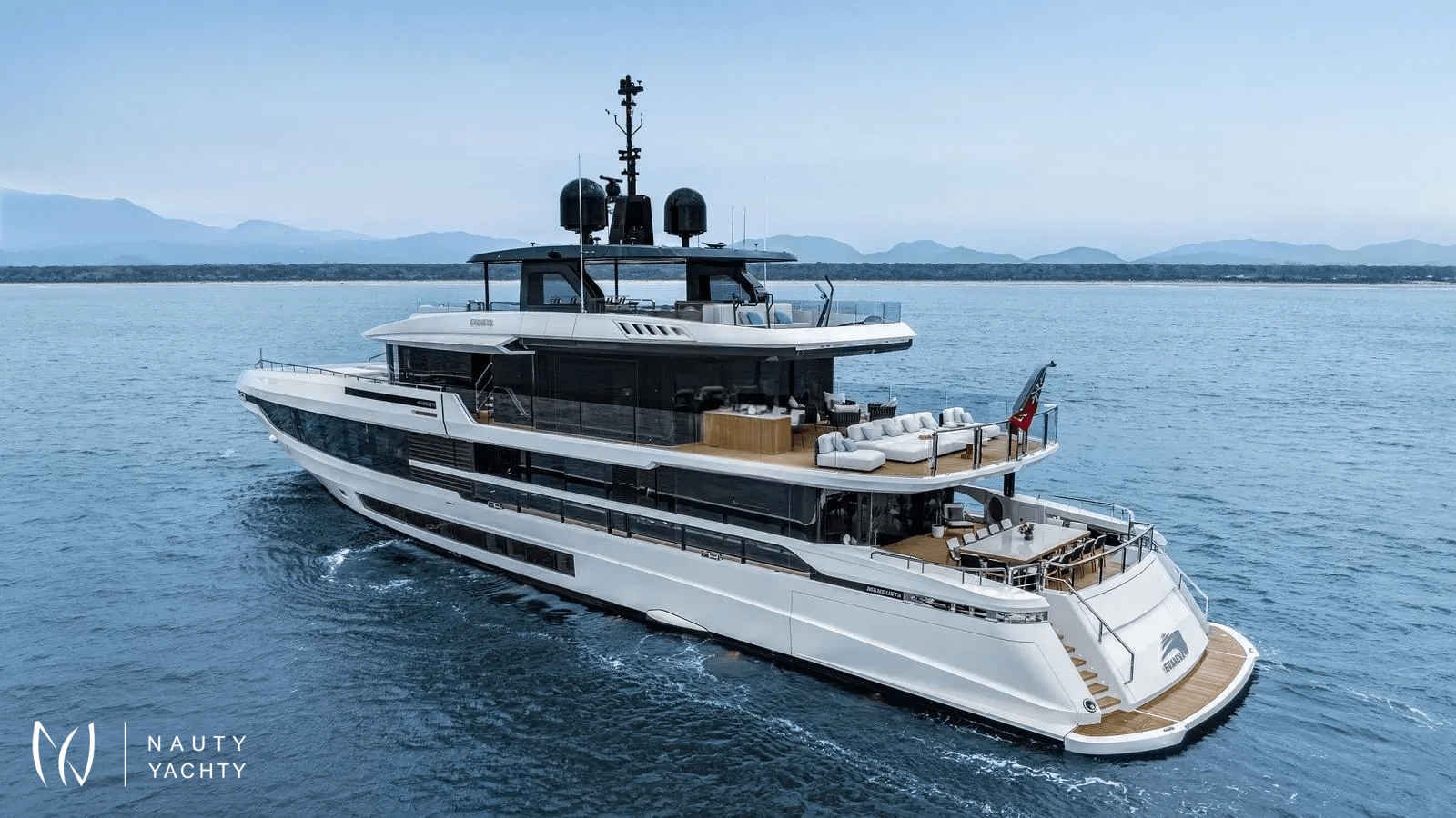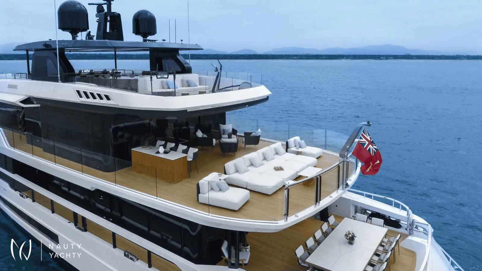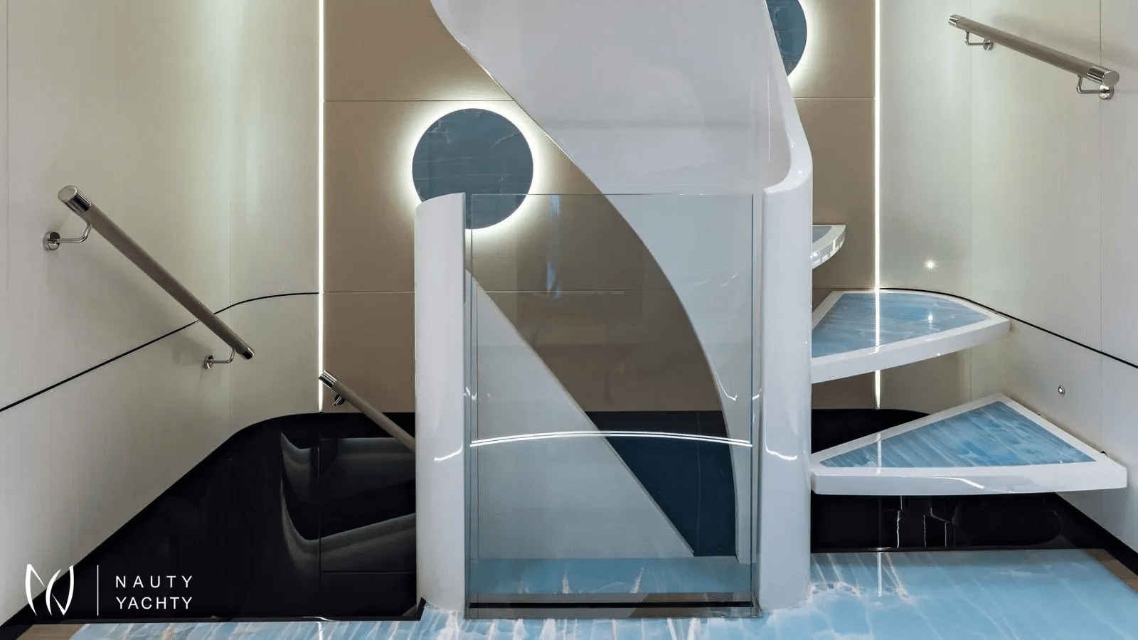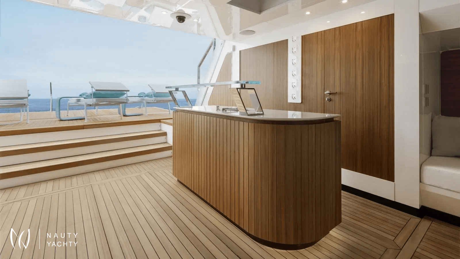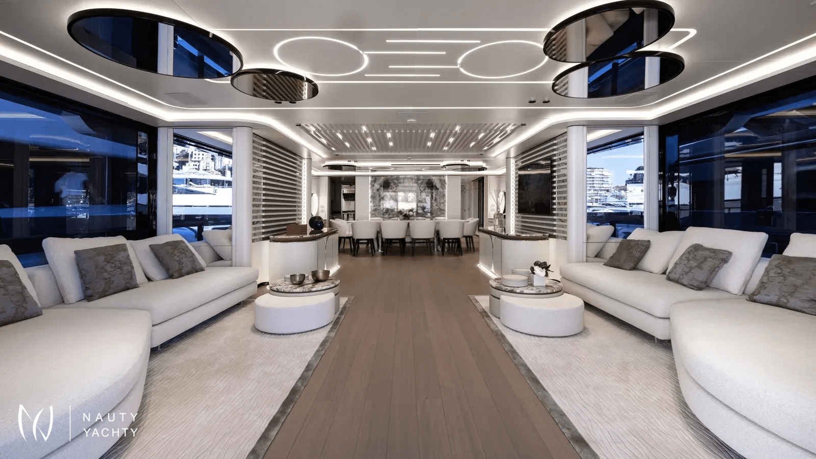 EVA4EVA offers a sophisticated blend of modern design and comfort, featuring a contemporary interior characterized by extensive use of glass surfaces that create expansive, light-filled spaces. The yacht's modern and elegant exterior harmonizes with the natural light that floods the interior, highlighting the yacht's large volumes and sleek lines.Accommodating up to 12 guests across six cabins, the yacht ensures a premium experience for every guest. The primary suite on the bridge deck boasts exclusive access to a private outside area, while another primary suite on the main deck features a fold-down balcony. With a dedicated crew of nine on hand to cater to every whim, time on board EVA4EVA promises luxurious comforts with exceptional service.Expansive exterior decks offer ample space for both relaxation and entertainment. At the bow, a large pool invites guests to unwind under the sun, while the sundeck's Jacuzzi provides a perfect spot for soaking in breathtaking views. The yacht’s beach club is a true sanctuary, complete with a hammam and direct access to the sea for refreshing dips. Finally, fitness enthusiasts will appreciate the extensive list of gym equipment, allowing for uninterrupted wellness routines.A shallow draft allows access to secluded bays and waters that other vessels might not reach. Equipped with zero-speed stabilizers, a smooth and stable experience is ensured, even when at anchor.