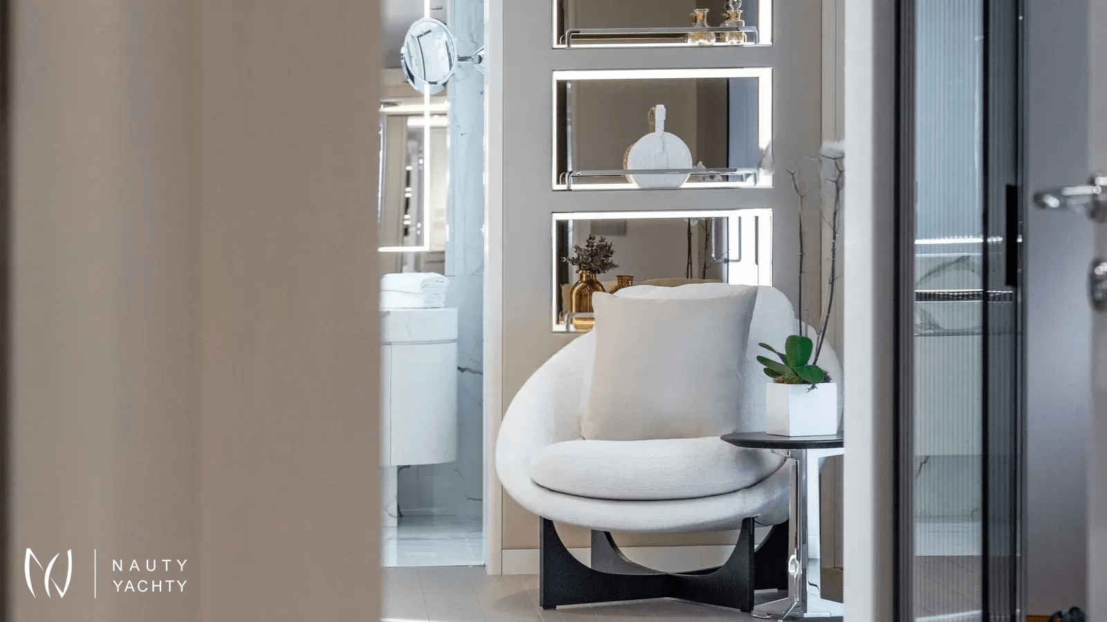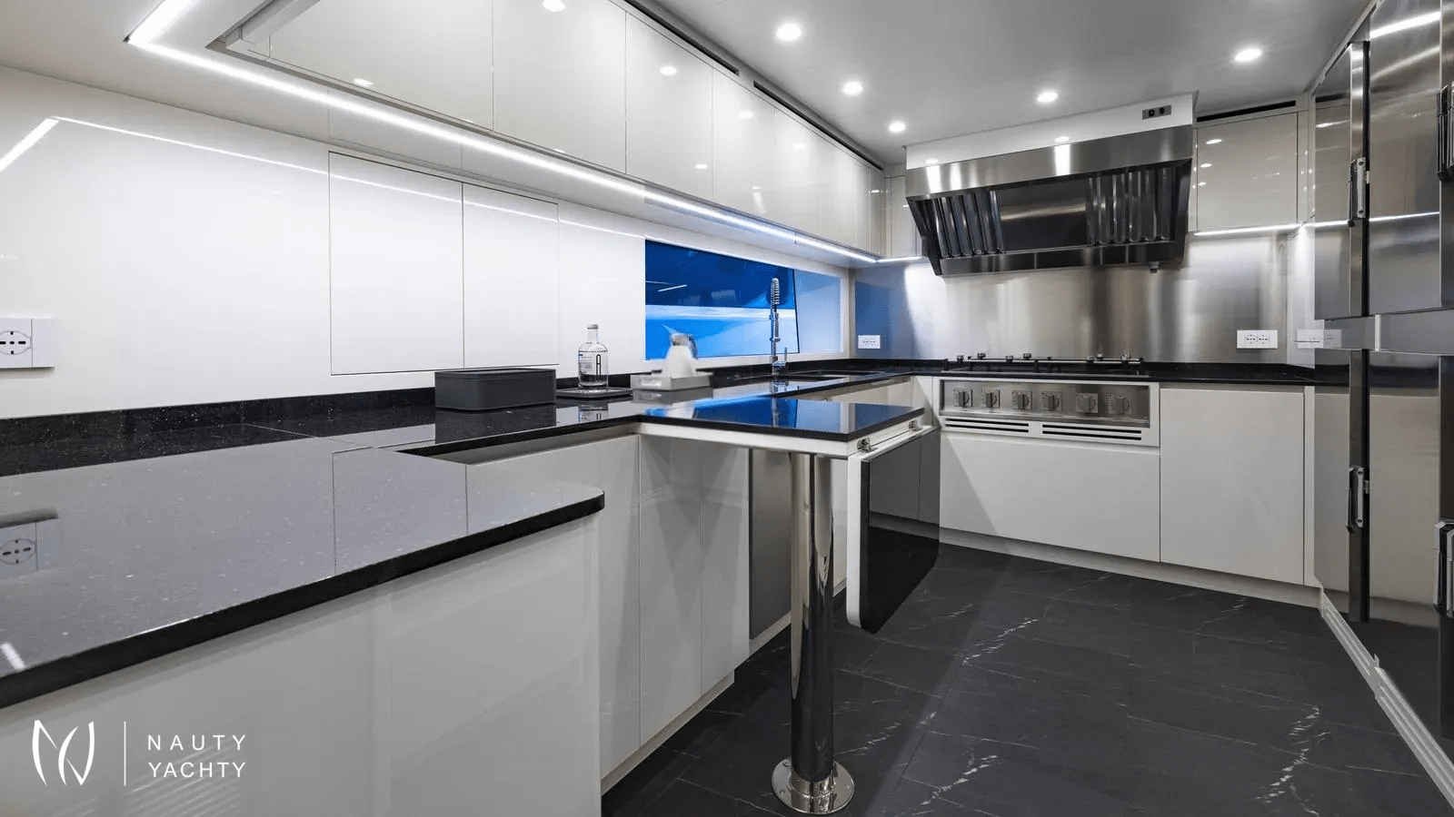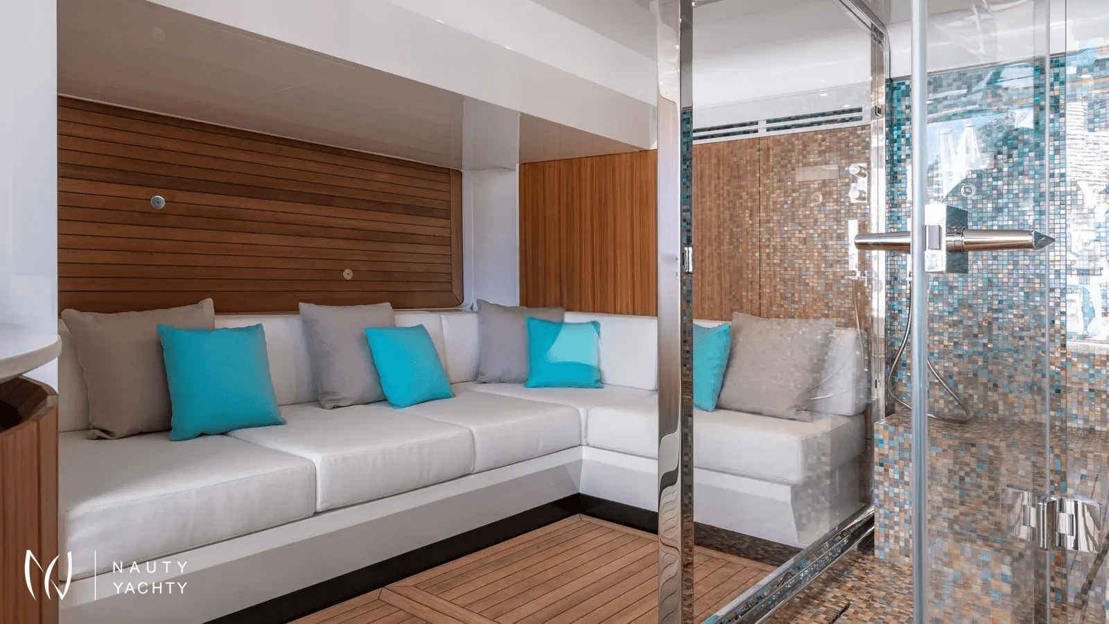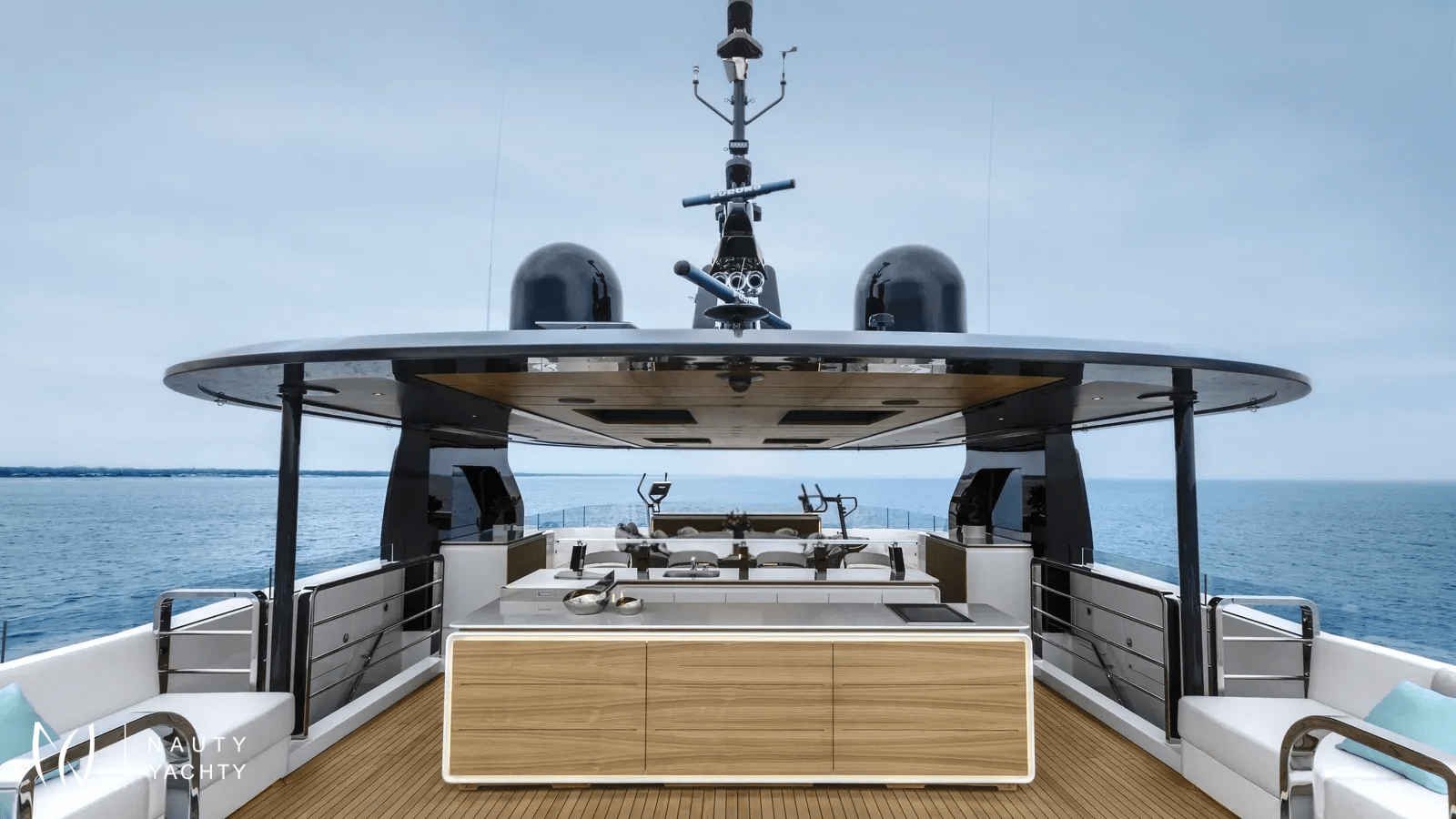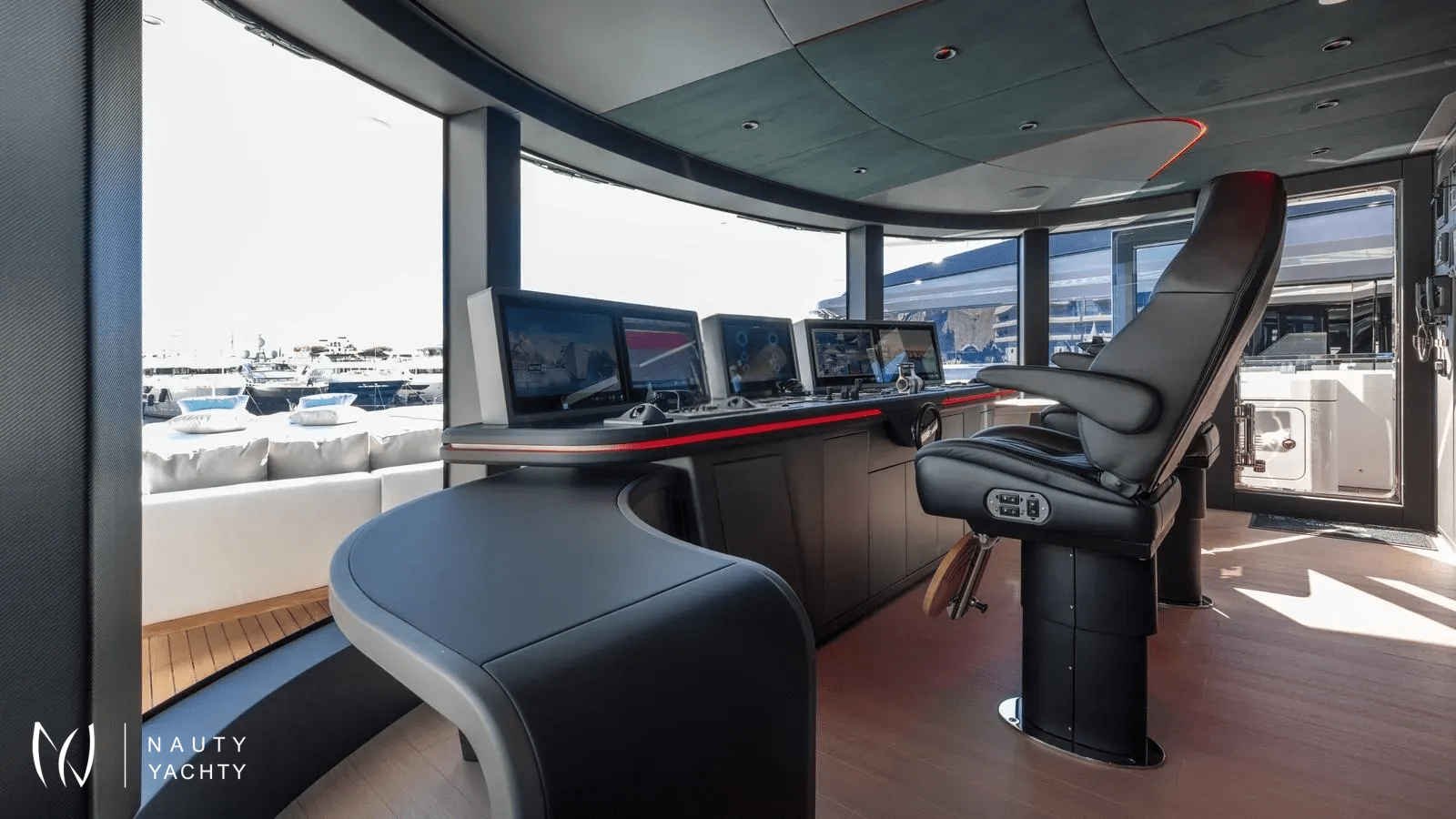 EVA4EVA offers a sophisticated blend of modern design and comfort, featuring a contemporary interior characterized by extensive use of glass surfaces that create expansive, light-filled spaces. The yacht's modern and elegant exterior harmonizes with the natural light that floods the interior, highlighting the yacht's large volumes and sleek lines.Accommodating up to 12 guests across six cabins, the yacht ensures a premium experience for every guest. The primary suite on the bridge deck boasts exclusive access to a private outside area, while another primary suite on the main deck features a fold-down balcony. With a dedicated crew of nine on hand to cater to every whim, time on board EVA4EVA promises luxurious comforts with exceptional service.Expansive exterior decks offer ample space for both relaxation and entertainment. At the bow, a large pool invites guests to unwind under the sun, while the sundeck's Jacuzzi provides a perfect spot for soaking in breathtaking views. The yacht’s beach club is a true sanctuary, complete with a hammam and direct access to the sea for refreshing dips. Finally, fitness enthusiasts will appreciate the extensive list of gym equipment, allowing for uninterrupted wellness routines.A shallow draft allows access to secluded bays and waters that other vessels might not reach. Equipped with zero-speed stabilizers, a smooth and stable experience is ensured, even when at anchor.