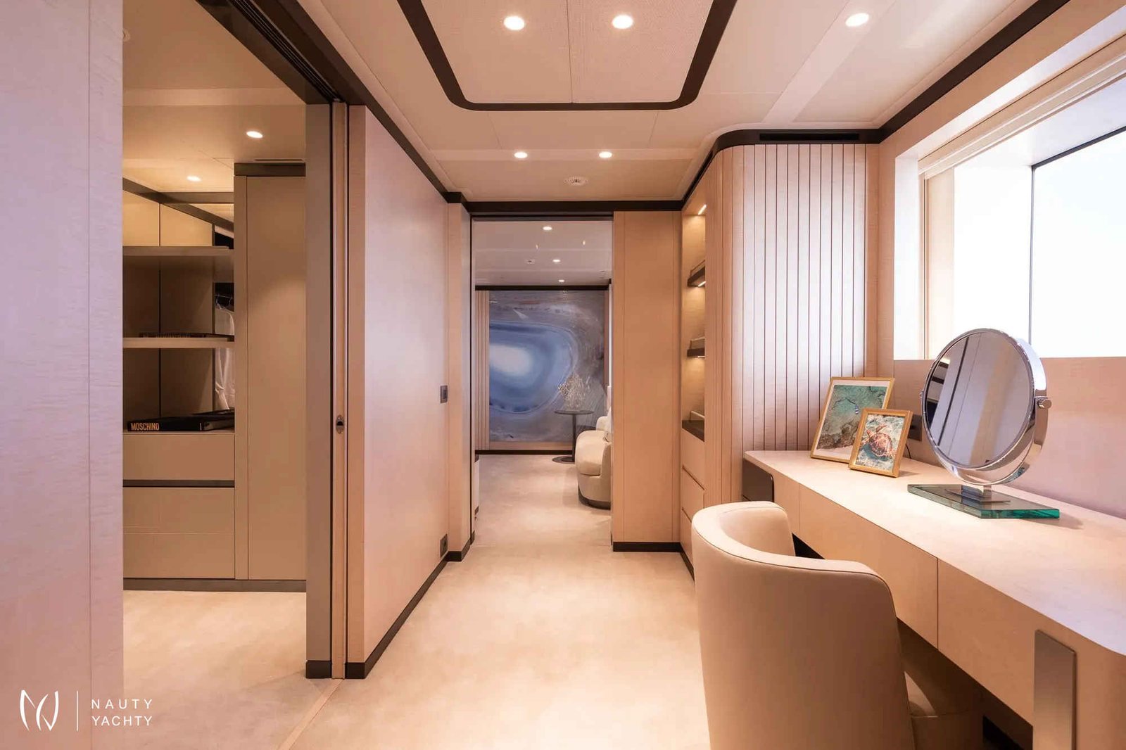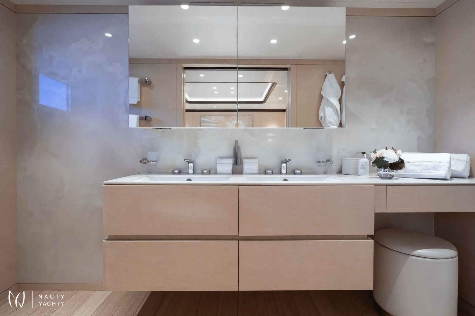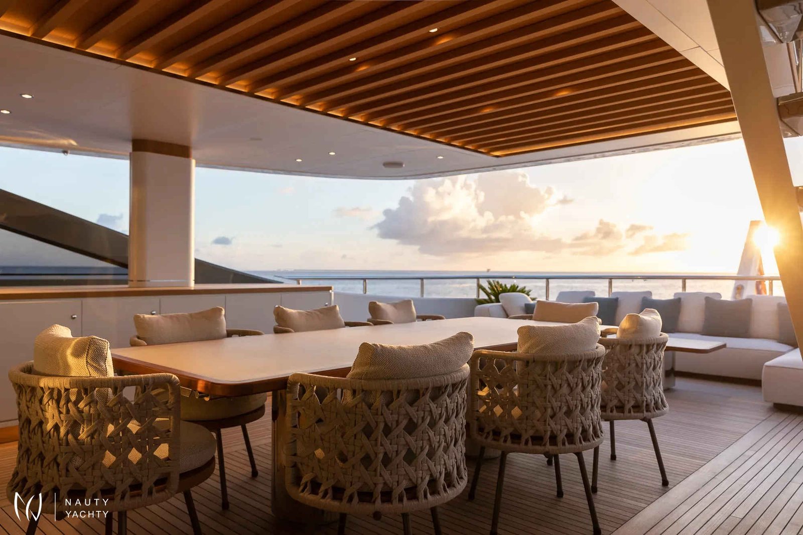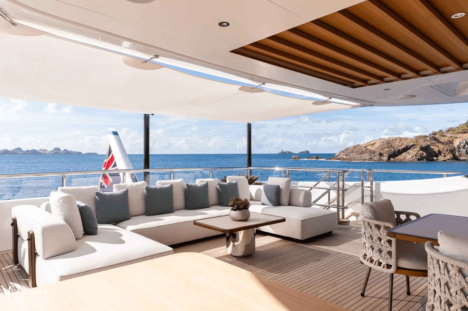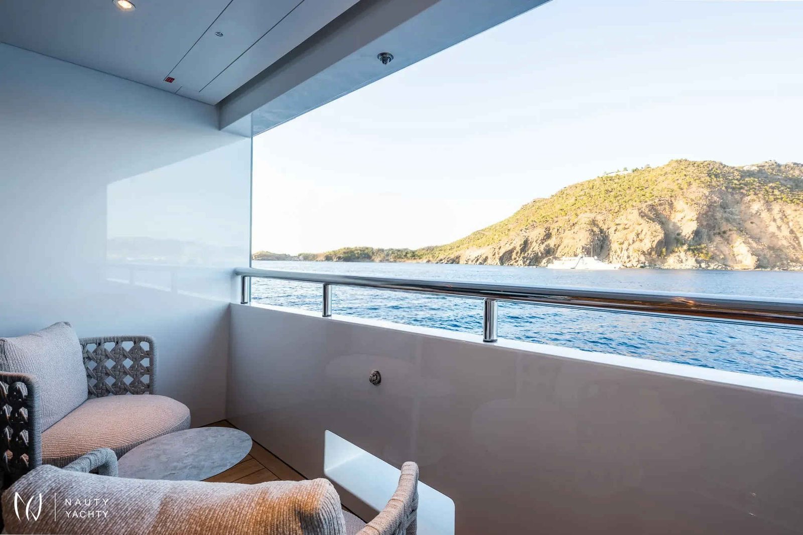 Launched in 2023, the brand new Benetti B.Now 50 MINE GAMES sports a streamlined profile with large windows and continuous decks to offer unbroken visual contact with the water from bow to stern.Designed by RWD to maximise the outdoor spaces, she features a main deck panoramic pool lounge area and a 36 sq m aft beach club with large infinity pool, "sea saloon" and fully-fledged hammam.The primary alfresco dining space on board is on the upper deck aft, where lies a rectangular table along with more lounging space – perfect for enjoying late-night drinks in comfort.To sunbathe, exercise and relax, her spacious Sundeck offers in addition a fully equipped bar with lounge area and a jacuzzi with sunpads.Accommodating 10 guests across 5 bright cabins, including a full beam Owner’s suite with private balcony, MINE GAMES offers an additional single cabin with small double bed on the upper deck to starboard, suitable for one extra staff only.MINE GAMES will satisfy guests with the distinctive lines, noiseless performance and 10 professional crew to ensure the highest level of service.