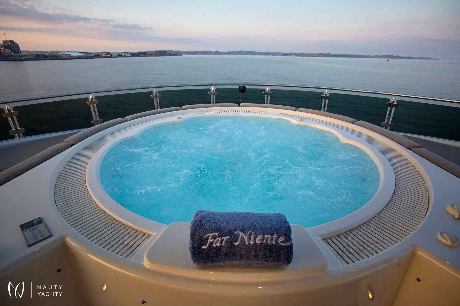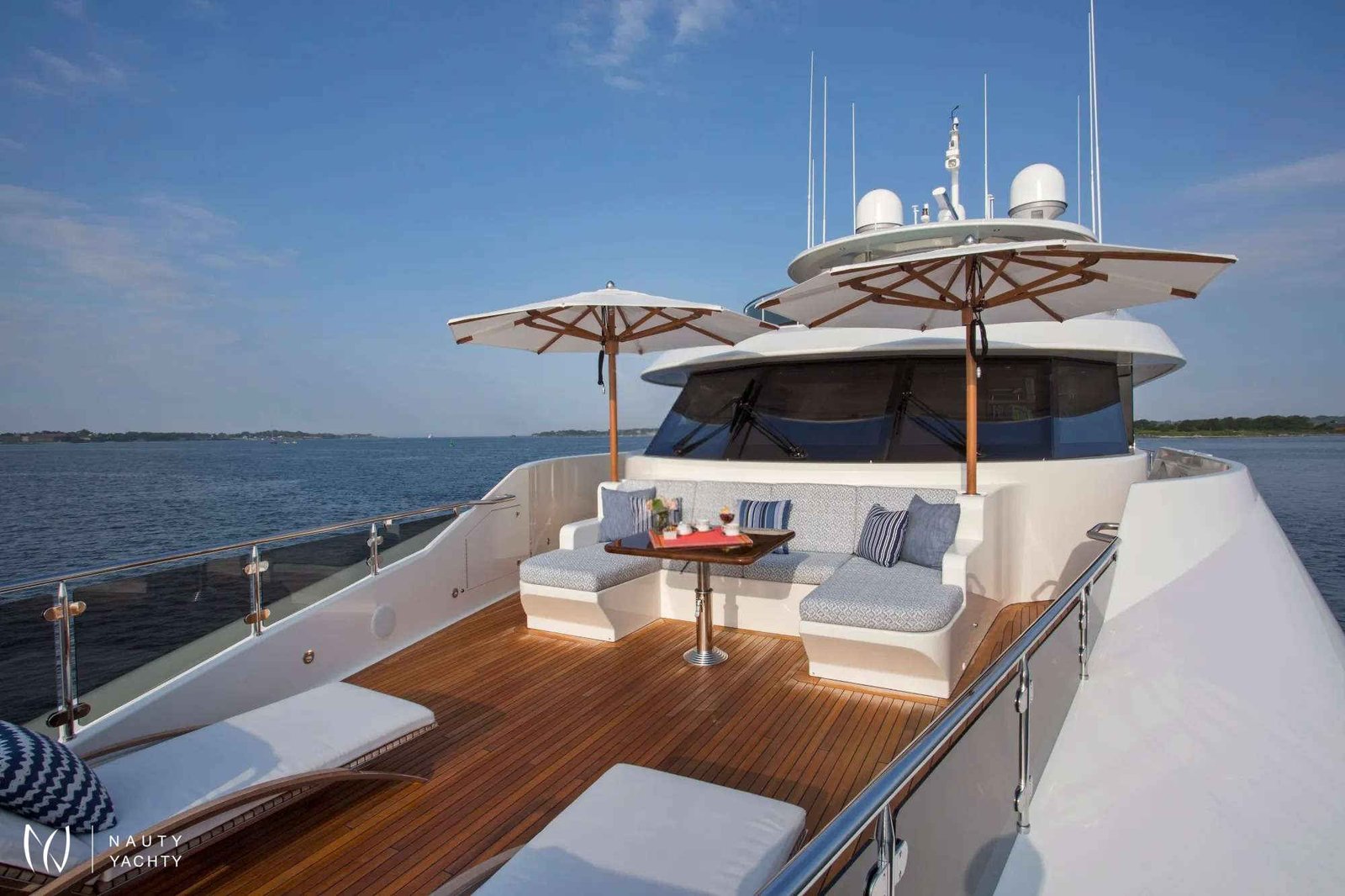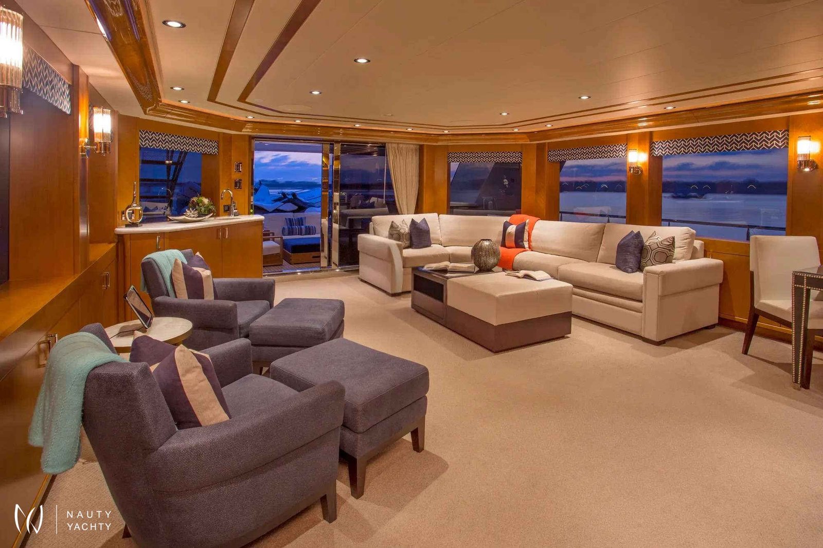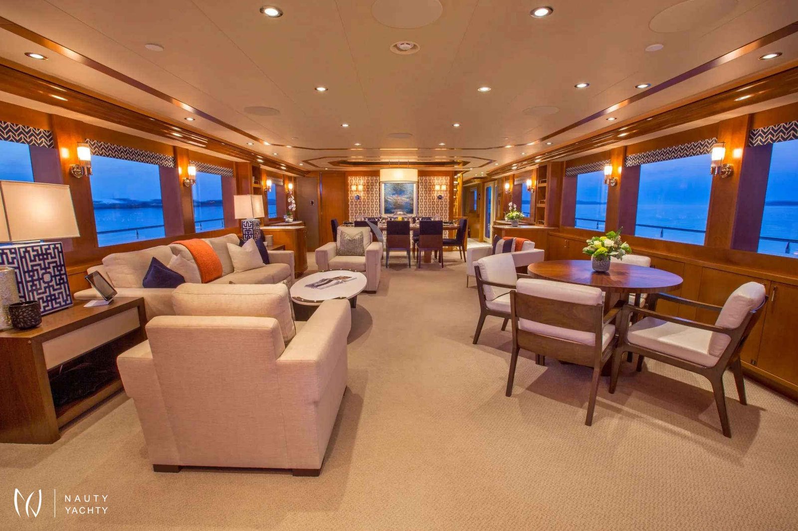 Master Stateroom: Main Deck, forward: Centerline king bed facing aft with two nightstands, dresser, vanity with mirror, safe, and his-and her-walk-in closets. The ensuite features a private head and bidet locker, a spacious shower, and twin sinks. Entertainment center with 42” Blu-ray TV, DVD/CD, iPod dock, and surround sound. There is a study adjacent to the Master Stateroom.VIP Stateroom (1): Midships, lower deck to port: Centerline king bed with two night stands, dresser, safe, and closet. The en-suite features a head and bidet, twin sinks and a shower. The entertainment center has a 32” Blu-ray TV, DVD/CD, iPod dock, and surround sound.VIP Stateroom (2): Midships, lower deck to starboard: Centerline king bed with two night stands, dresser, safe, and closet. The en-suite features a head and bidet, twin sinks and a shower. The entertainment center has a 32” Blu-ray TV, DVD/CD, iPod dock, and surround sound.Twin Guest Stateroom (1): Midships, lower deck to port: Two single beds with night stand, dresser, and closet. The ensuite features a head, sink and a shower. The entertainment center has a 26” Blu-ray TV, DVD/CD, iPod dock, and surround sound.Twin Guest Stateroom (2): Midships, lower deck to starboard: two single beds with night stand, dresser, and closet. The ensuite features a head, sink and a shower. The entertainment center has a 26” Blu-ray TV, DVD/CD, iPod dock, and surround sound.One of the twin guest staterooms has the option to covert to a 4th King Guest Stateroom.