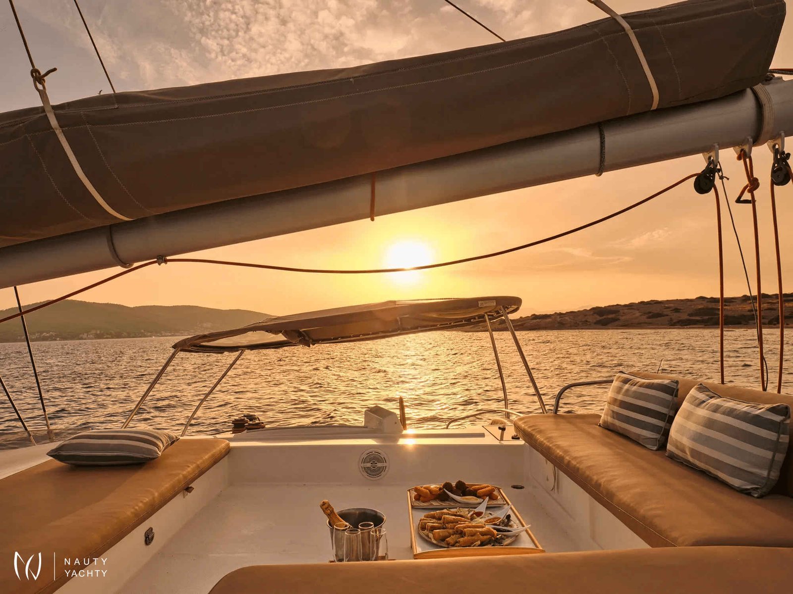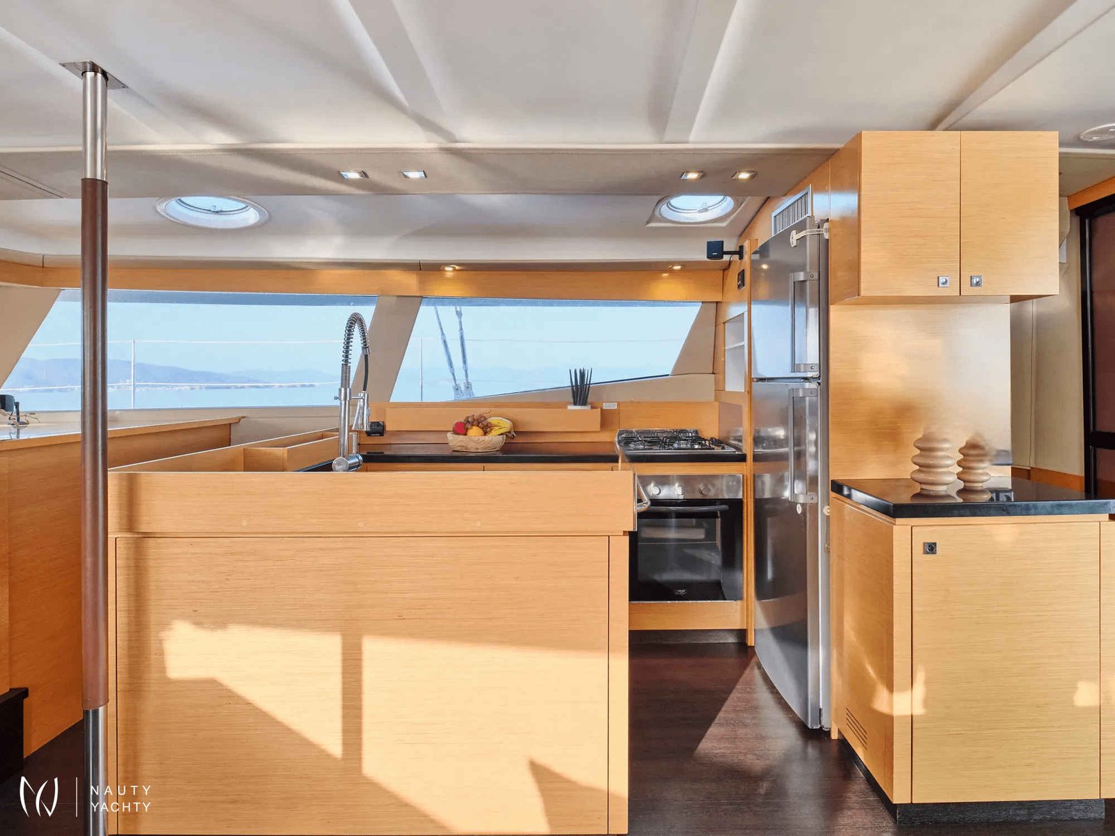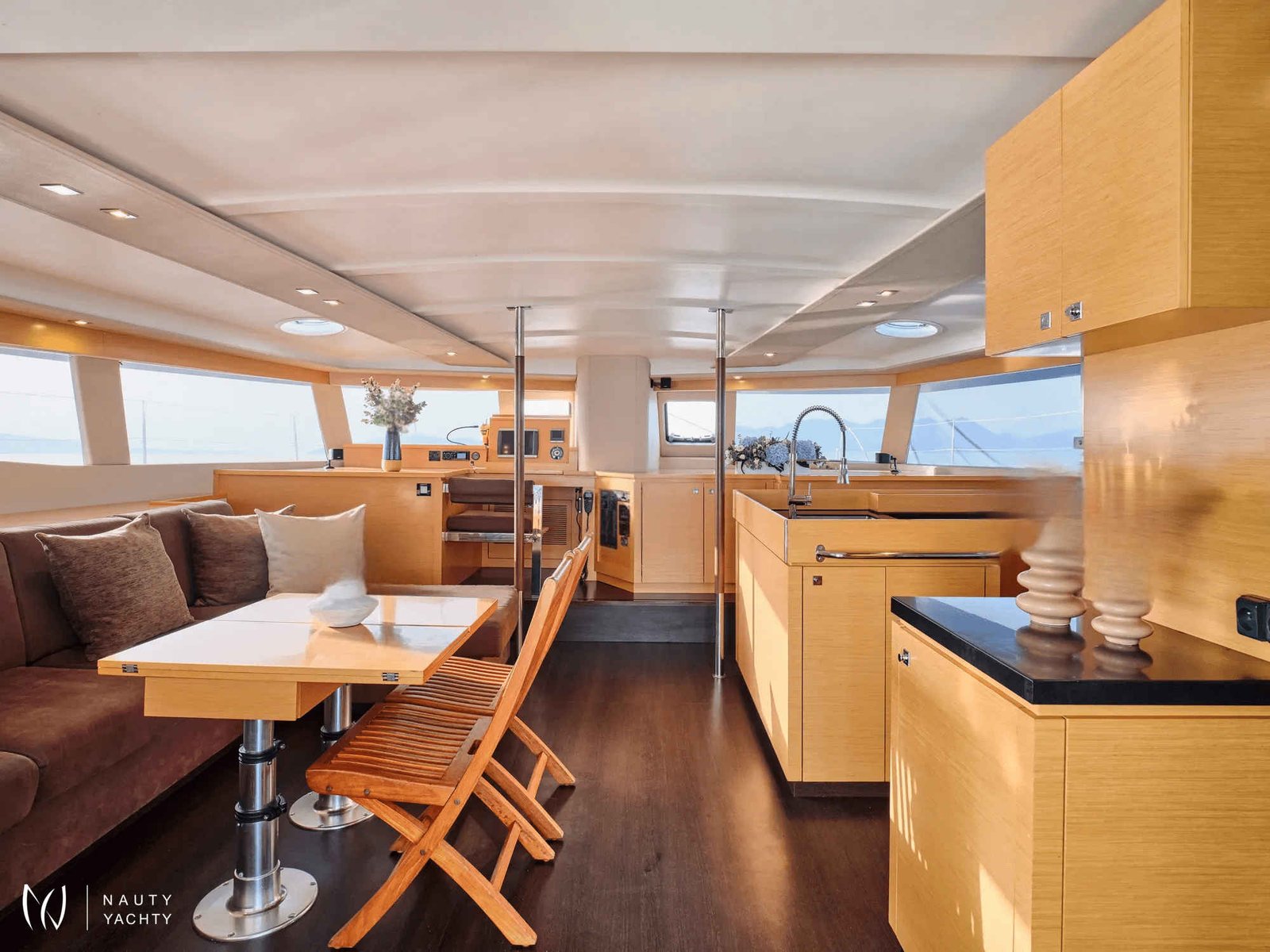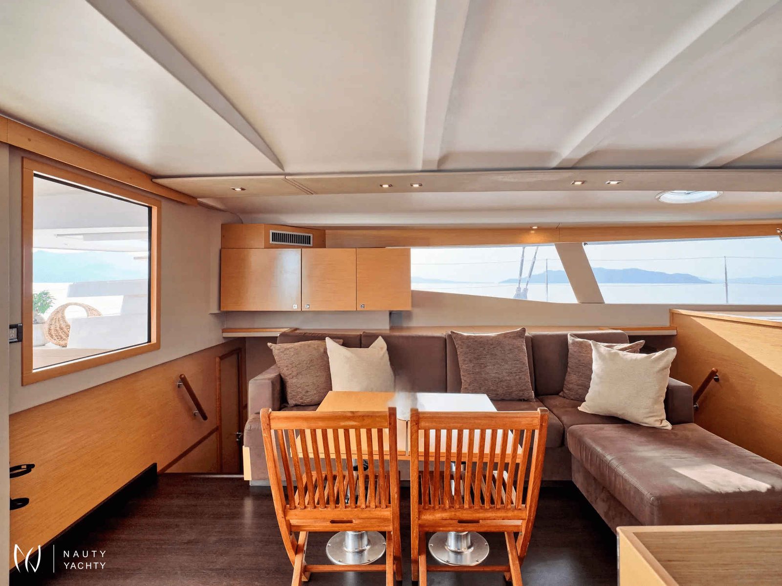 What are you looking for in your vacation? If you are aiming to take your family and friends on a memorable journey, living an adventurous, yet also relaxing and comfortable, a tour among the magnificent Greek islands, sailing through the crystal blue seas of the Aegean or the Ionian, then this impressive and luxurious boat, HIGH FIVE SANYA 57, a definitively elegant and innovative catamaran with a unique, contemporary design by FOUNTAINE PAJOT, is going to fulfill all your desires and expectations.With all the pleasures of the sea, with the distinctive comfort, fixtures, and services you’ve come to expect from our Flagship Class, HIGH FIVE will embrace you and will book a place in your heart. The memories you will create on this boat will be cherished forever.HIGH FIVE can accommodate up to 10 guests in 5 double cabins, all equipped with private bathroom facilities. All cabins have been specially designed for maximum comfort and space and have full air-conditioning, TV, DVD and stereo system integrated.HIGH FIVE SANYA 57 offers the luxury and comfort of a fine hotel. Wide staircases beckon to the tranquility and privacy of beautifully appointed cabins.The salon, with its soft colors and flexible seating areas is the perfect place, if you want to hide from the sun and yet not loose contact through the panoramic view with the outside world or if you just want to guess what kind of mouth-watering, delicious culinary delicacies your Chef is going to prepare for you.The aft deck, where you probably will spend most of your time at, is stylishly designed for your comfort, either when gathering around the table to enjoy a fabulous meal, filling the air with Mediterranean flavors, or simply relaxing, with an aperitif in your hand, after an exhausting day, playing with the numerous water toys, such as water skis, kayaks, paddle board, wake board, knee board, tubes, snorkeling gear, etc., you have on board. Then again if you like fishing and catching something, your Chef can prepare it for you the same day and serve it to you in the most delicious way, you can imagine.The fore deck is the absolute ideal area for sunbathing on comfortable sun mattresses, a trampoline, and the best location if you see any dolphins swimming alongside the boat. The Fly-bridge is the ultimate favorite place for enjoying a glass of champagne accompanied by a finger-licking hors d'oeuvre while gazing onto the horizon and harmoniously savoring the dreamlike scenery during sunset.The sailing catamaran HIGH FIVE SANYA 57 will bring you to the most beautiful places in the Mediterranean while traveling in all comfort and privacy. Guided by her crew you will discover the magnificent islands, nature, and culture, and most importantly the magnificent clarity of the Greek crystal blue waters.Modern and minimal in design with an excellent crew of three.