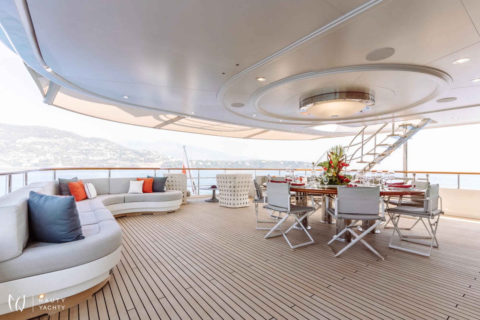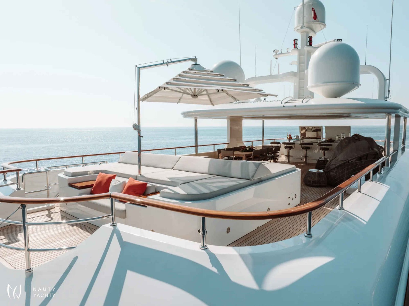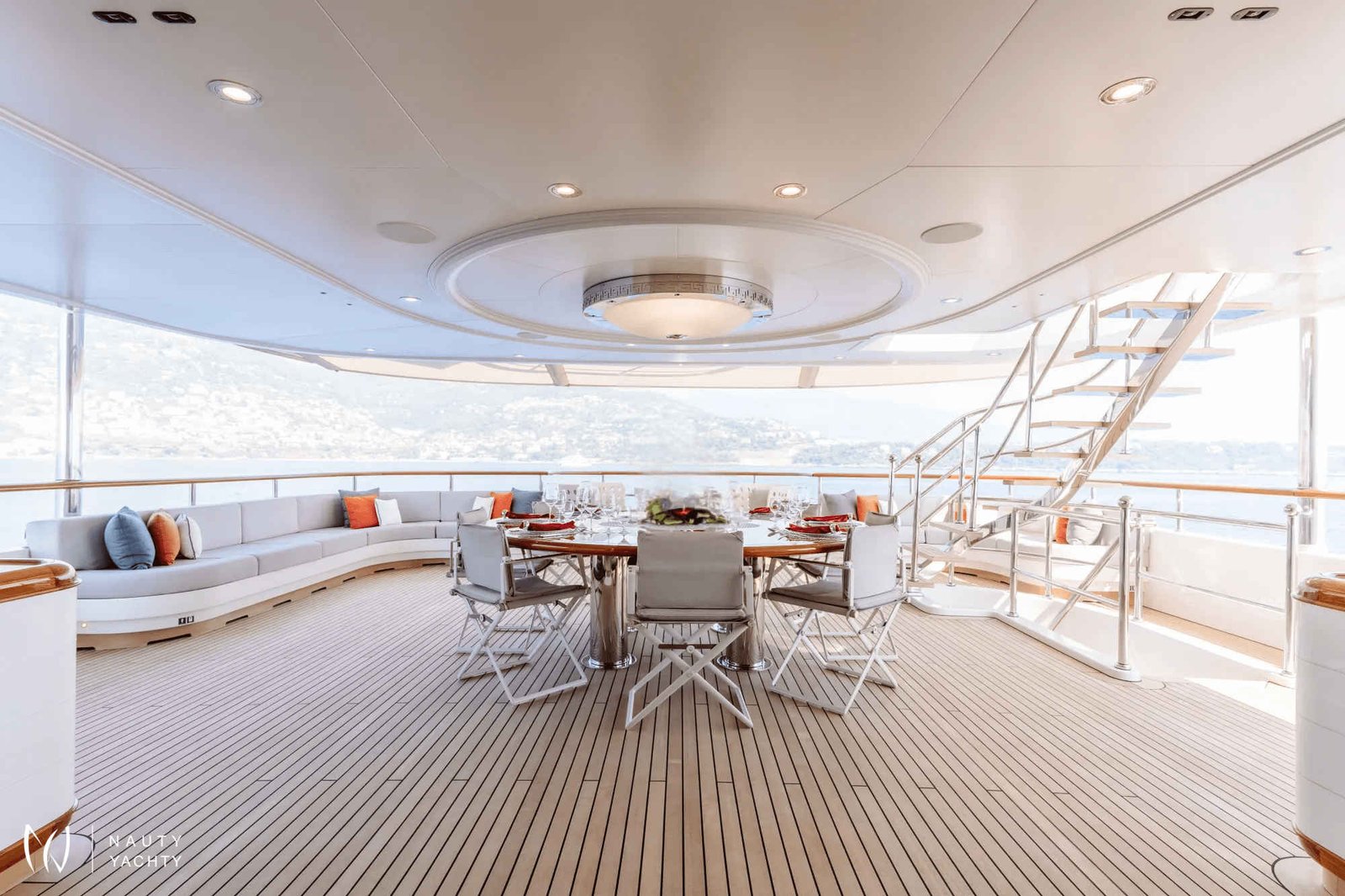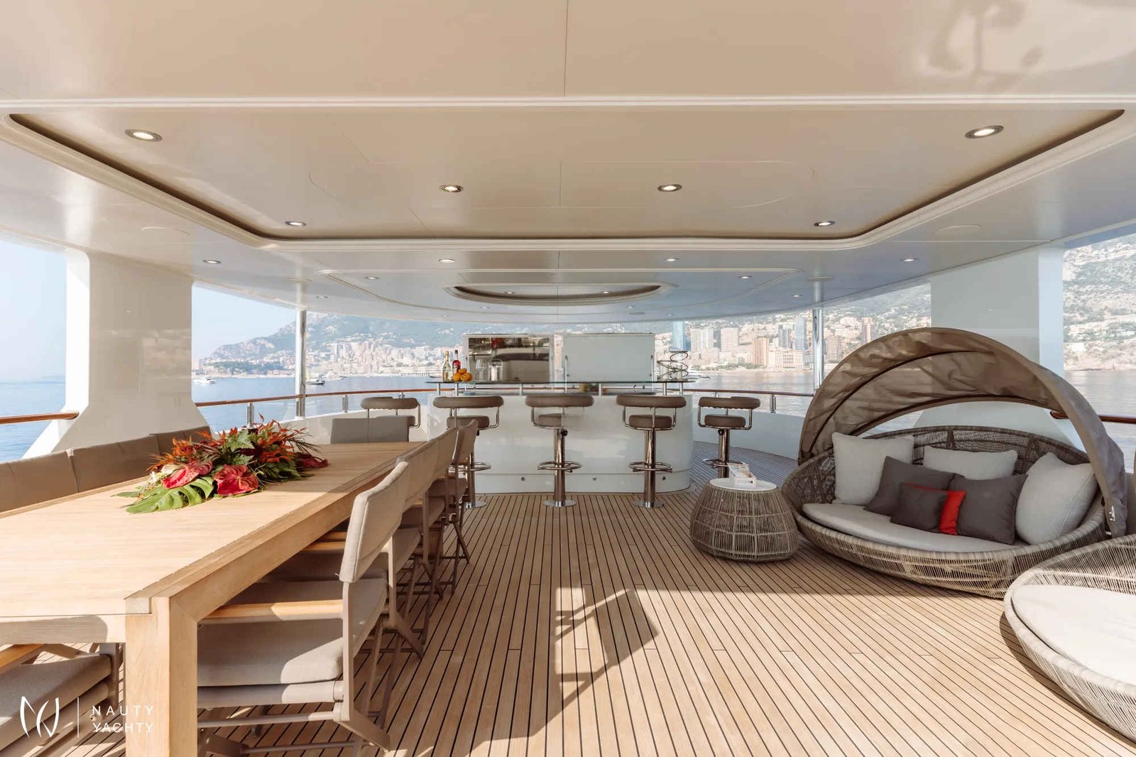 Accommodating up to 12 guests in six cabins, INCAL ensures every guest enjoys comfort and privacy. The lavish master suite located on the main deck boasts a large office area, two private balconies, and a stunning ensuite with a Jacuzzi bath, providing a haven of relaxation. The lower deck boasts a full-beam VIP with lounge area and walk-in wardrobe, two elegant doubles, and two twin cabins.The main saloon exudes sophistication with its light and spacious lounge area, formal dining space, and statement bar. The neutral soft furnishings perfectly complement the dark wood panelling, creating an ambience of refined elegance. On the bridge deck you will find and equally sophisticated saloon and gym. Guests can work out on a range of equipment, including an exercise bike, rowing machine, and a Technogym Kinesis machine.Alfresco dining can be enjoyed on the bridge deck aft which boasts a central circular dining table and a luxurious seating area, providing the perfect space for entertaining. The 115 m² open-plan sundeck showcases the essence of outdoor living. It’s an idyllic setting for sun-soaked days and star-lit nights where you can relish every moment in ultimate comfort.Maximizing exceptional volume and fostering a seamless connection with the ocean, the spacious main deck aft connects to the extended swim platform by a centre-lined staircase transforming this space into a serene waterside retreat equipped with sun loungers and offering guests direct access to the water and toys available on board.