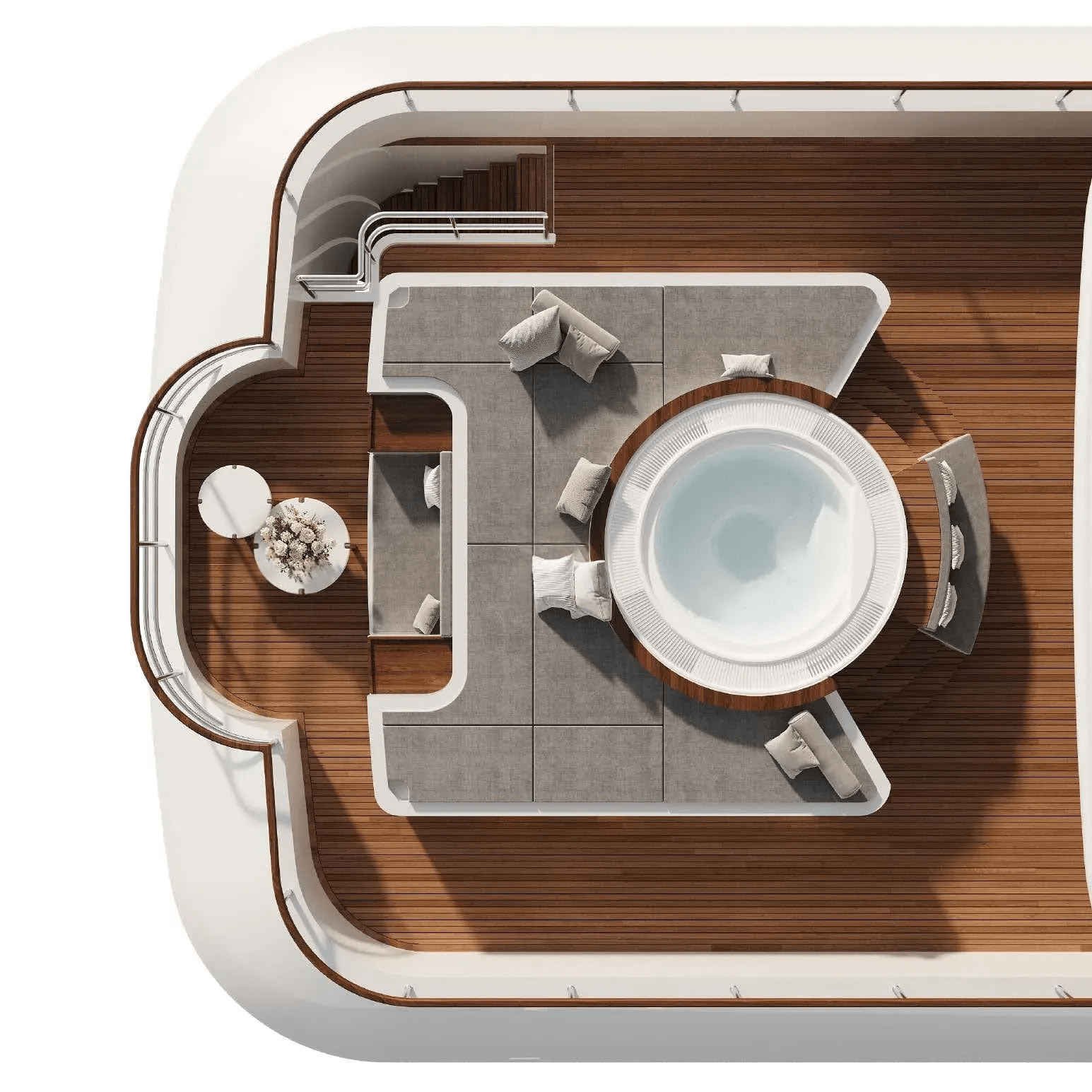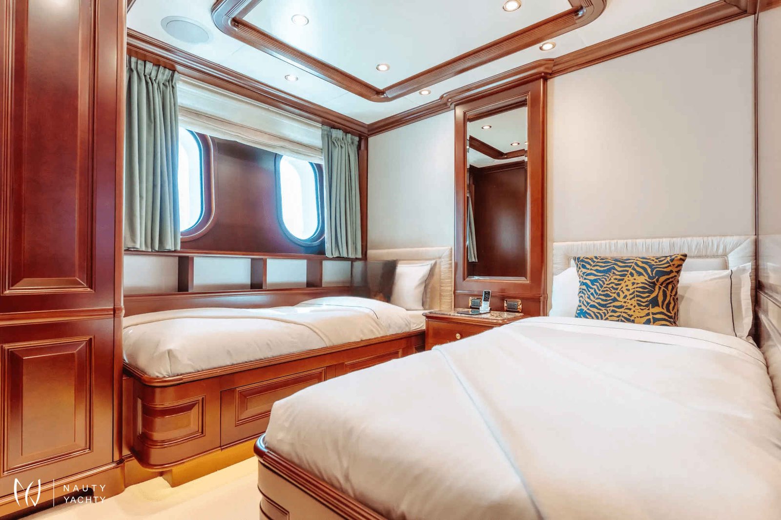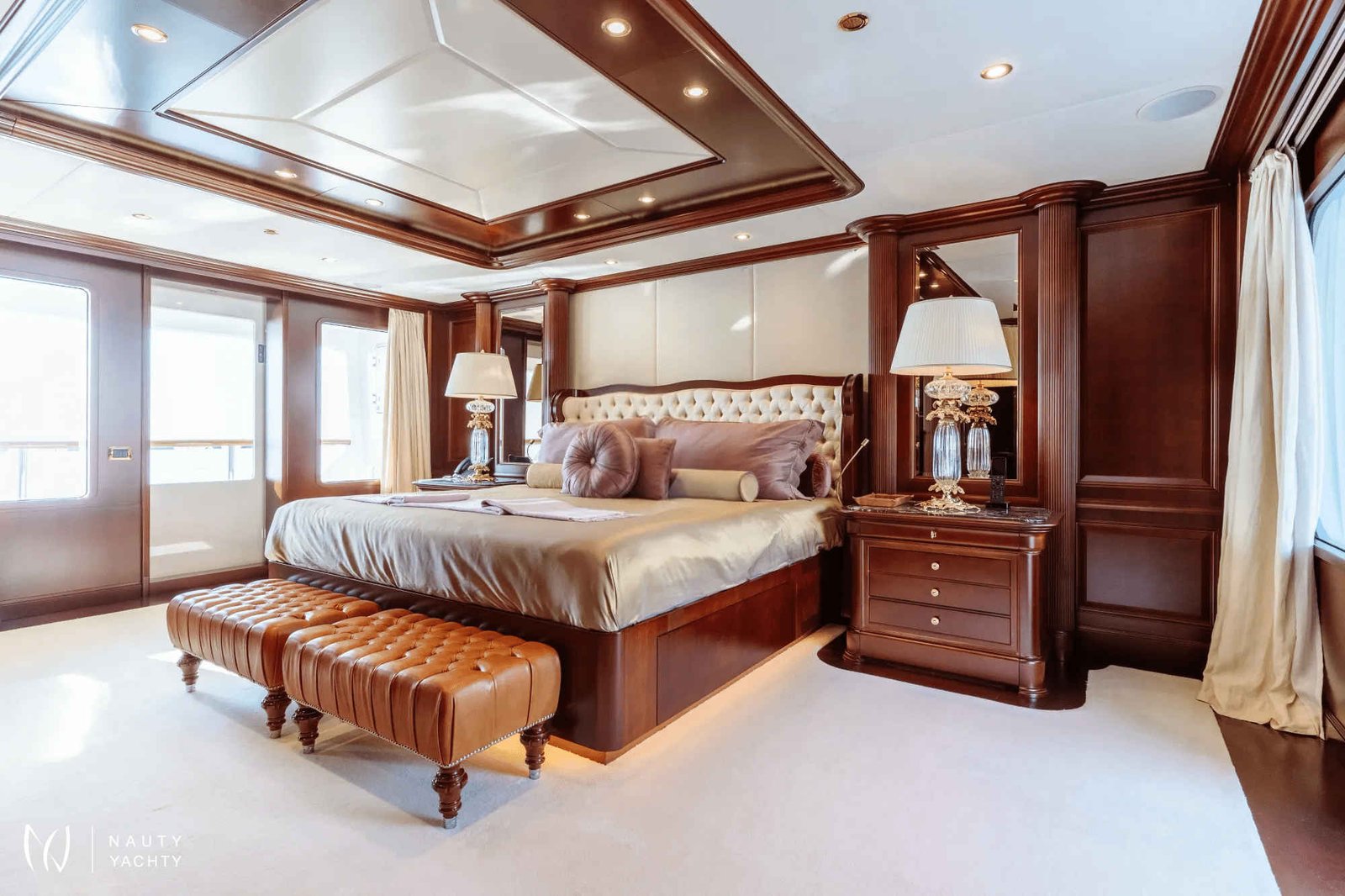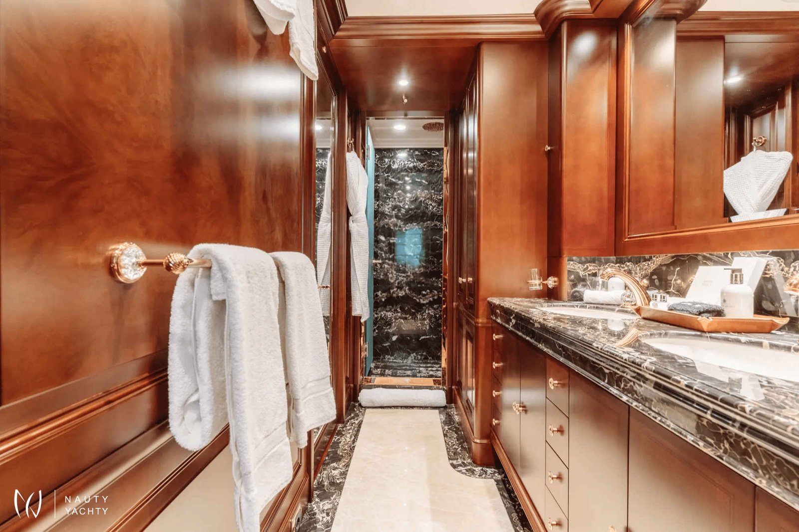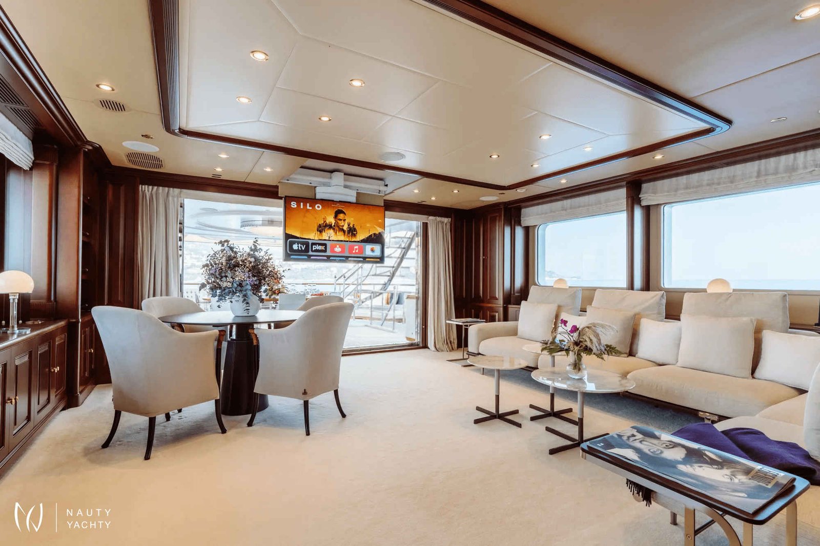 Accommodating up to 12 guests in six cabins, INCAL ensures every guest enjoys comfort and privacy. The lavish master suite located on the main deck boasts a large office area, two private balconies, and a stunning ensuite with a Jacuzzi bath, providing a haven of relaxation. The lower deck boasts a full-beam VIP with lounge area and walk-in wardrobe, two elegant doubles, and two twin cabins.The main saloon exudes sophistication with its light and spacious lounge area, formal dining space, and statement bar. The neutral soft furnishings perfectly complement the dark wood panelling, creating an ambience of refined elegance. On the bridge deck you will find and equally sophisticated saloon and gym. Guests can work out on a range of equipment, including an exercise bike, rowing machine, and a Technogym Kinesis machine.Alfresco dining can be enjoyed on the bridge deck aft which boasts a central circular dining table and a luxurious seating area, providing the perfect space for entertaining. The 115 m² open-plan sundeck showcases the essence of outdoor living. It’s an idyllic setting for sun-soaked days and star-lit nights where you can relish every moment in ultimate comfort.Maximizing exceptional volume and fostering a seamless connection with the ocean, the spacious main deck aft connects to the extended swim platform by a centre-lined staircase transforming this space into a serene waterside retreat equipped with sun loungers and offering guests direct access to the water and toys available on board.