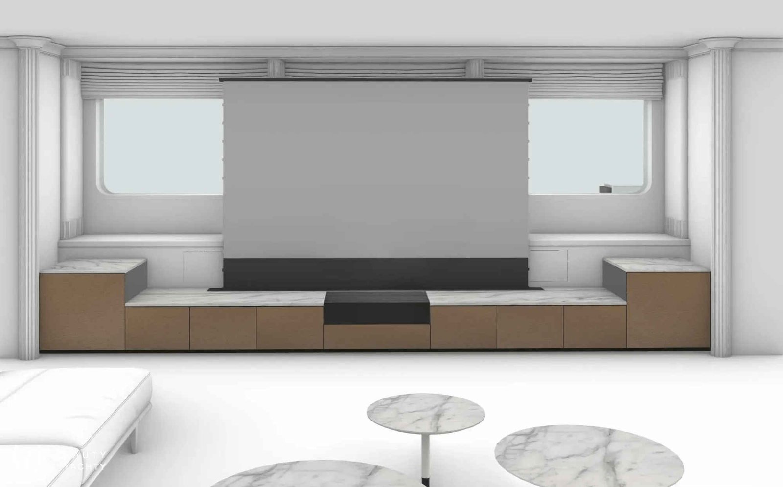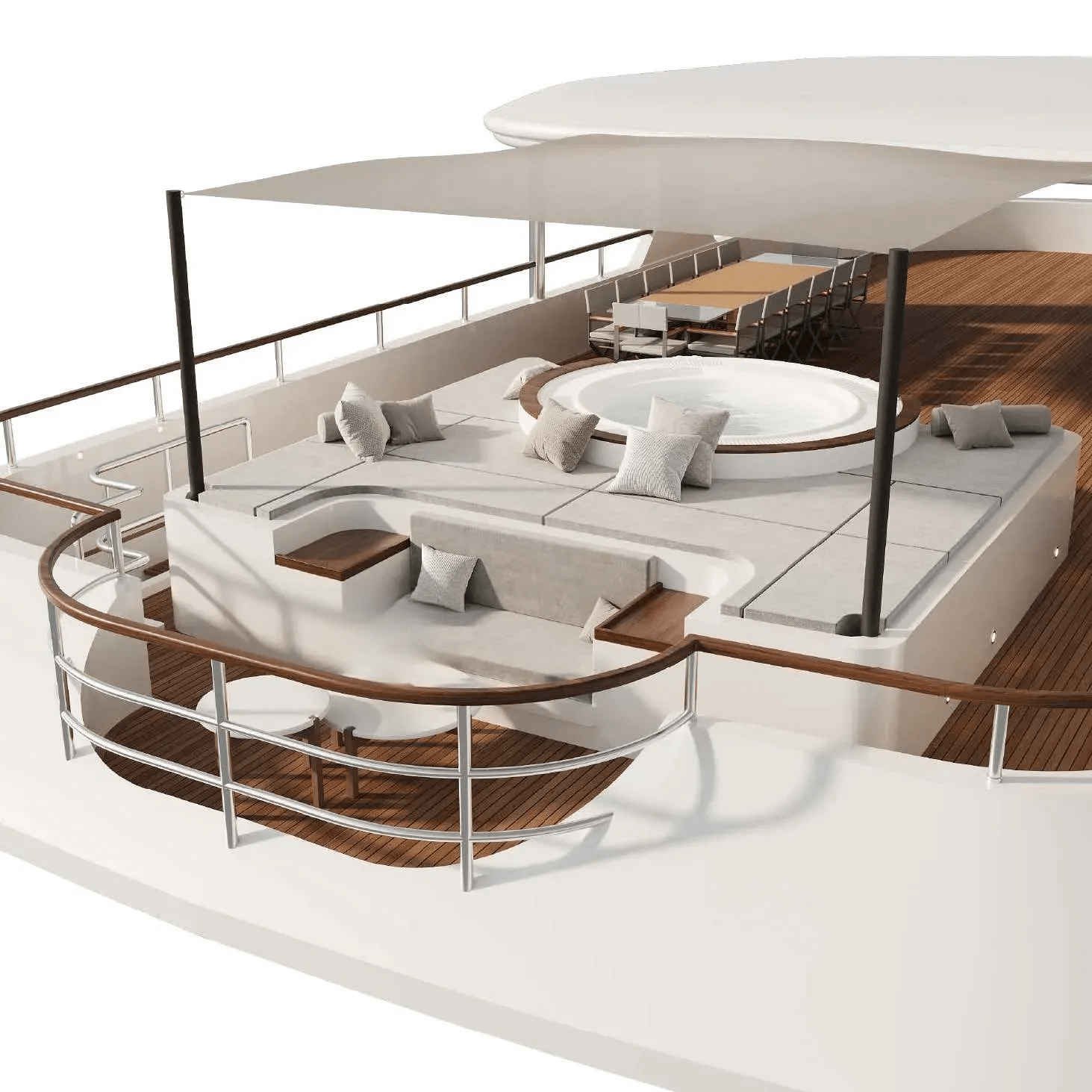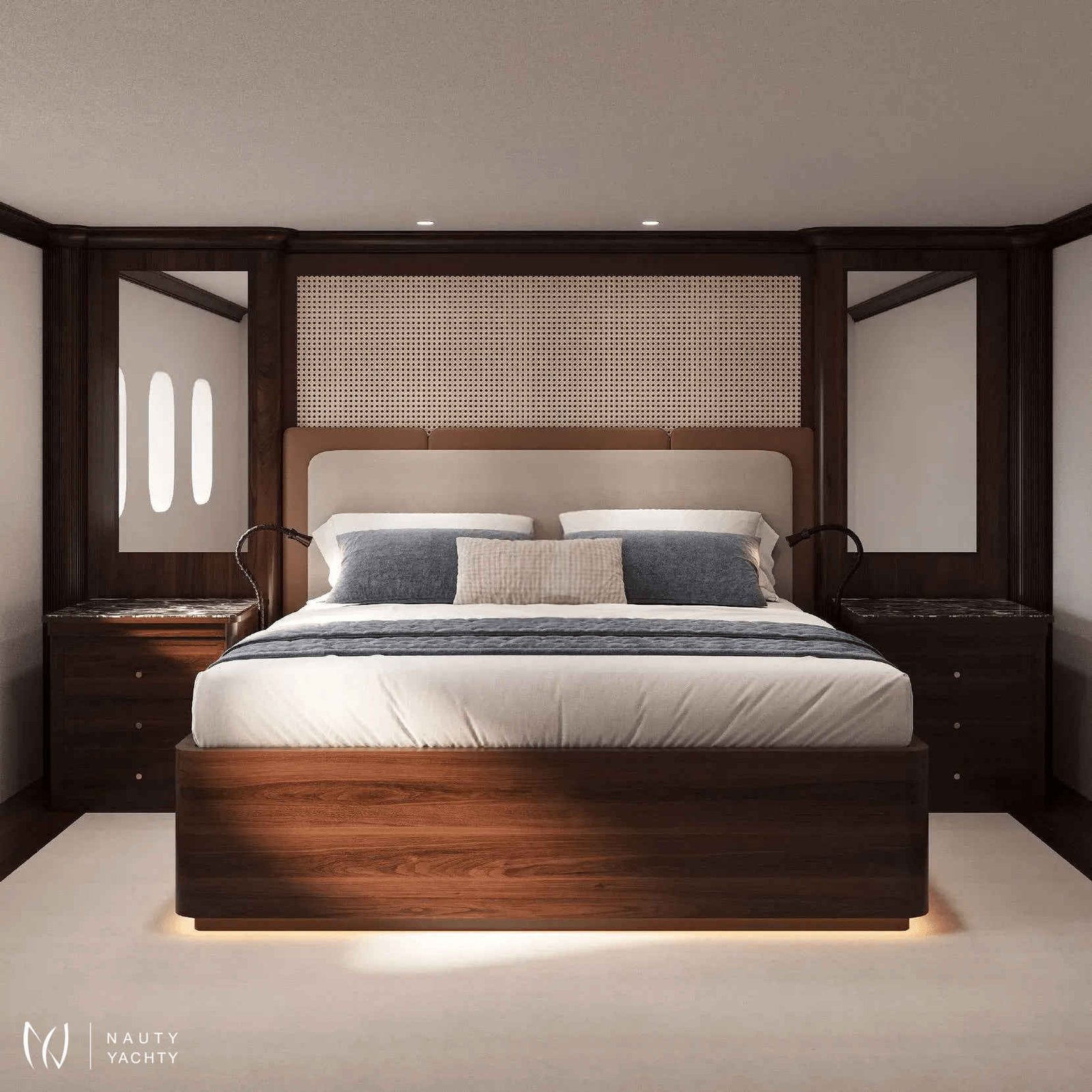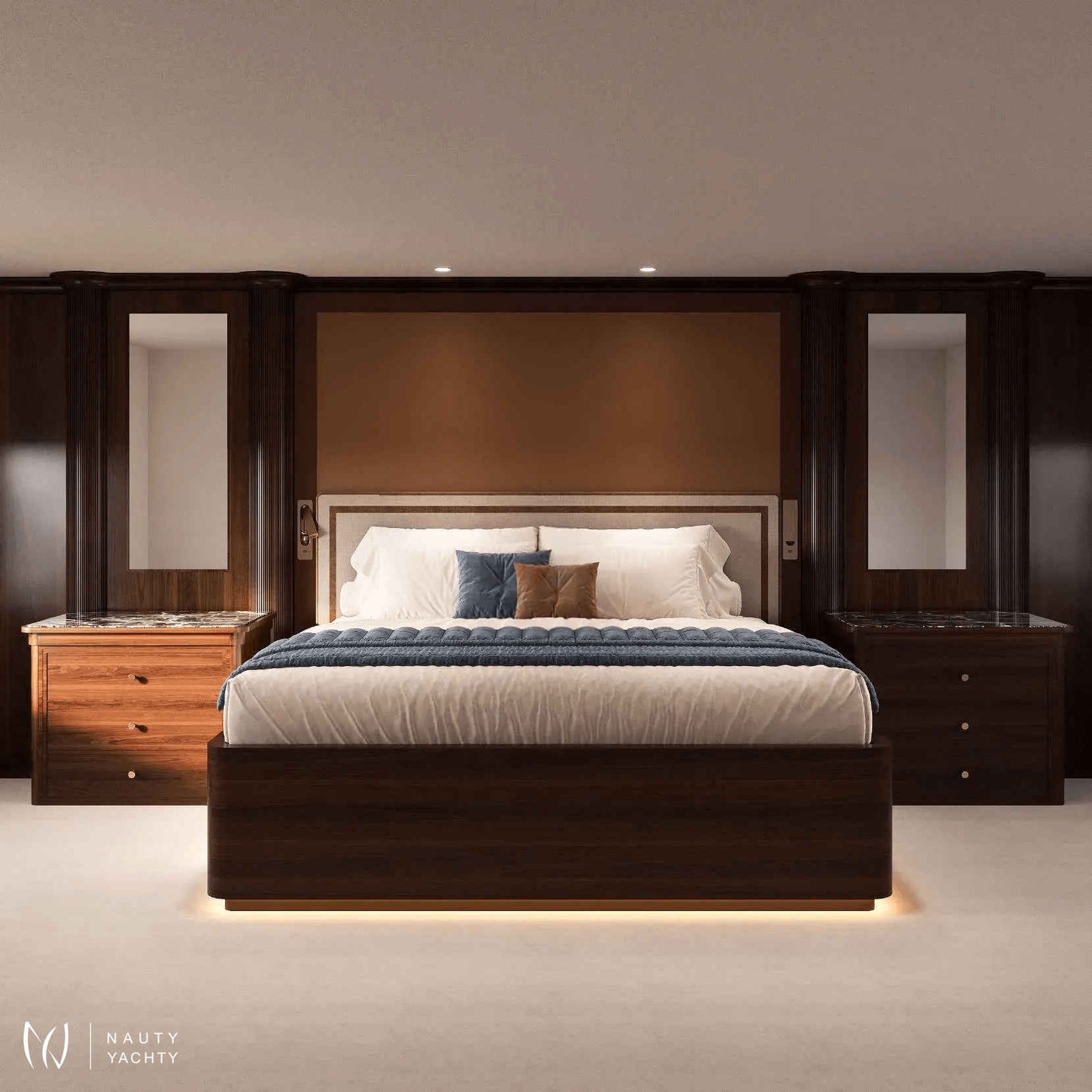 Accommodating up to 12 guests in six cabins, INCAL ensures every guest enjoys comfort and privacy. The lavish master suite located on the main deck boasts a large office area, two private balconies, and a stunning ensuite with a Jacuzzi bath, providing a haven of relaxation. The lower deck boasts a full-beam VIP with lounge area and walk-in wardrobe, two elegant doubles, and two twin cabins.The main saloon exudes sophistication with its light and spacious lounge area, formal dining space, and statement bar. The neutral soft furnishings perfectly complement the dark wood panelling, creating an ambience of refined elegance. On the bridge deck you will find and equally sophisticated saloon and gym. Guests can work out on a range of equipment, including an exercise bike, rowing machine, and a Technogym Kinesis machine.Alfresco dining can be enjoyed on the bridge deck aft which boasts a central circular dining table and a luxurious seating area, providing the perfect space for entertaining. The 115 m² open-plan sundeck showcases the essence of outdoor living. It’s an idyllic setting for sun-soaked days and star-lit nights where you can relish every moment in ultimate comfort.Maximizing exceptional volume and fostering a seamless connection with the ocean, the spacious main deck aft connects to the extended swim platform by a centre-lined staircase transforming this space into a serene waterside retreat equipped with sun loungers and offering guests direct access to the water and toys available on board.
