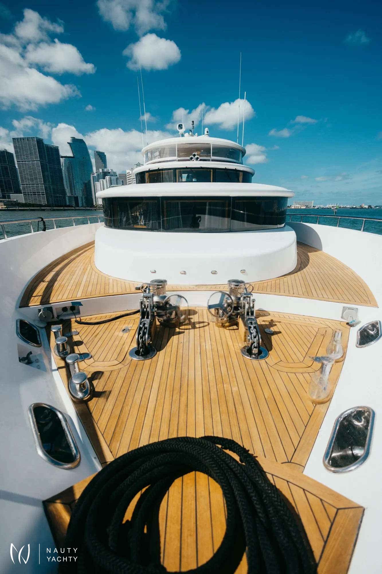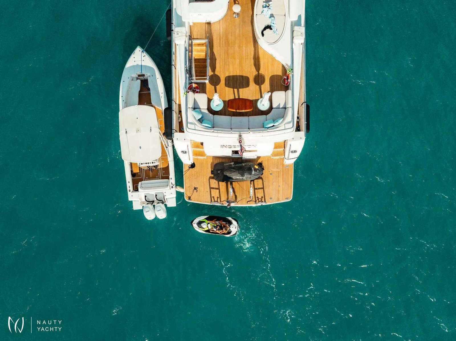 Welcome aboard the 103' INCEPTION, a yacht designed for both adventure and relaxation. Her striking exterior styling is complimented by an expertly designed layout, offering guests flexible, flowing spaces inside and on deck.INCEPTION features accommodations for 10 guests in 5 staterooms (all with ensuites), including a full-beam master suite with 270-degree panoramic views from the main deck and a full-beam forward VIP on the lower deck, each with king beds. Additionally, there are two well-appointed guest staterooms with queen beds, and an optional cabin with twin beds that may be considered for an additional fee.Entertainment options abound with interior and exterior bars, three al fresco dining areas, a large swim platform, and an expansive flybridge with choices for sun, shade, or soaking in the Jacuzzi. INCEPTION also has a 30′ Intrepid tender, two Jet Skis, two Seabobs, two paddle boards, two kayaks, two towables, and fishing gear.Fresh from a 2024 refit with numerous upgrades, INCEPTION has everything you need for the ultimate charter experience.*Please be advised that the Chef utilizes 1 cabin in the guest area*