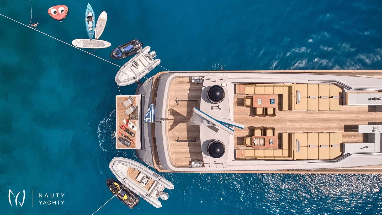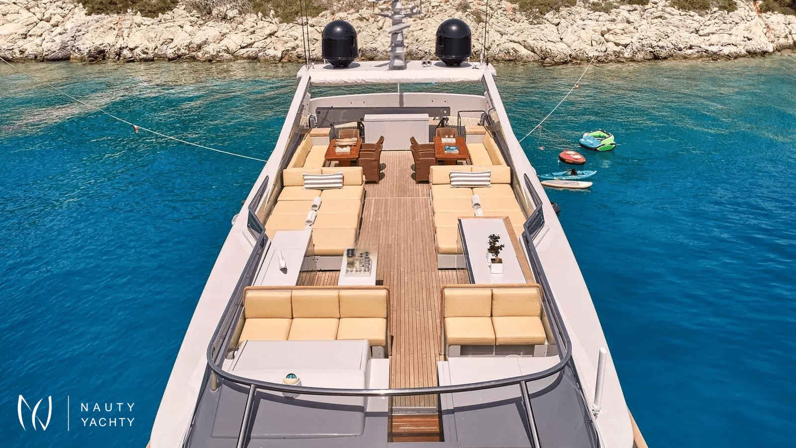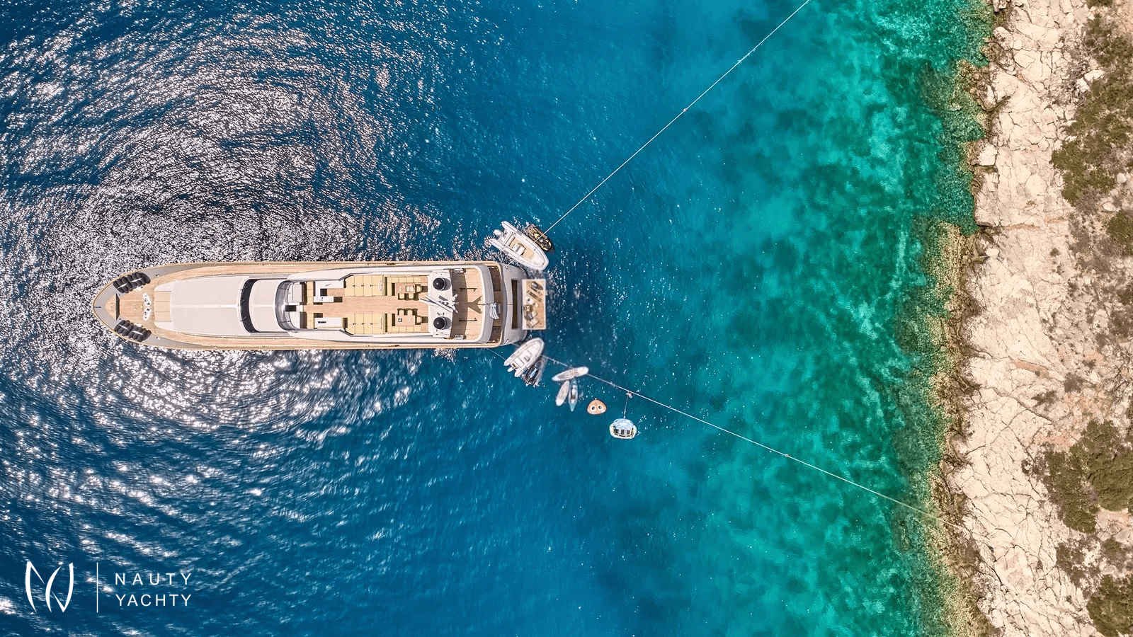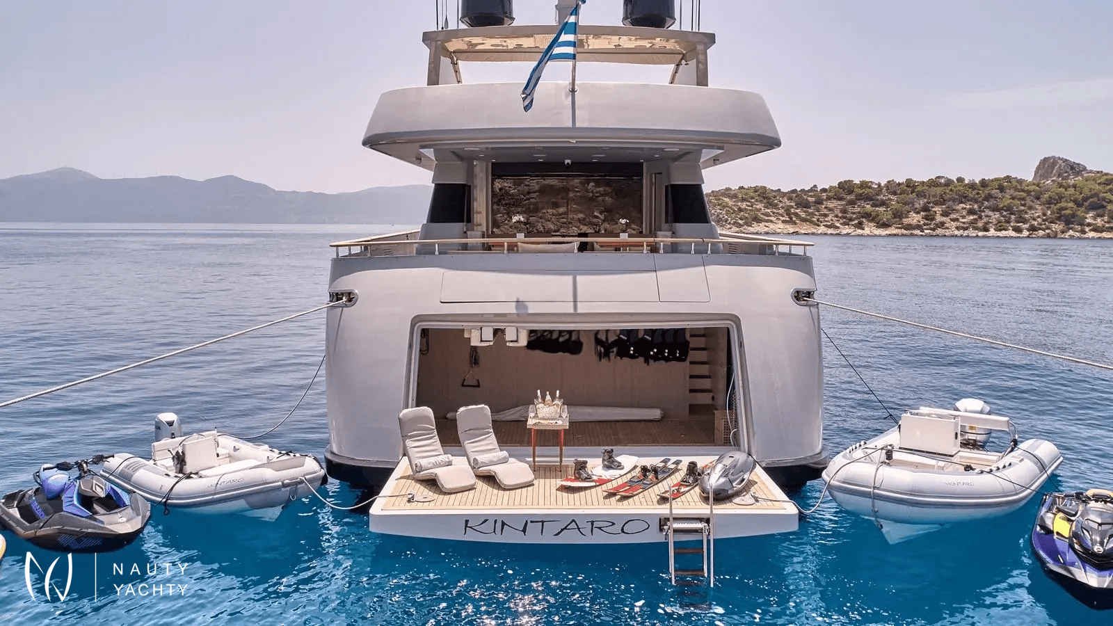 KINTARO, named after the Japanese warrior renowned for his superhuman strength and known as the "Golden Boy," showcases a striking exterior profile infused with distinctive Italian elegance.KINTARO comfortably accommodates up to 12 guests across six cabins, including a luxurious master suite and three spacious VIP cabins - a rare six-cabin layout, offering an exceptional amount of accommodations for her size.Outdoors, the yacht boasts a spacious sundeck, featuring a BBQ and dining area that can comfortably host up to 16 guests under the shade. A highlight of the sundeck is the impressive 65' outdoor home cinema, perfect for movie nights under the stars. Additionally, the beach club offers a wide variety of water toys, providing endless fun and adventure on the water.Meticulously maintained by her owner, this yacht is in excellent condition and equipped with state-of-the-art entertainment systems. Her permanent and professional crew of seven, including a Captain and Chief Stewardess who have been onboard for many years, ensure an exceptional level of service and care for every guest.