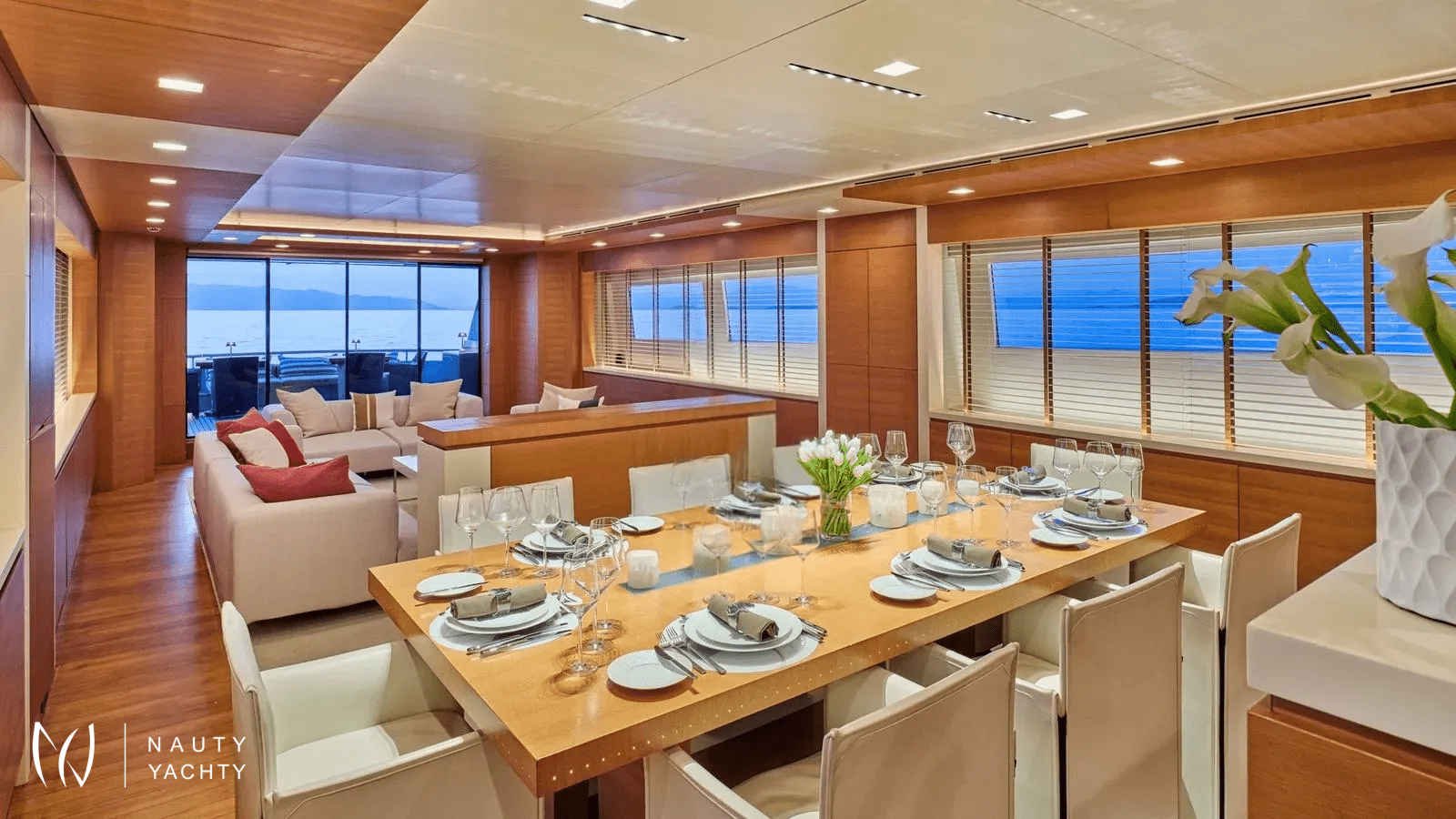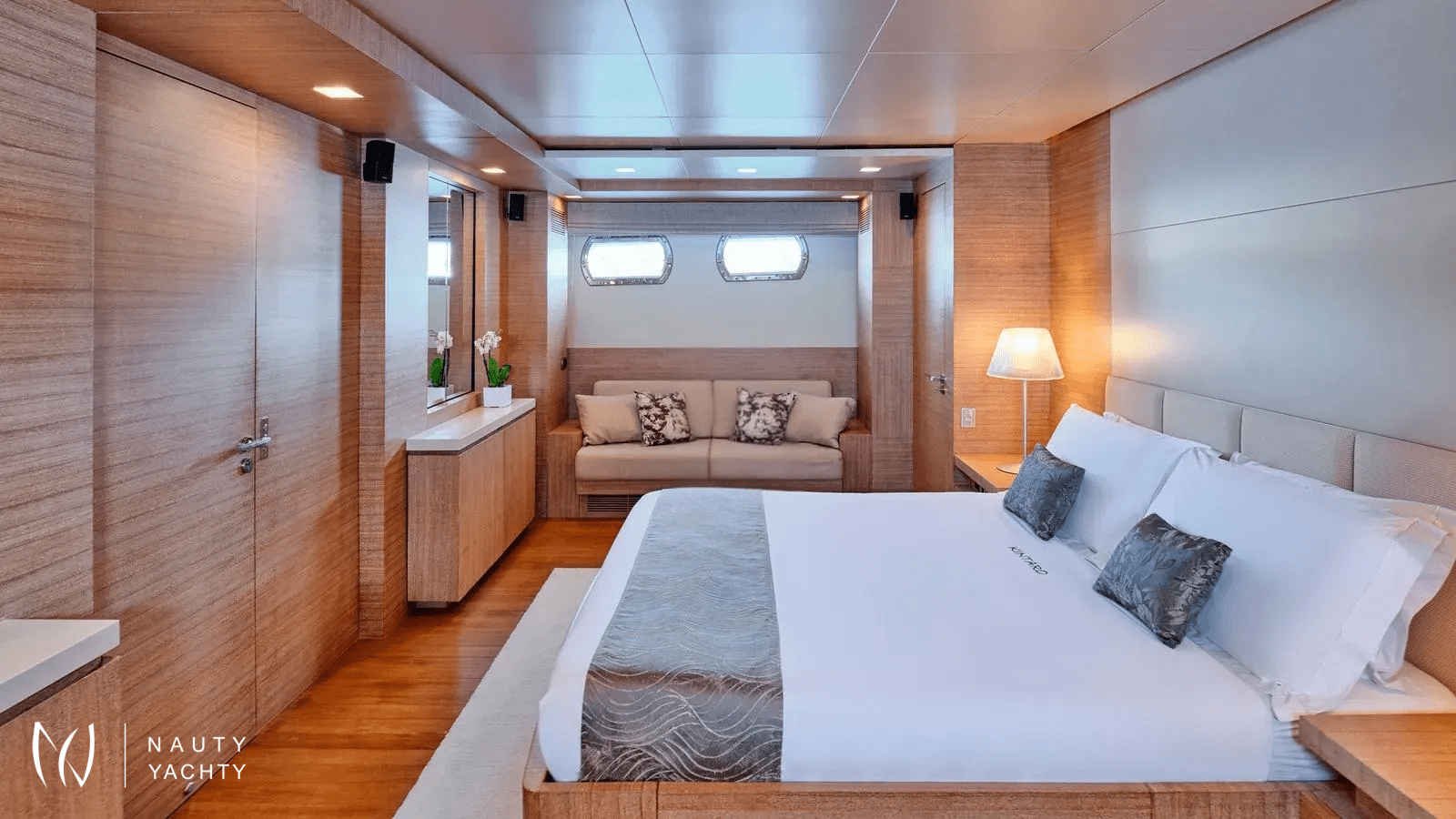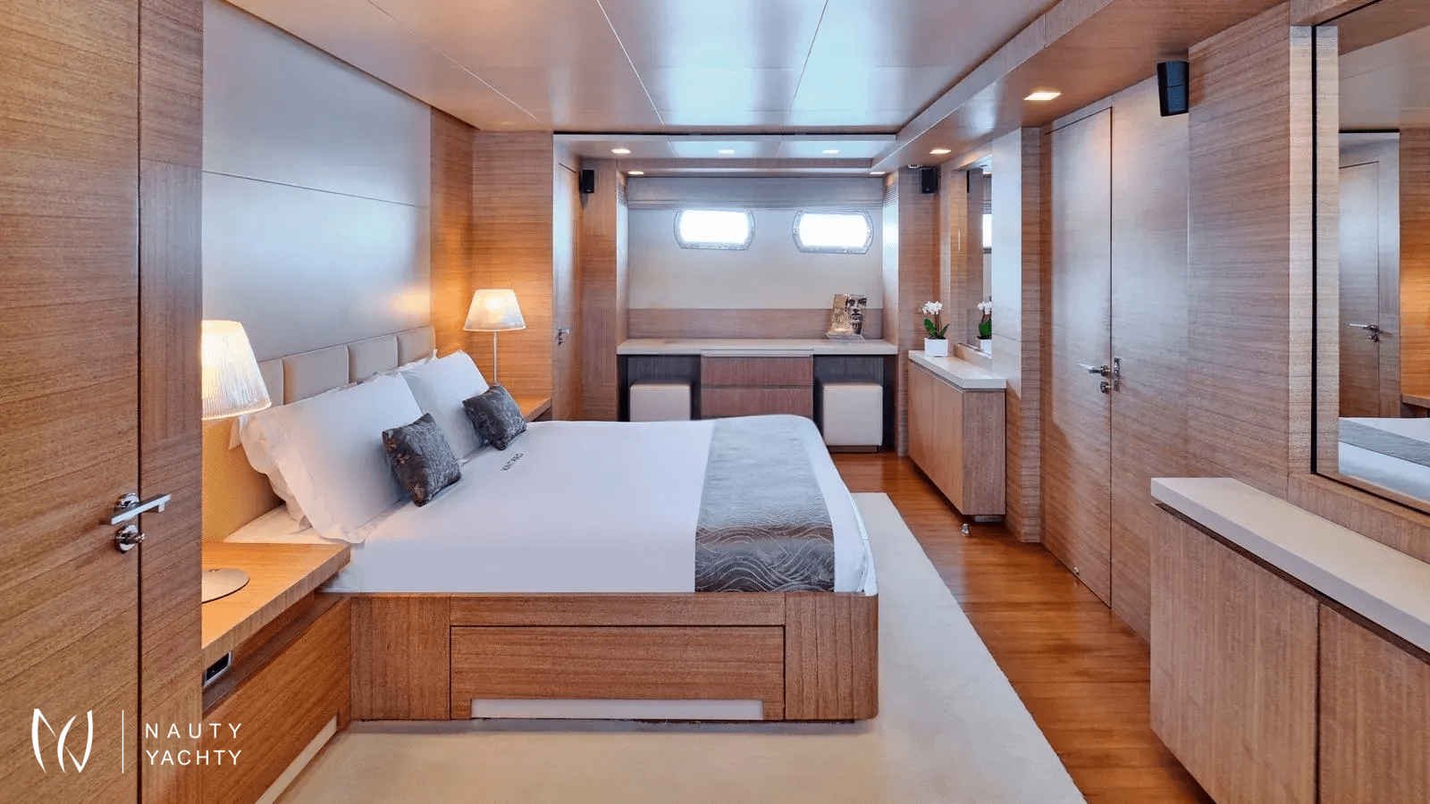 One of the few yachts in her size offering 6 cabins layout including 4 double cabins