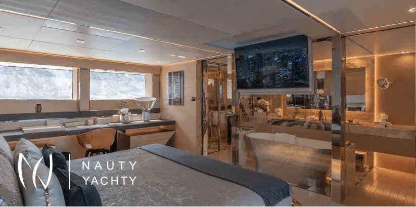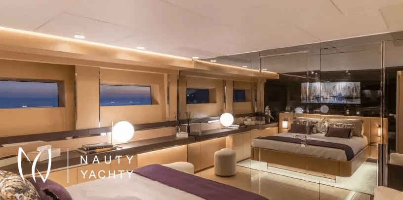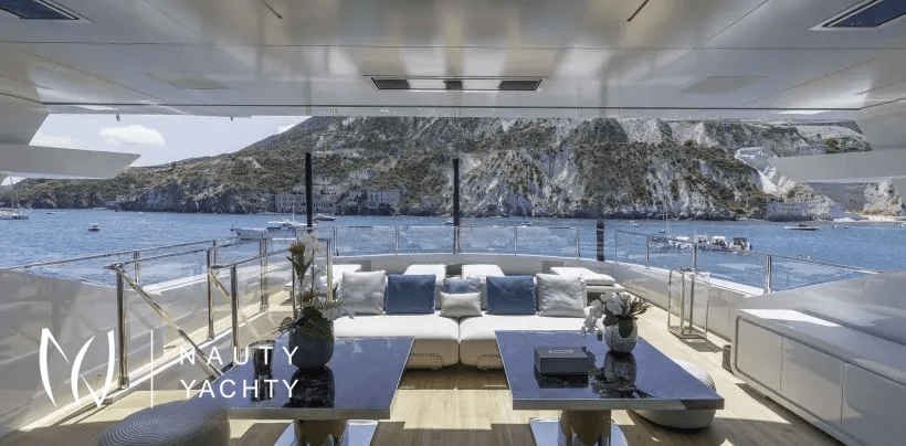 We are delighted to present the latest Rossinavi available for charter, motor yacht LEL launched in 2020. She is a fast displacement aluminum hull and superstructure with teak decks. Whilst she performs well with a cruising speed of 17 knots, the yacht also has transatlantic range of 4,000 nm at 11 knots.She was designed by Luca Dini, one of the fathers of the Italian yacht design of the 21st Century. Dini combined sportiness, elegance and comfort into a unique and customized masterpiece. Thanks to the use of open spaces on board, Dini described LEL "like an actual terrace overlooking the sea, un pied dans l’eau, where nature meets technology”.LEL is a sporty yacht with aggressive lines, but offers a large indoor volume and amazing deck space at the same time.MY LEL is divided into three spacious decks characterized by her open spaces. Through her huge windows which permit far reaching views, you will feel as if you are one with the sea. The interiors are contemporary, elegant and everything is custom made, right down to the light switches. The crystal veranda that can be left completely open or closed, not only allows the entire main deck to be furnished with sofas and armchairs but also allows the owner and guests to enjoy lunch and dinner in a glass “cube” that can be cooled or heated depending on the temperature outside. The saloon on the main deck is laid out with sofas, coffee tables, a bar and a big dining table offering enough space for family charters or bigger groups. The interior features a refined timeless décor with elegant fabrics and leather in subtle colors,She can accommodate 12 guests in 6 generous staterooms all with en suite facilities. The full width master suite is situated on the main deck. It has a balcony, an en suite bathroom with tub and shower and a large dressing room. Next to the master there is a VIP stateroom with en suite bath with shower. The four additional guest cabins (three doubles, one twin) are to be found on the lower deck. The 2 VIP staterooms can be merged into one massive VIP suite. The twin cabin features an additional Pullman bed.The deck space on board LEL is amazing. The amenities include an outdoor bar, a large seawater plunge pool on the foredeck and lots of space for sun lounging and relaxing. LEL has a voluminous beach club that increases in size when the side hatches are lowered creating also a large swim platform and sun bathing lounge. Safety and fun are always guaranteed thanks to the jelly fish protection pool and LEL's large variety of water toys. The jacuzzi on the upper deck seats comfortably 6 guests.Photo Credit: Rossinavi