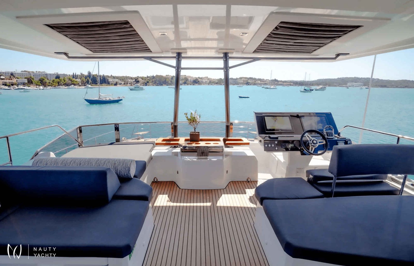 Step aboard the luxurious Majesty of Greece and let yourself be whisked away on a dreamlike vacation experience like no other. This stunning vessel marries the best of a power catamaran with Fountaine Pajot's expertise in crafting award-winning motor yachts and luxury catamarans. As the crown jewel of the Motor Yacht lineup, the Power 67 exudes all the charm and elegance of a five-star resort at sea.Indulge in the spaciousness and comfort that Majesty of Greece offers, where every inch is designed for your relaxation and enjoyment. From the expansive cockpit perfect for social gatherings to the sun-kissed flybridge and the inviting foredeck with a Jacuzzi, this yacht is your luxurious playground on the water.Retreat to the Owner's suite, a private sanctuary that rivals the comfort of a high-end hotel. A lavish dressing room, a cozy sofa, and an opulent bathroom with a stunning walk-in shower await you, ensuring that every moment on board feels like a pampering escape from the everyday.Immerse yourself in the ultimate vacation experience on Majesty of Greece, where luxury, relaxation, and adventure come together to create unforgettable memories that will last a lifetime.* The yacht has Blue Hull