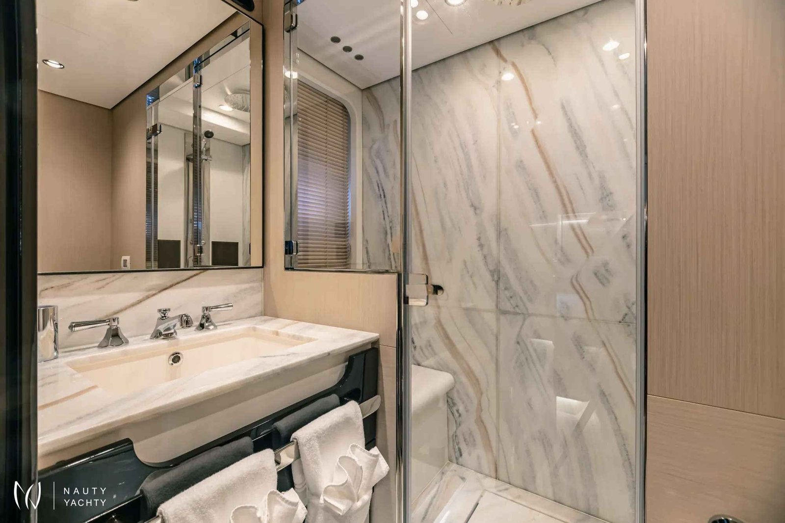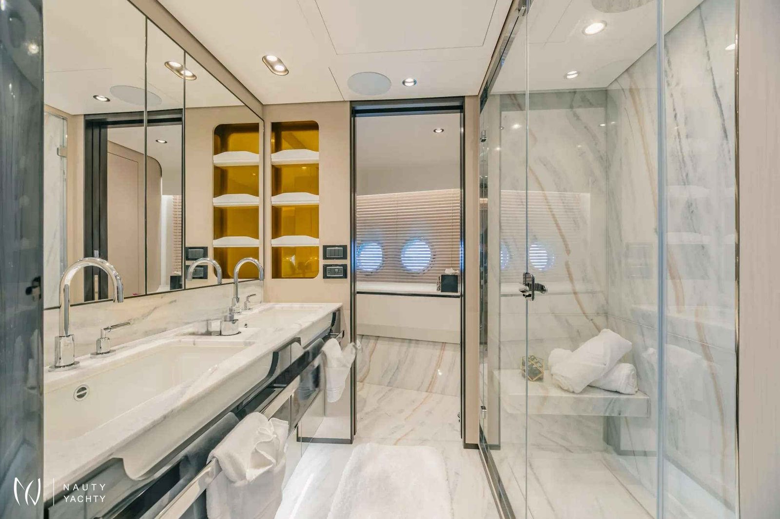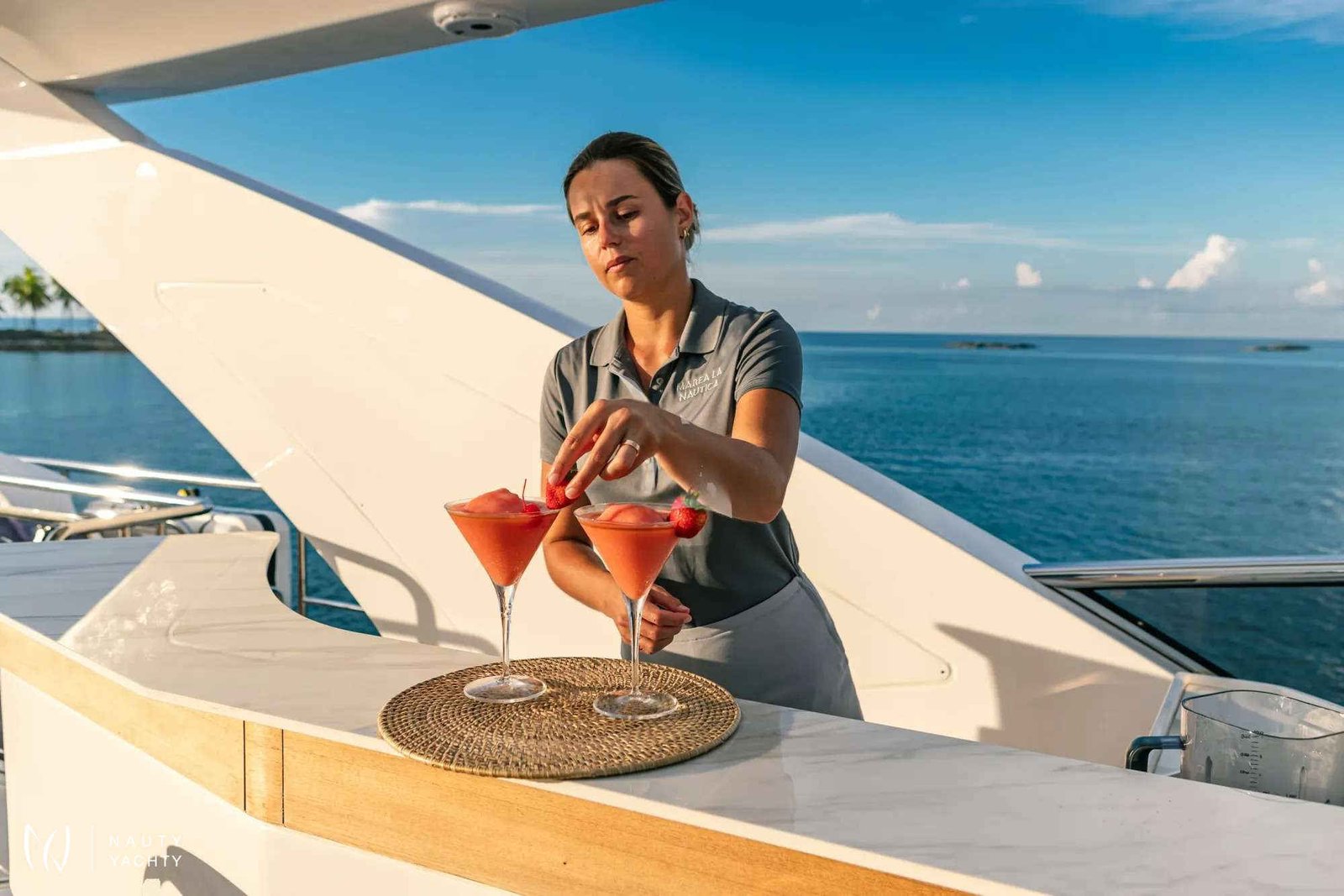 The 88’ (27m) Azimut MAREA LA NAUTICA combines impressive interior volume and stunning exterior deck spaces to create a charter yacht that exceeds the expectations of every guest onboard. The Azimut Grande 27 Metri has been designed and built to the highest standards in yachting, utilizing carbon fiber construction to allow volume and surfaces to be increased in size while maintaining the same weight and stability.The light and airy design of the charter yacht flows seamlessly between the main salon and the dining area, making the space a welcoming locale for friends and family. The floor-to-ceiling windows on both sides welcome an influx of natural light and front-row views of the passing landscapes. Her generous main salon has direct access to the aft deck, offering the ultimate indoor/outdoor flexibility. Guests will enjoy spending their nights on the sofas after long days of fun in the sun. Achille Salvagni penned MAREA LA NAUTICA’s sleek, distinctive interior with custom-made furniture and décor.MAREA LA NAUTICA welcomes up to 10 guests in five beautifully-appointed staterooms. The split-level main-deck master suite is full beam with a king-size bed, generous closet space and floor-to-ceiling windows to allow guests to feel one with the sea. The charter yacht’s versatile layout comprises two VIP cabins with queen-size beds, a twin cabin and a custom cabin with two twin beds that can be converted to an oversized king, perfect for children or couples. MAREA LA NAUTICA’s professional and experienced crew of four ensures each guest’s every need is taken care of during their charter.Her impressive main deck aft can be considered a large terrace, welcoming guests to dine alfresco at the ten-person dining table and hang out together. The curated pastel color palette used throughout the exterior evokes a sense of calmness. MAREA LA NAUTICA’s flybridge showcases a huge dining table and a beautiful bar area. Guests will enjoy sipping on their favorite craft cocktail under the retractable shade. The aft area can be arranged as an outdoor living area or used as a sunbathing space. Guests can unwind in the Jacuzzi surrounded by beautiful ocean views. The charter yacht’s foredeck lounge is another space dedicated to relaxation and is the best seat in the house for appreciating the breathtaking sunsets.