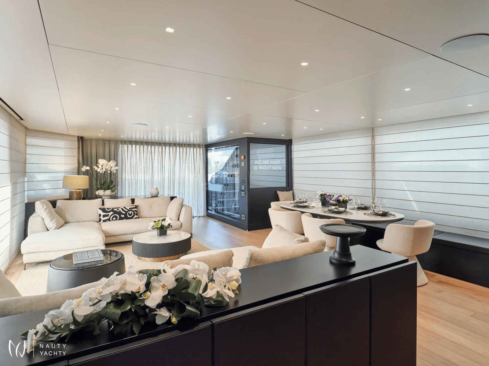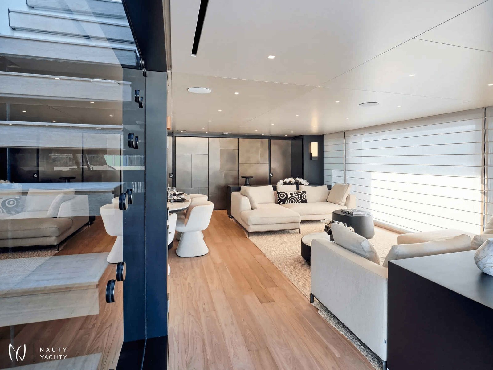 Exclusive access to the bow lounge from the master suite, offering unparalleled privacy and serenity