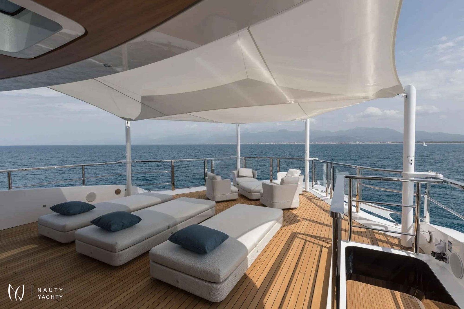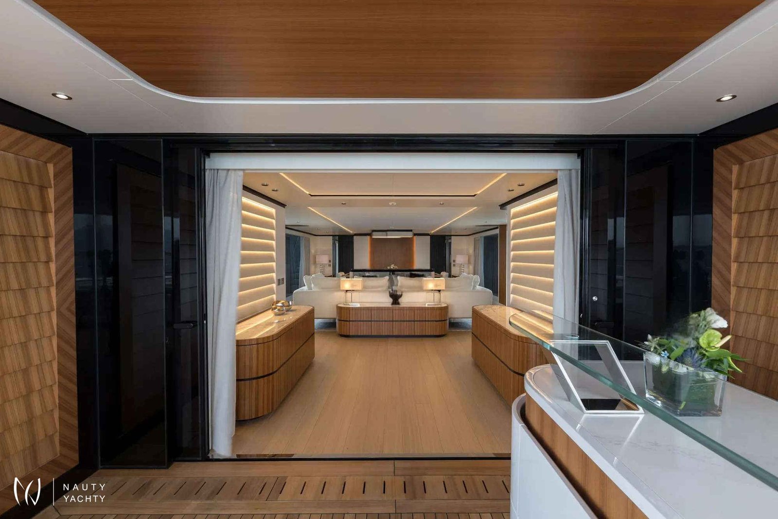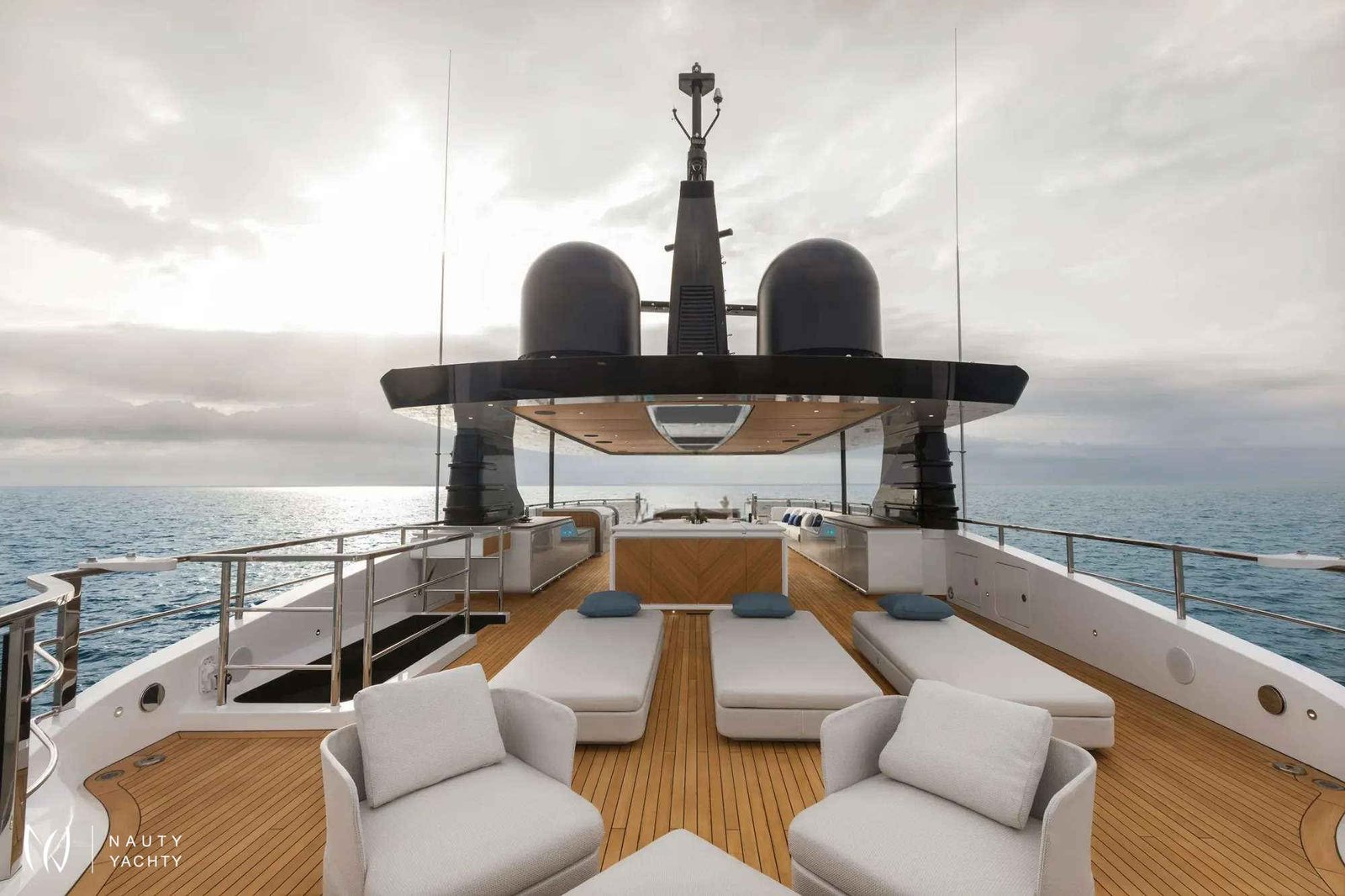 Award-winning MAVERICK claimed the prestigious “Best in Show” prize at the 2022 Fort Lauderdale International Boat Show. The Mangusta Oceano 50 is truly a masterpiece of Italian design, penned by renowned designer Alberto Mancini, with naval architecture by Pierluigi Ausonio and Overmarine. This spectacular yacht combines elegance with cutting-edge technology, offering spacious interiors and luxurious accommodations for up to 12 guests in 6 beautifully appointed cabins, including a grand Primary suite with a electric fireplace and his and hers bathroom. The full-beam Primary suite features an automated side balcony for an automatic connection with nature. Each guest cabin located below deck is inspired by iconic vacation destinations—The Bahamas, Monaco, Mykonos, and St Barths, with similar layouts but distinct finishing touches that reflect the essence of each location. The name of each destination is carved onto leather inserts on each door. Additionally, there is a full-beam, private, VIP guest suite that is accessed through a separate staircase located at the aft of the main salon.MAVERICK’s exterior decks are designed for ultimate relaxation and socializing. The bridge deck boasts a custom-built oversized infinity pool forward with semi-submerged sun-beds offering an oasis of solitude away from the hustle and bustle. The pool is the largest ever built by Mangusta and the sun-beds offer one of the best vantage points, with the glass-sided pool’s infinity effect adding to the impact. At night, the pool appears to glow as the bottom is lined with tiny LED stars. The 100-plus-square-metre sundeck offers another Jacuzzi with an infinity edge, BBQ, and dining for up to 12 guests, perfect for entertaining and celebrating with friends and family. A cozy fire pit on the main deck aft enhances the ambiance, complementing the primary suite's fireplace. The beach club, with fold-out terraces on 3 sides, keeps guests connected to the sea, and skylights from the aft deck flood the space with natural light. The spacious Beach Club is equipped with teak wall panelling, loose seating and built-in towel rails for convenient use. The Beach Club offers a retreat from the sun while staying closely connected to the water offering easy access to the water sports.The main salon and dining area boasts floor-to-ceiling windows which allow plenty of natural light. The light and bright interior offers refuge that instill a sense of calm and relaxation throughout.Sunshades are located on every deck.Equipped with Zero Speed Stabilizers, comfort is ensured both at anchor and while cruising. MAVERICK also features a towed tender, providing flexibility for guests to explore nearby destinations with ease.
