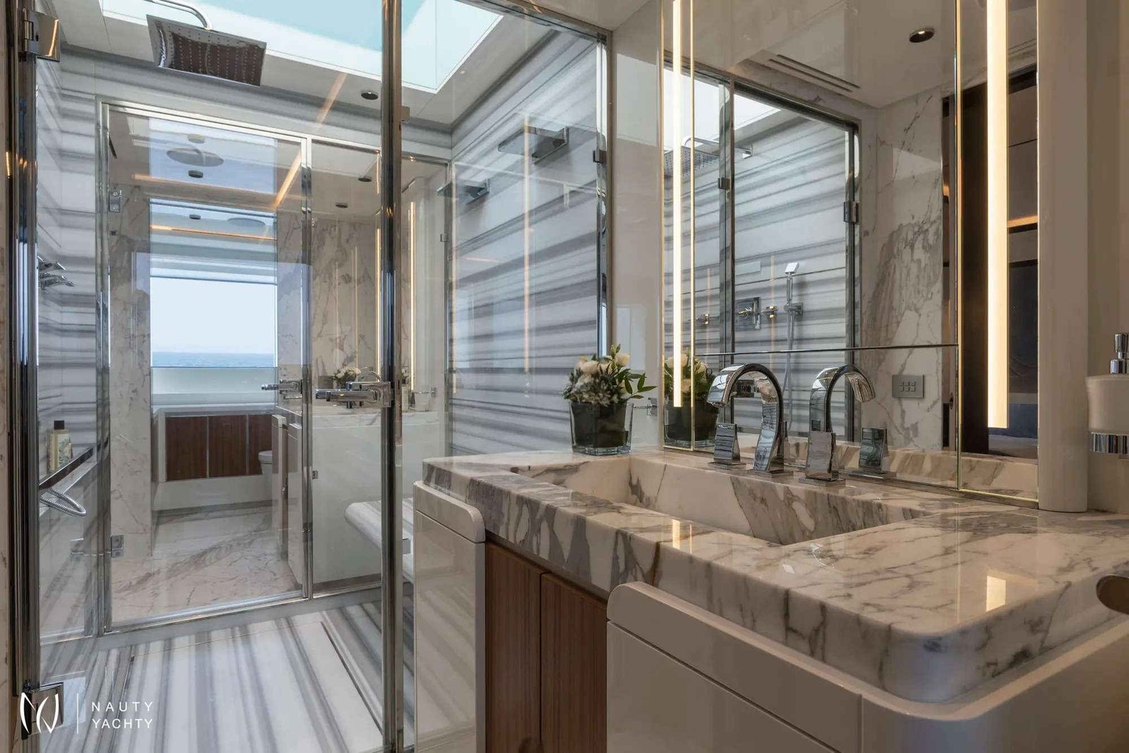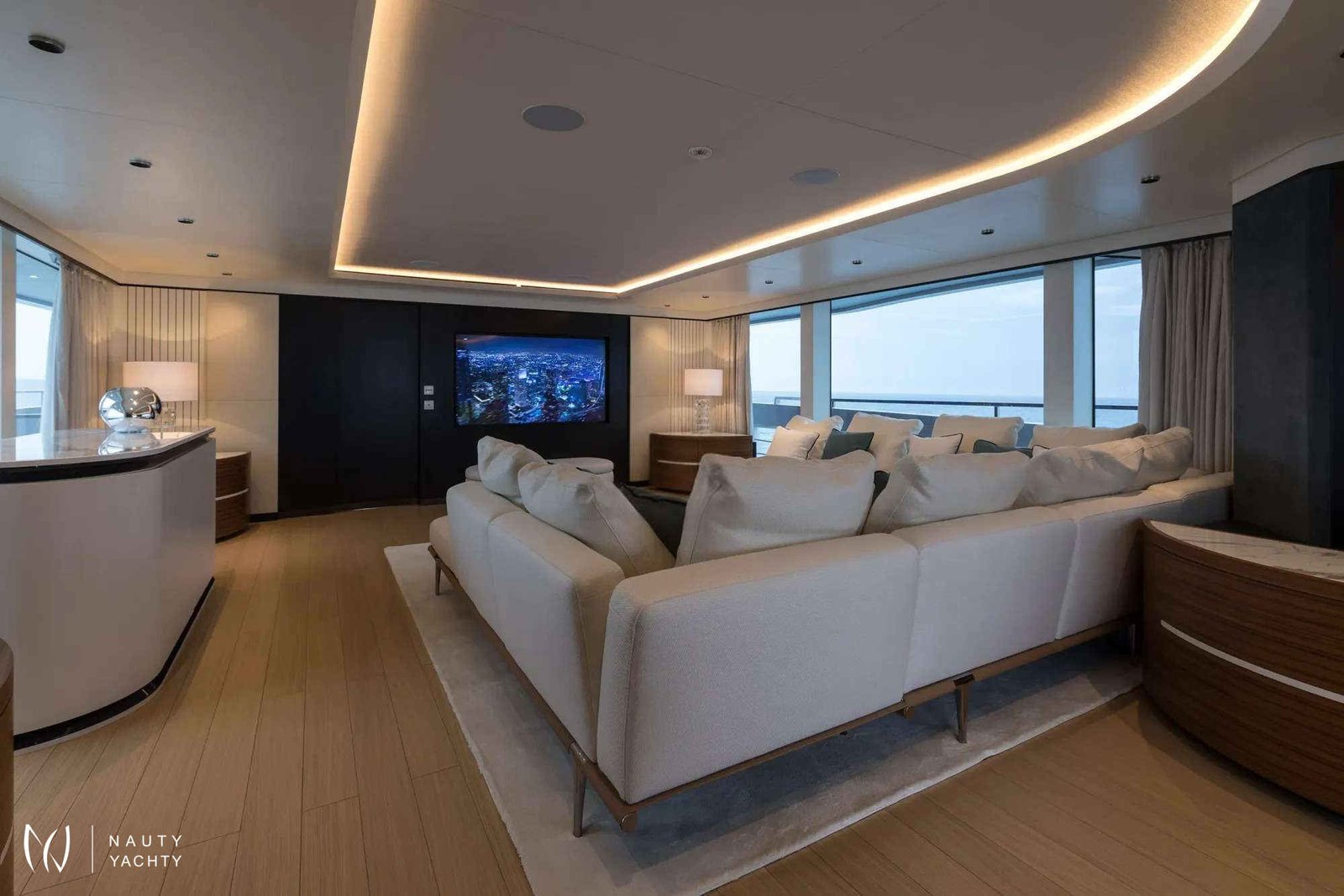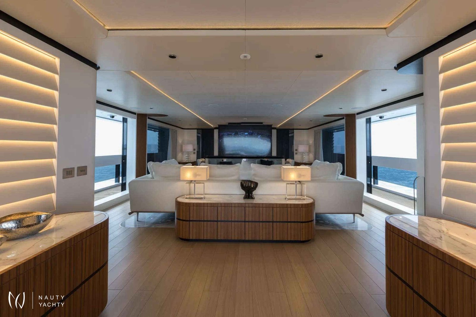 Award-winning MAVERICK claimed the prestigious “Best in Show” prize at the 2022 Fort Lauderdale International Boat Show. The Mangusta Oceano 50 is truly a masterpiece of Italian design, penned by renowned designer Alberto Mancini, with naval architecture by Pierluigi Ausonio and Overmarine. This spectacular yacht combines elegance with cutting-edge technology, offering spacious interiors and luxurious accommodations for up to 12 guests in 6 beautifully appointed cabins, including a grand Primary suite with a electric fireplace and his and hers bathroom. The full-beam Primary suite features an automated side balcony for an automatic connection with nature. Each guest cabin located below deck is inspired by iconic vacation destinations—The Bahamas, Monaco, Mykonos, and St Barths, with similar layouts but distinct finishing touches that reflect the essence of each location. The name of each destination is carved onto leather inserts on each door. Additionally, there is a full-beam, private, VIP guest suite that is accessed through a separate staircase located at the aft of the main salon.MAVERICK’s exterior decks are designed for ultimate relaxation and socializing. The bridge deck boasts a custom-built oversized infinity pool forward with semi-submerged sun-beds offering an oasis of solitude away from the hustle and bustle. The pool is the largest ever built by Mangusta and the sun-beds offer one of the best vantage points, with the glass-sided pool’s infinity effect adding to the impact. At night, the pool appears to glow as the bottom is lined with tiny LED stars. The 100-plus-square-metre sundeck offers another Jacuzzi with an infinity edge, BBQ, and dining for up to 12 guests, perfect for entertaining and celebrating with friends and family. A cozy fire pit on the main deck aft enhances the ambiance, complementing the primary suite's fireplace. The beach club, with fold-out terraces on 3 sides, keeps guests connected to the sea, and skylights from the aft deck flood the space with natural light. The spacious Beach Club is equipped with teak wall panelling, loose seating and built-in towel rails for convenient use. The Beach Club offers a retreat from the sun while staying closely connected to the water offering easy access to the water sports.The main salon and dining area boasts floor-to-ceiling windows which allow plenty of natural light. The light and bright interior offers refuge that instill a sense of calm and relaxation throughout.Sunshades are located on every deck.Equipped with Zero Speed Stabilizers, comfort is ensured both at anchor and while cruising. MAVERICK also features a towed tender, providing flexibility for guests to explore nearby destinations with ease.